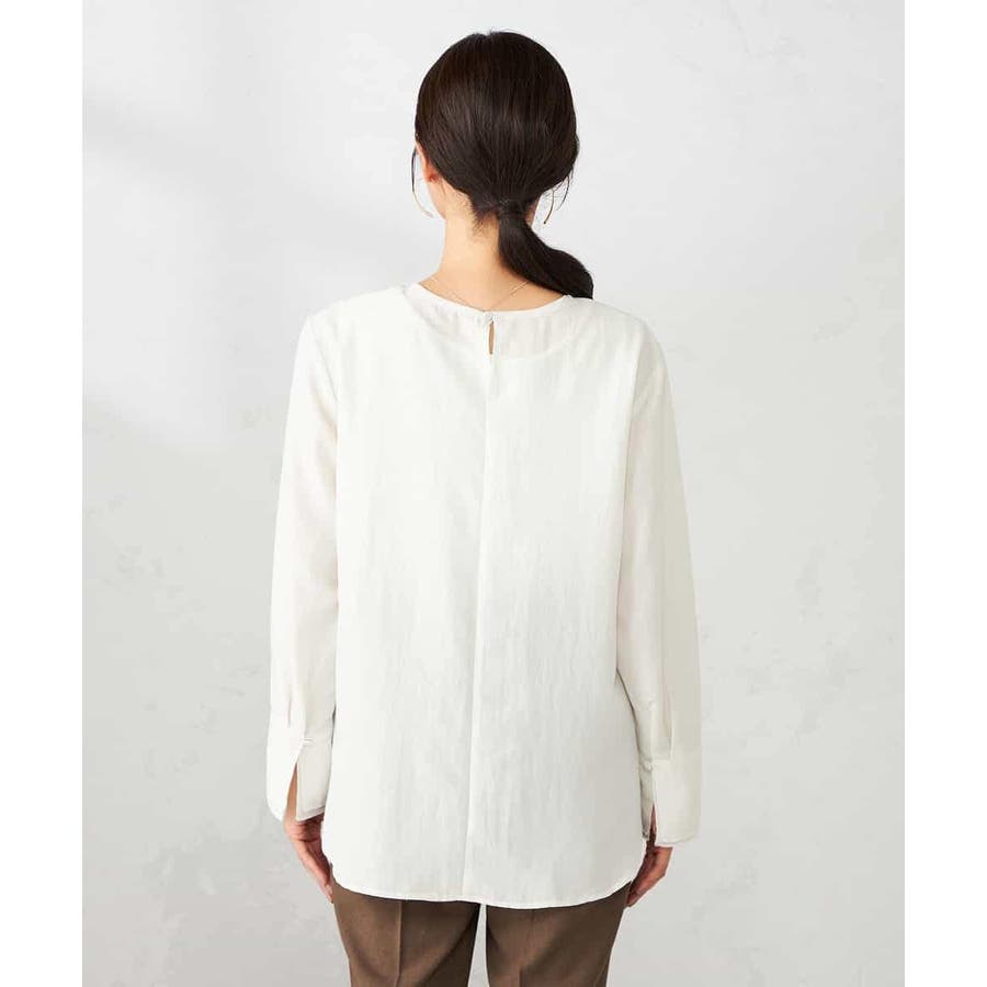 ノーカラーカフスブラウス