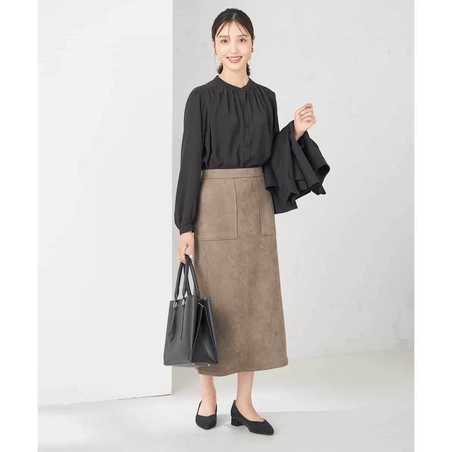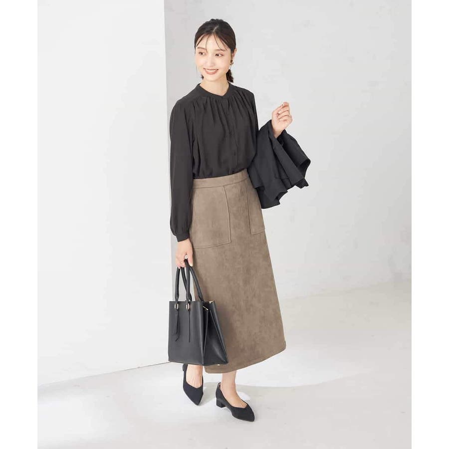 同素材のスカートとのセットアップ着用がおすすめ。