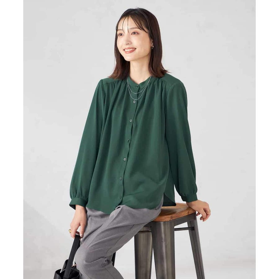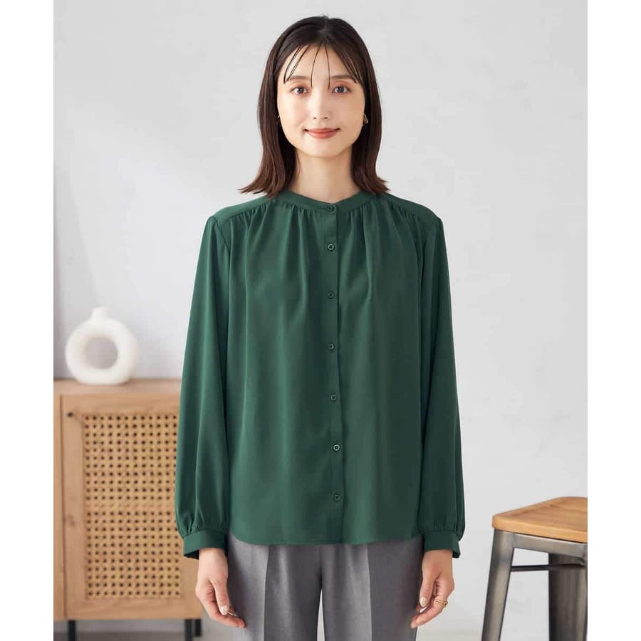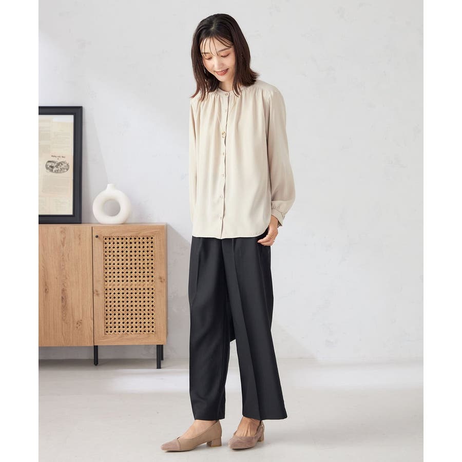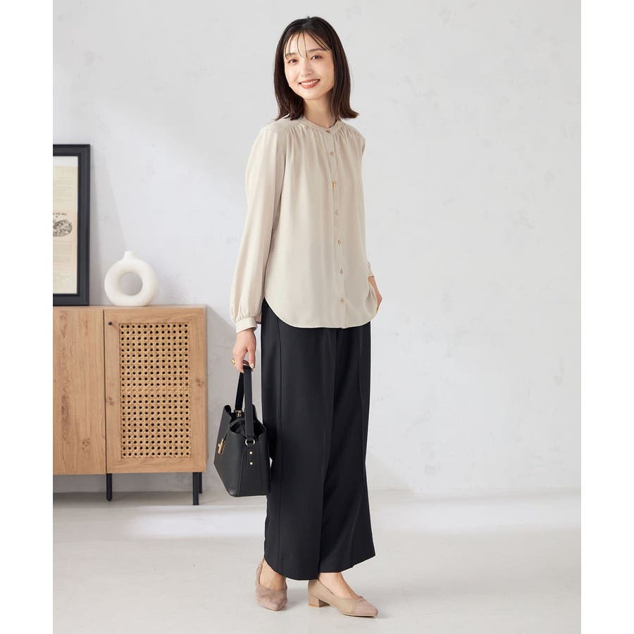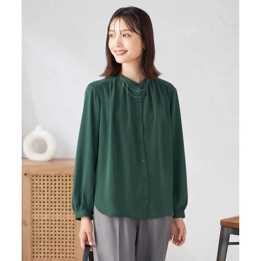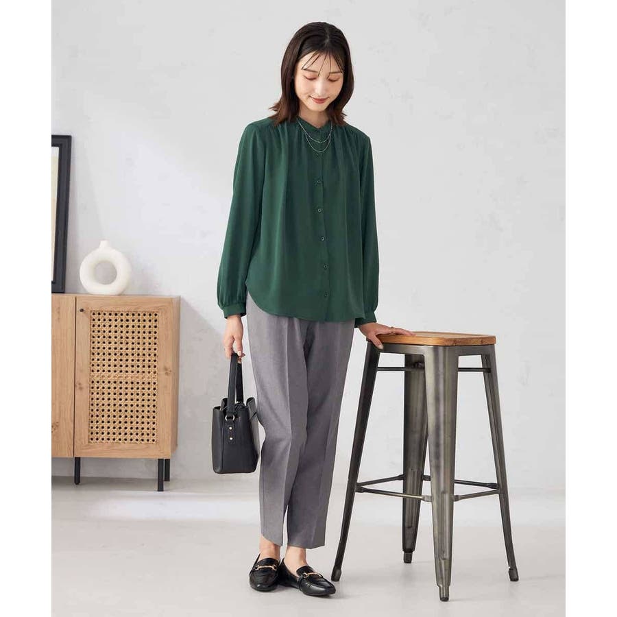 【洗える/セットアップ可】バンドカラーブラウス
