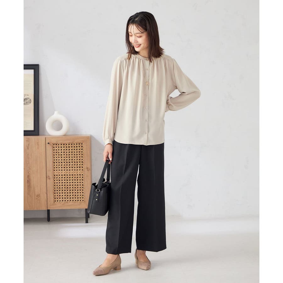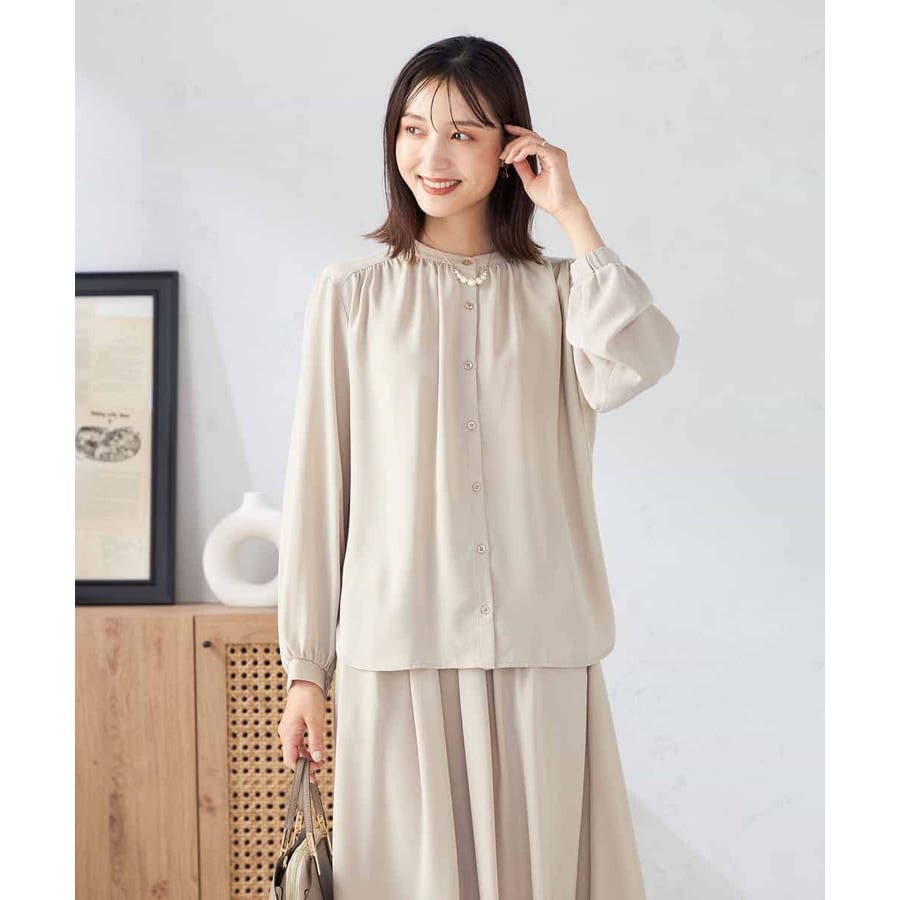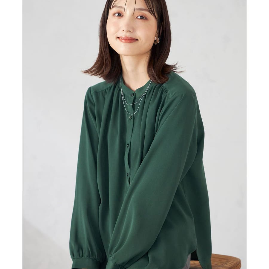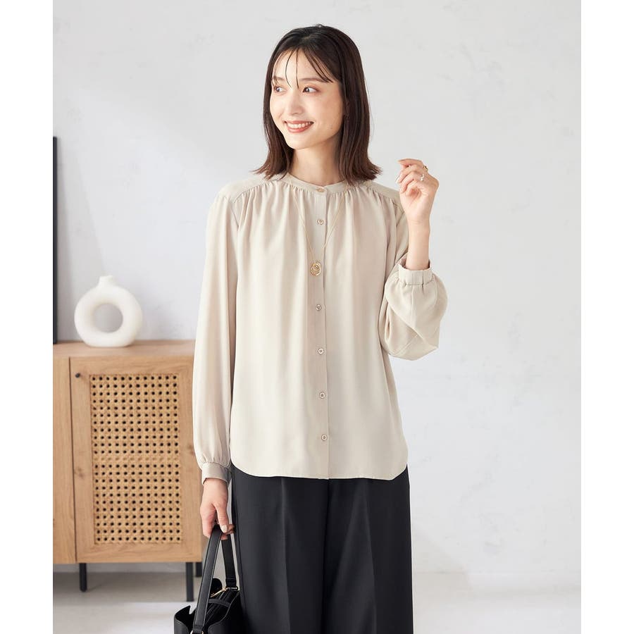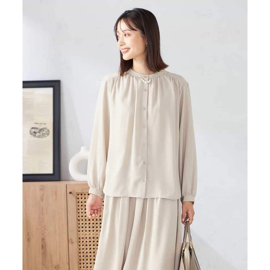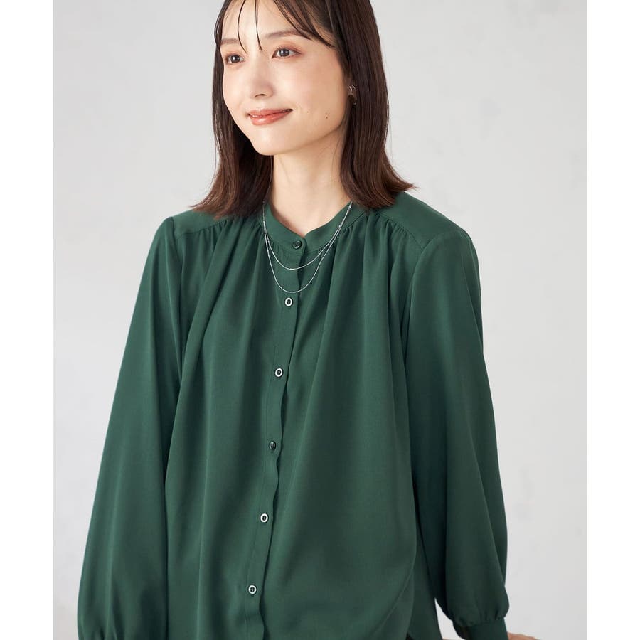 【洗える/セットアップ可】バンドカラーブラウス