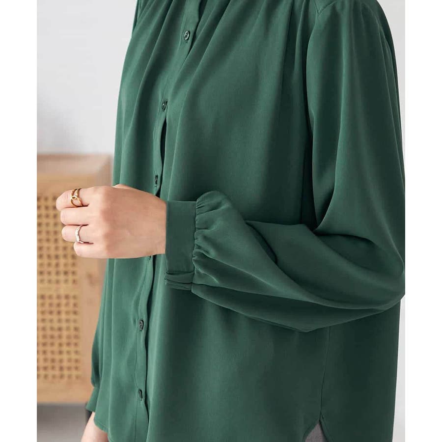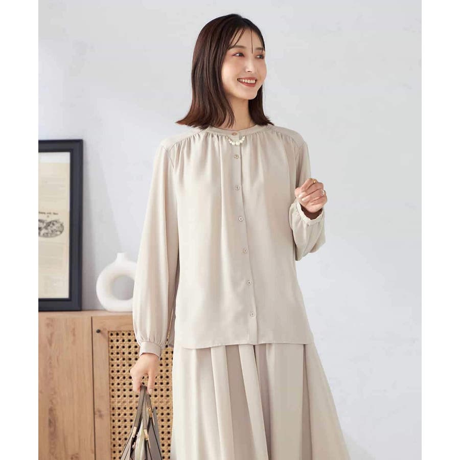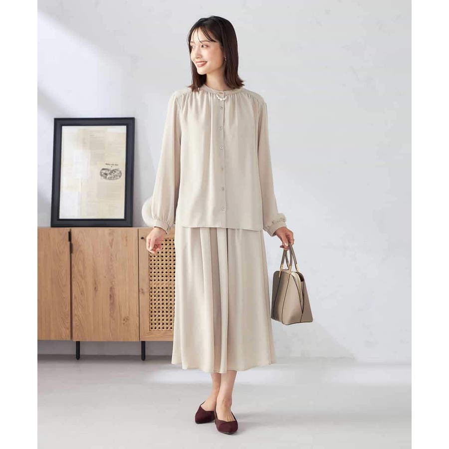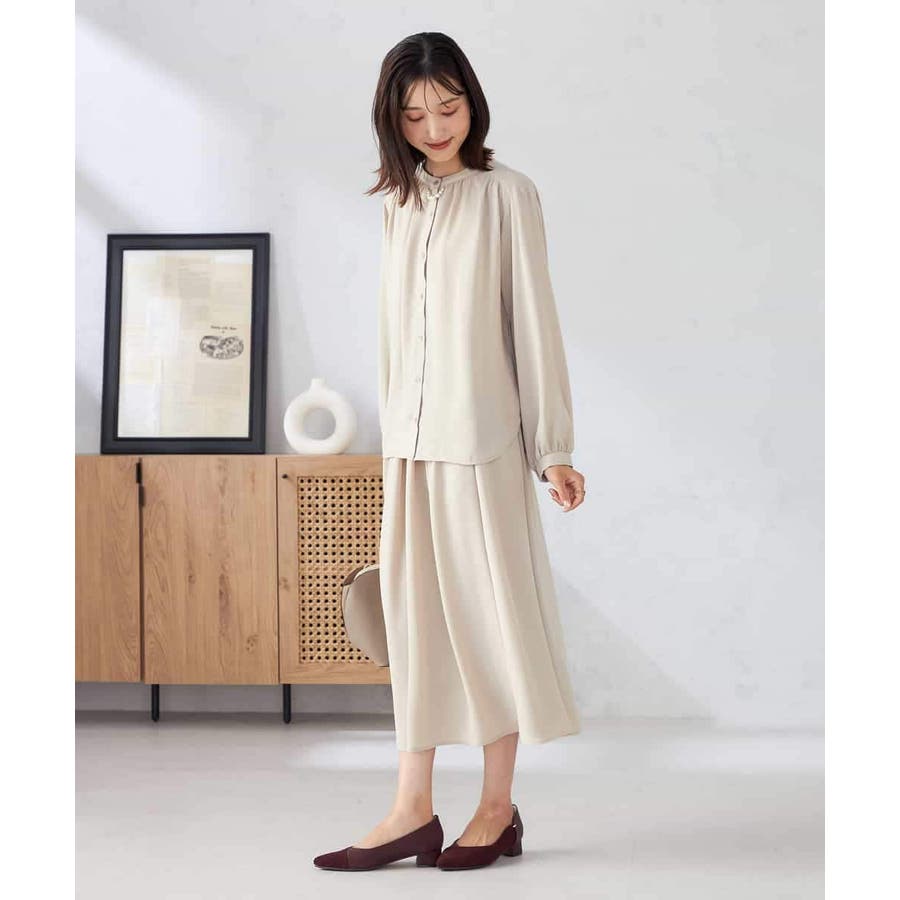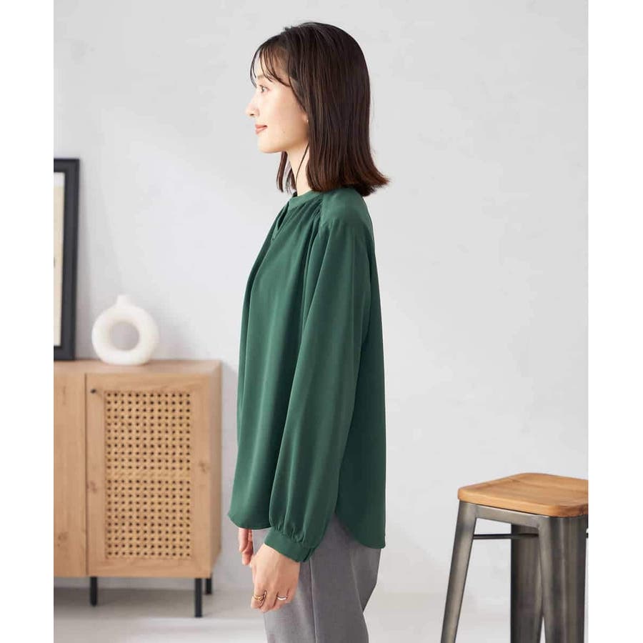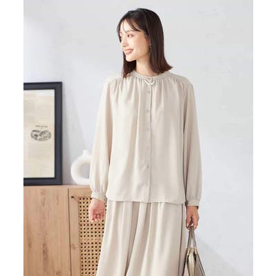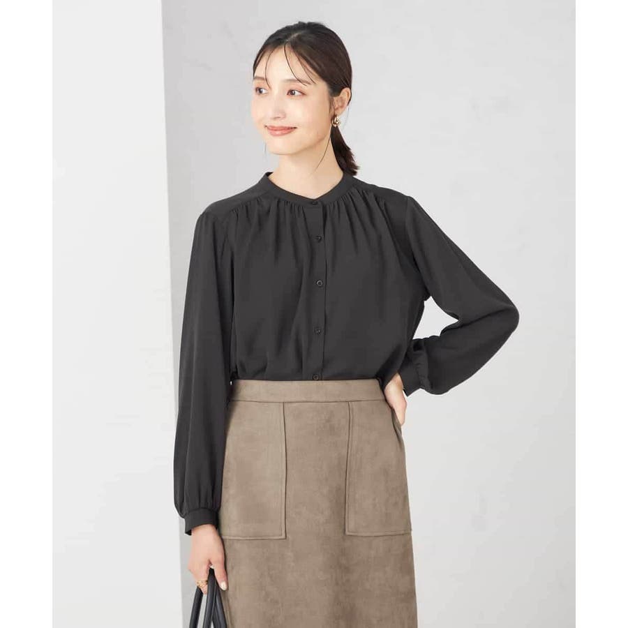 【洗える/セットアップ可】バンドカラーブラウス