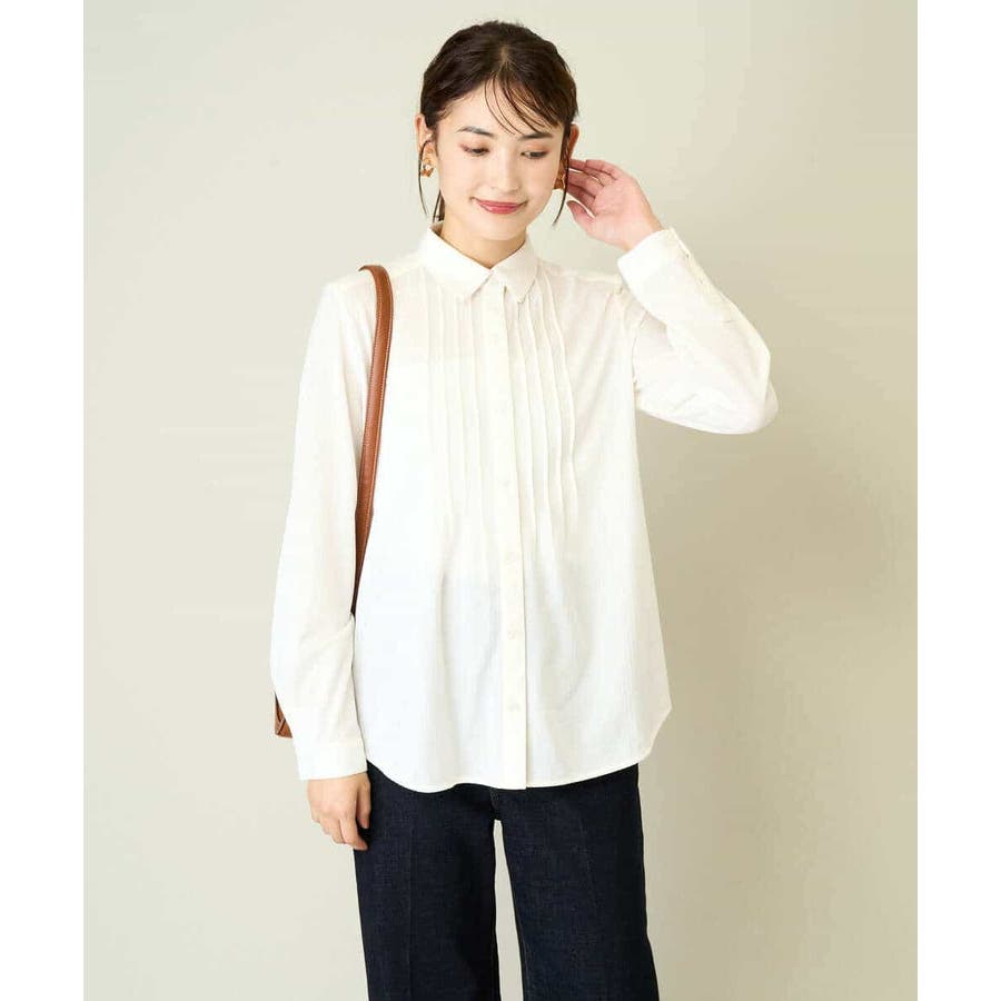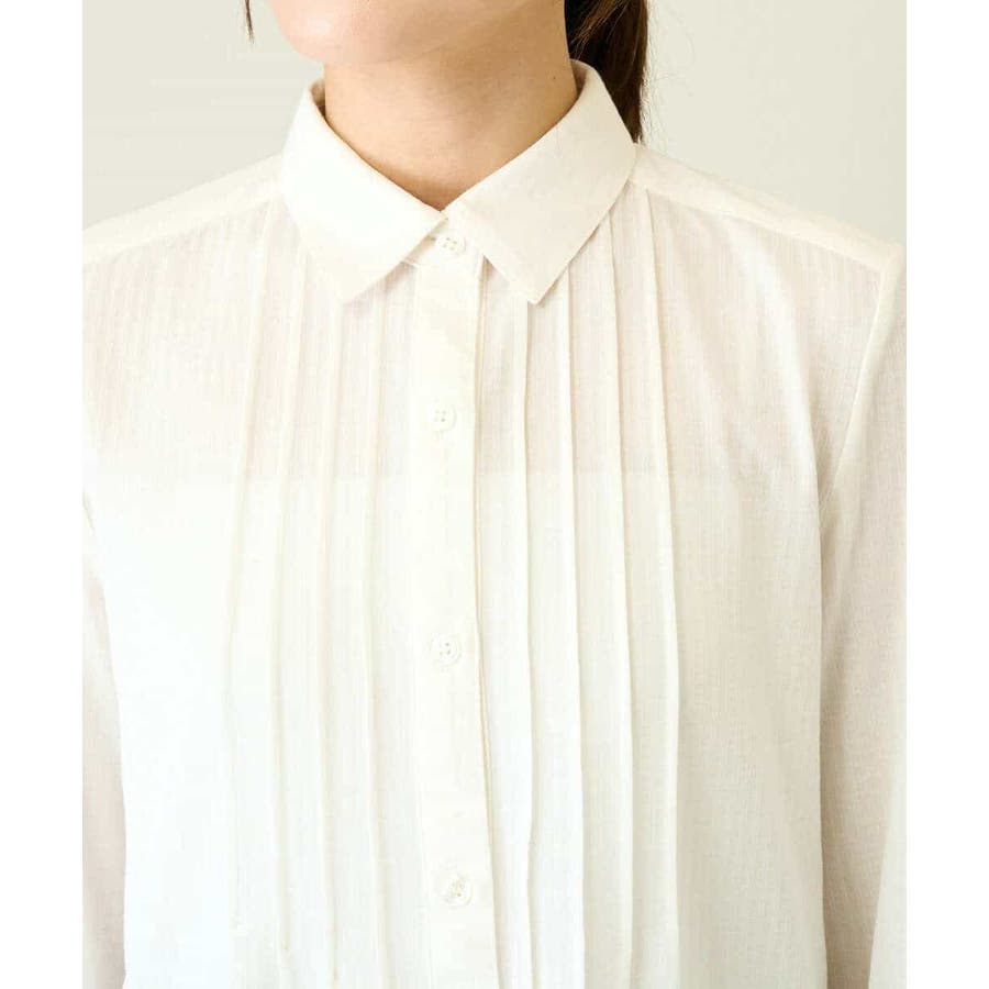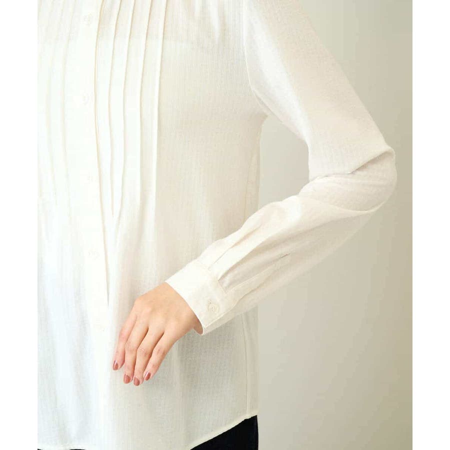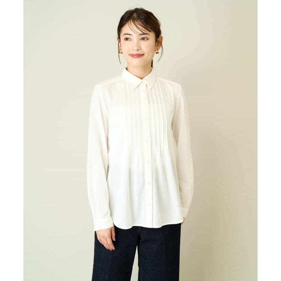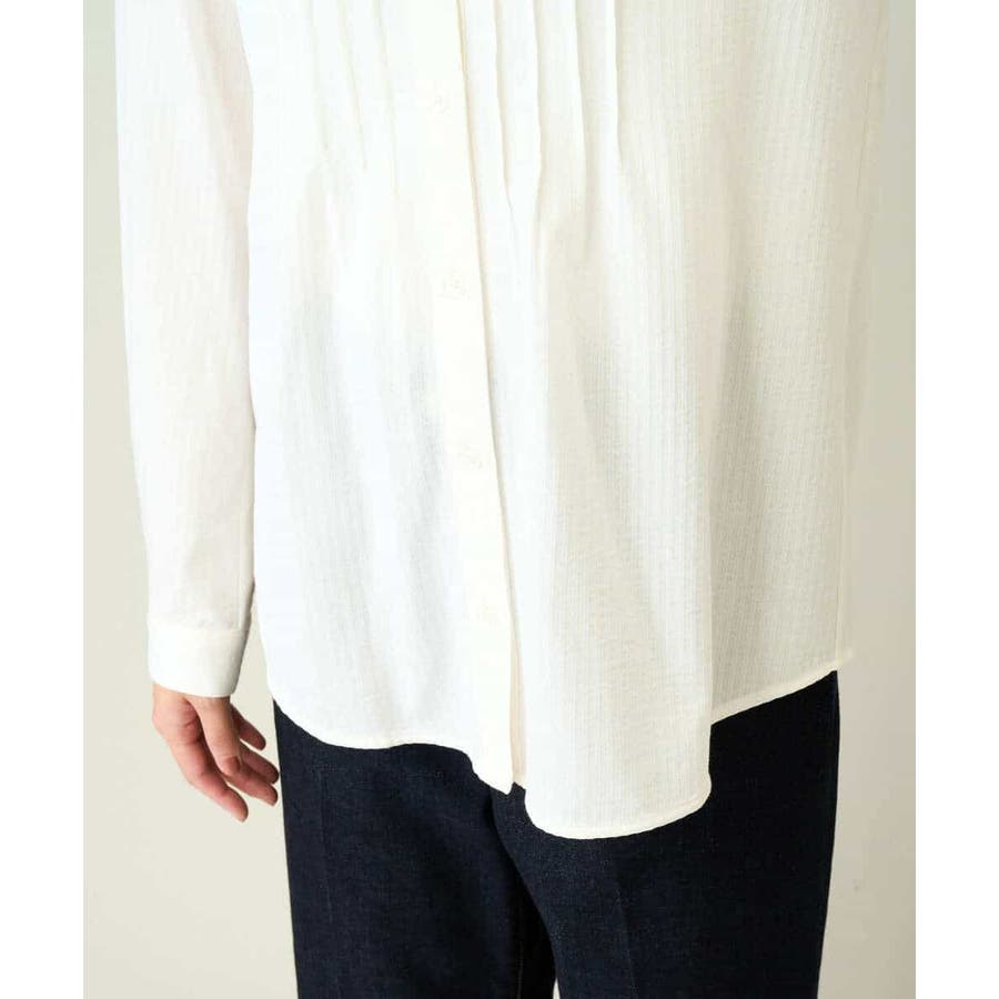 ・胸元には繊細なピンタックデザインが施されたブラウス
