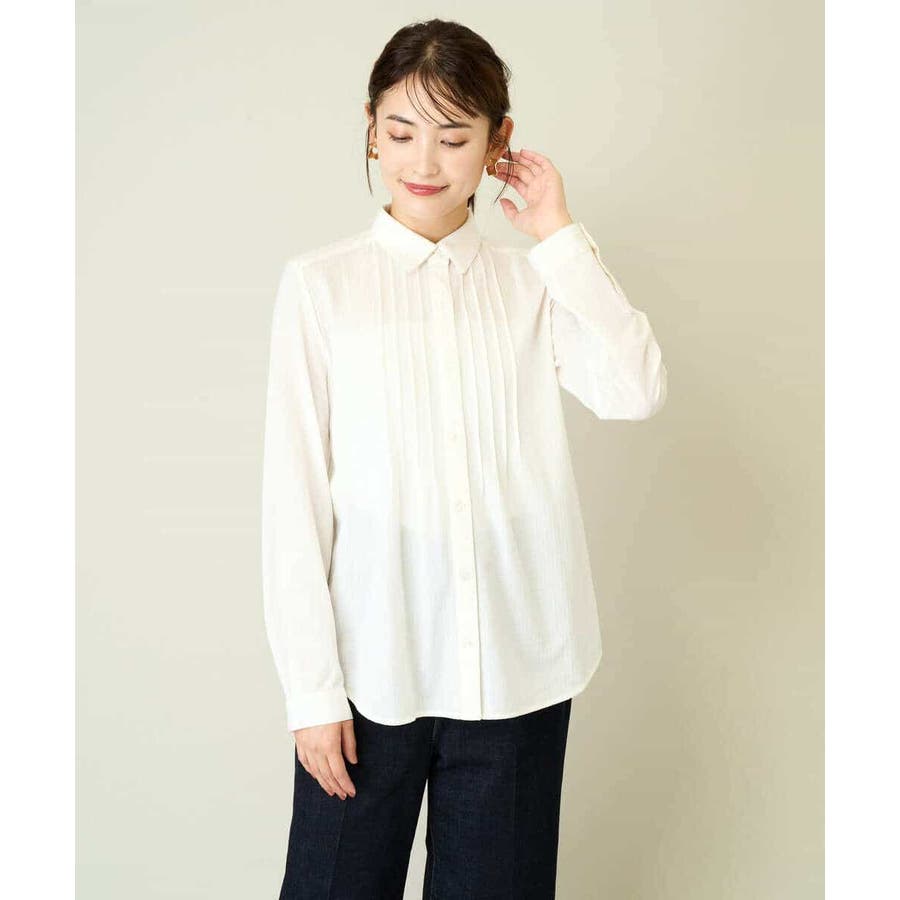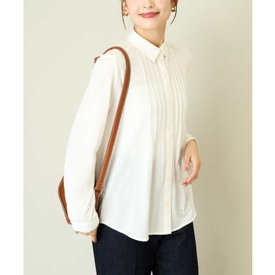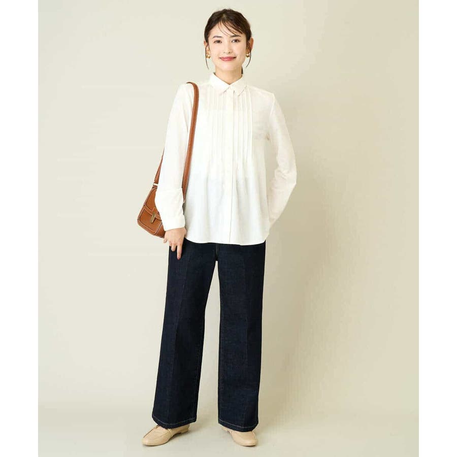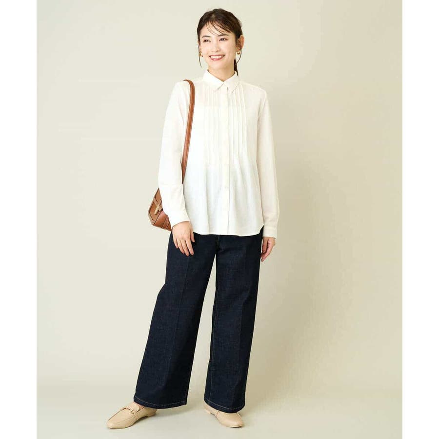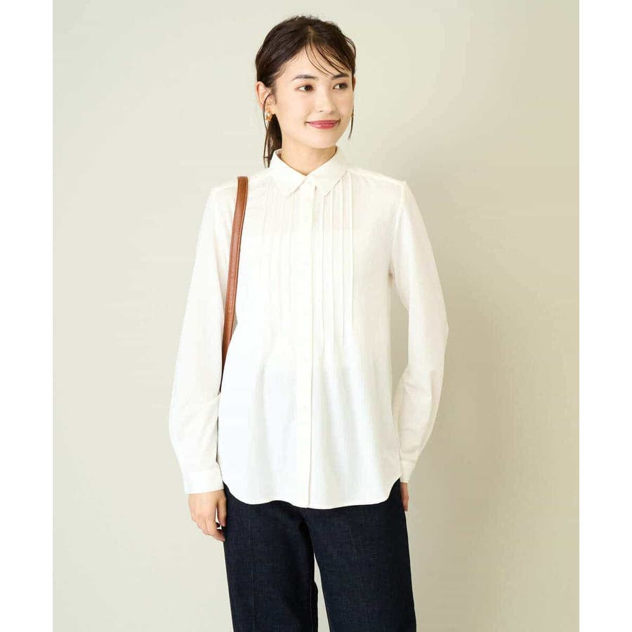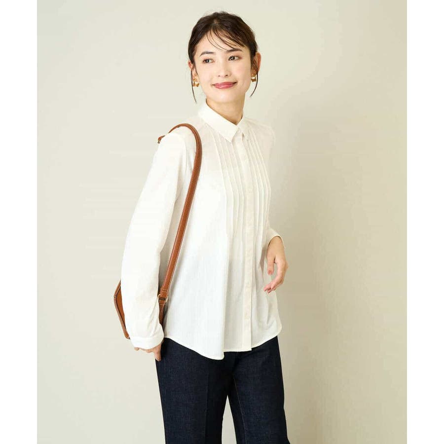 ・胸元には繊細なピンタックデザインが施されたブラウス