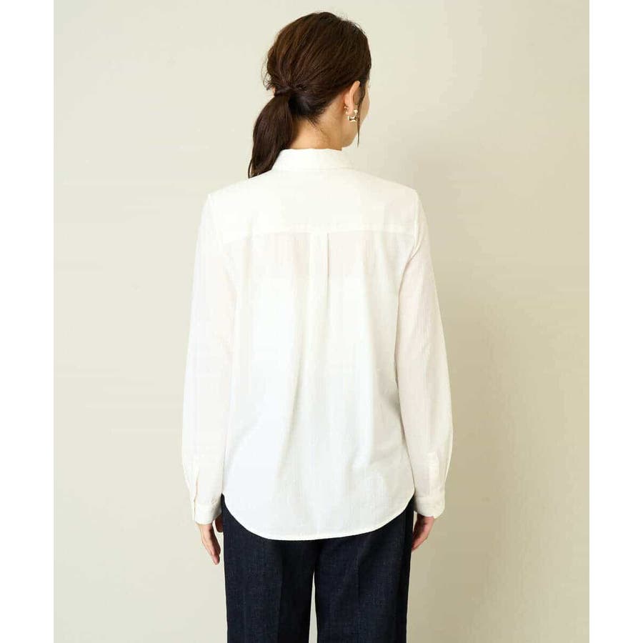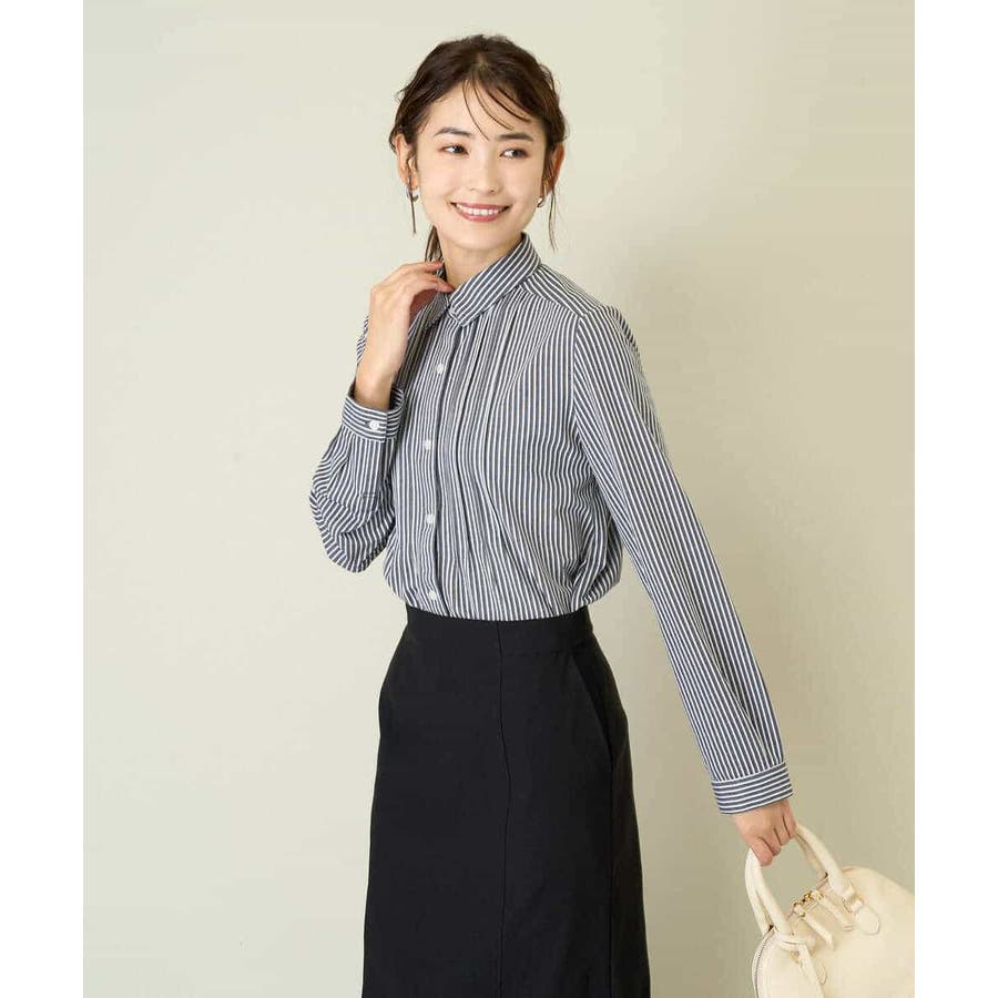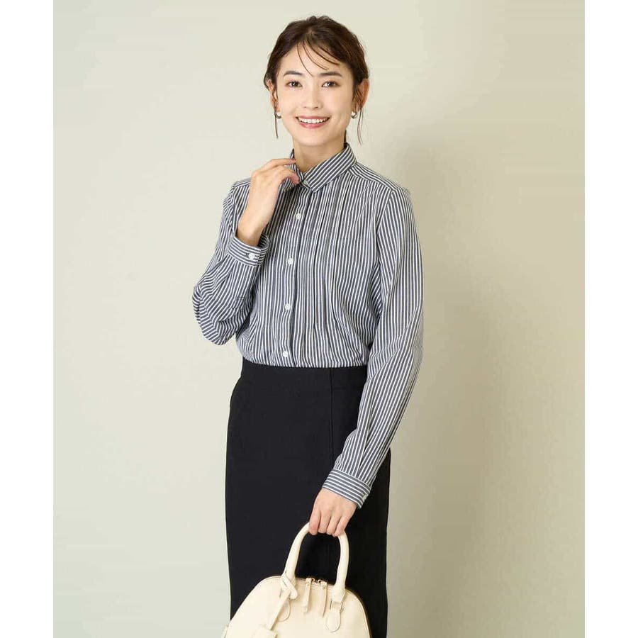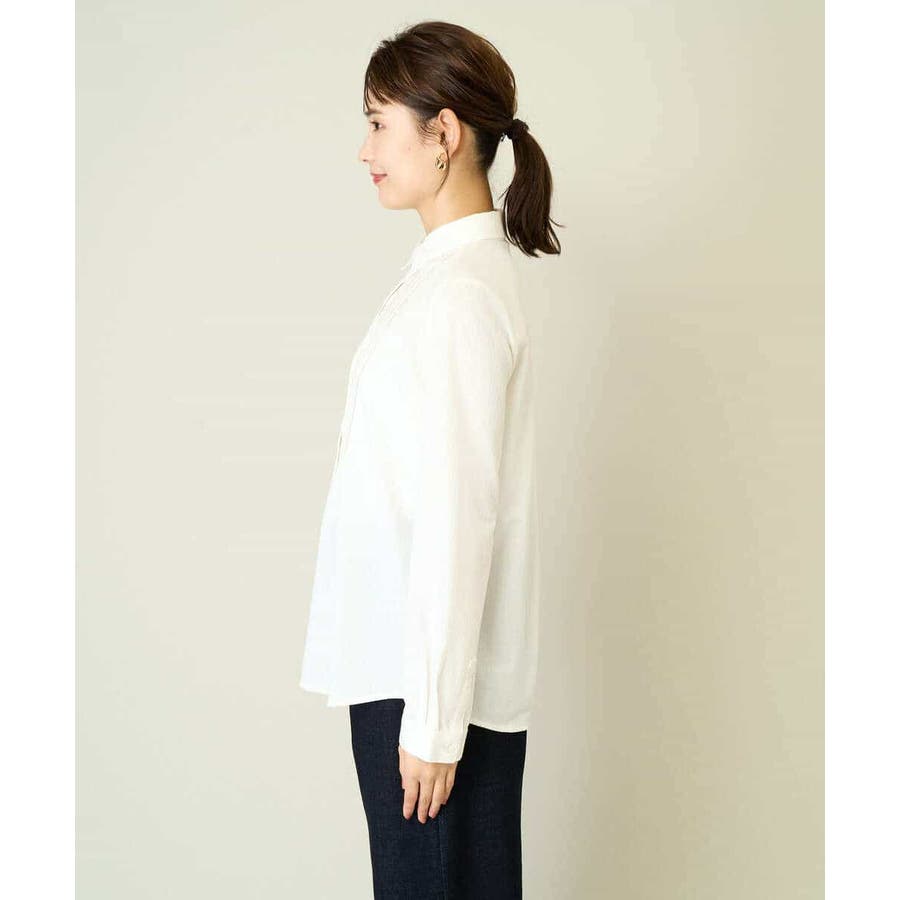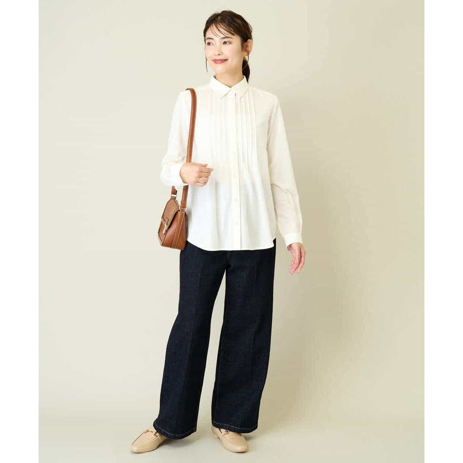 ・胸元には繊細なピンタックデザインが施されたブラウス