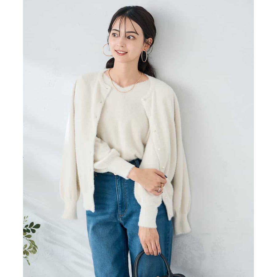 ◆ふわふわ×ラメ素材で女性らしく華やぐニットカーディガン◆