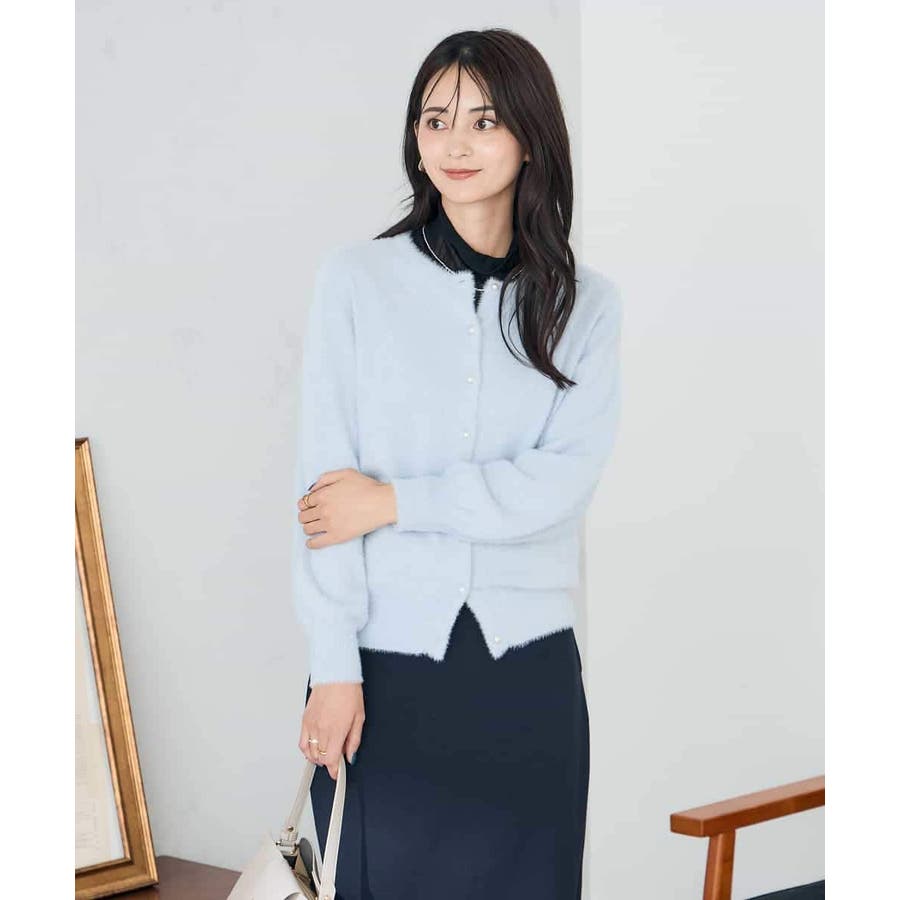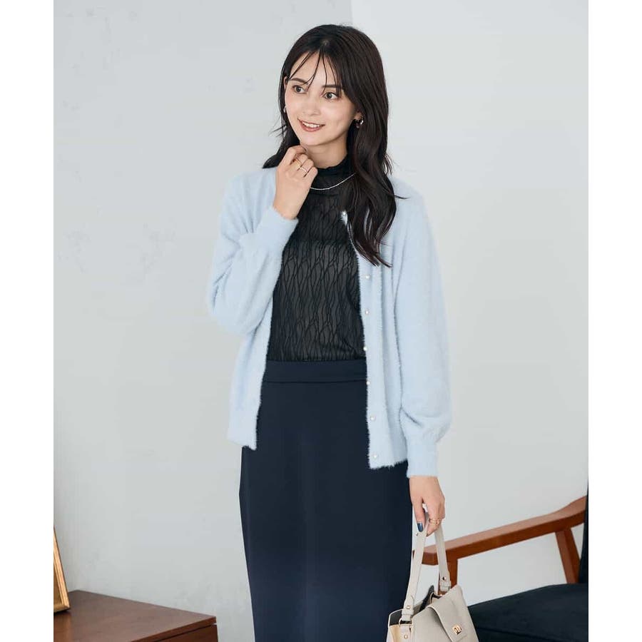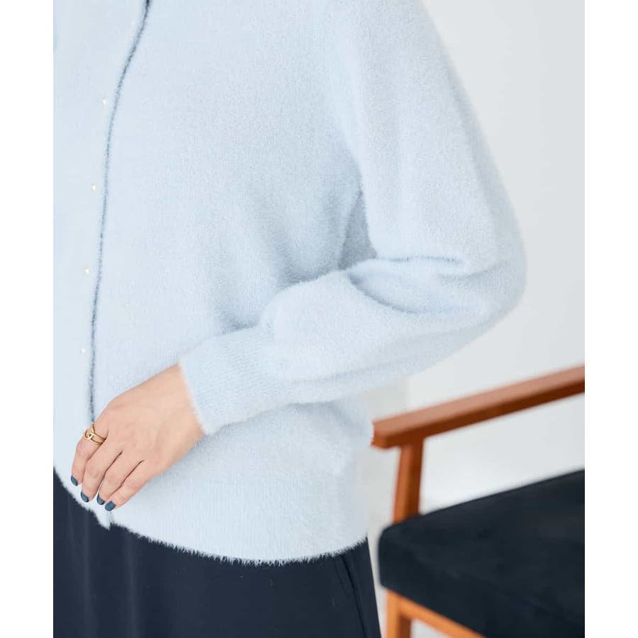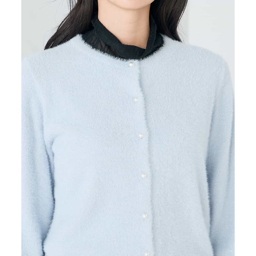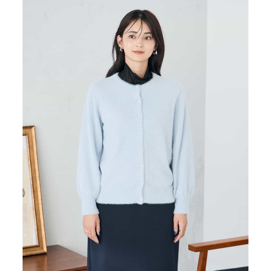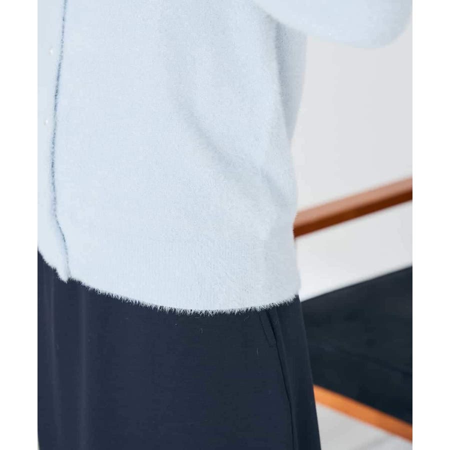 ・開細ラメ×フェザー素材で派手すぎず上品に華やぐニットカーディガン
