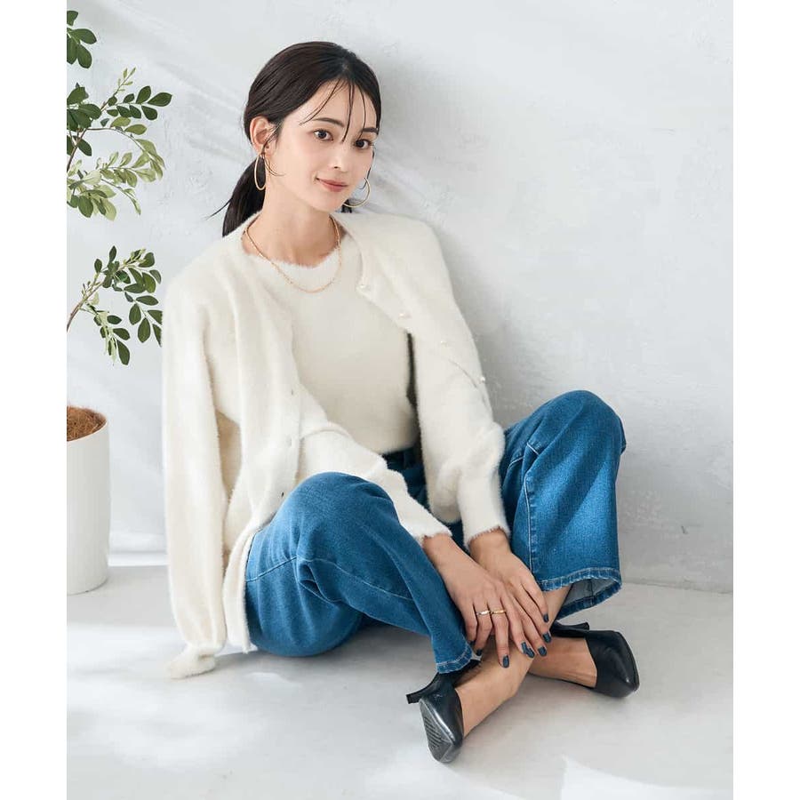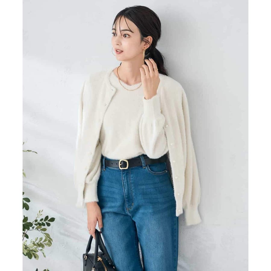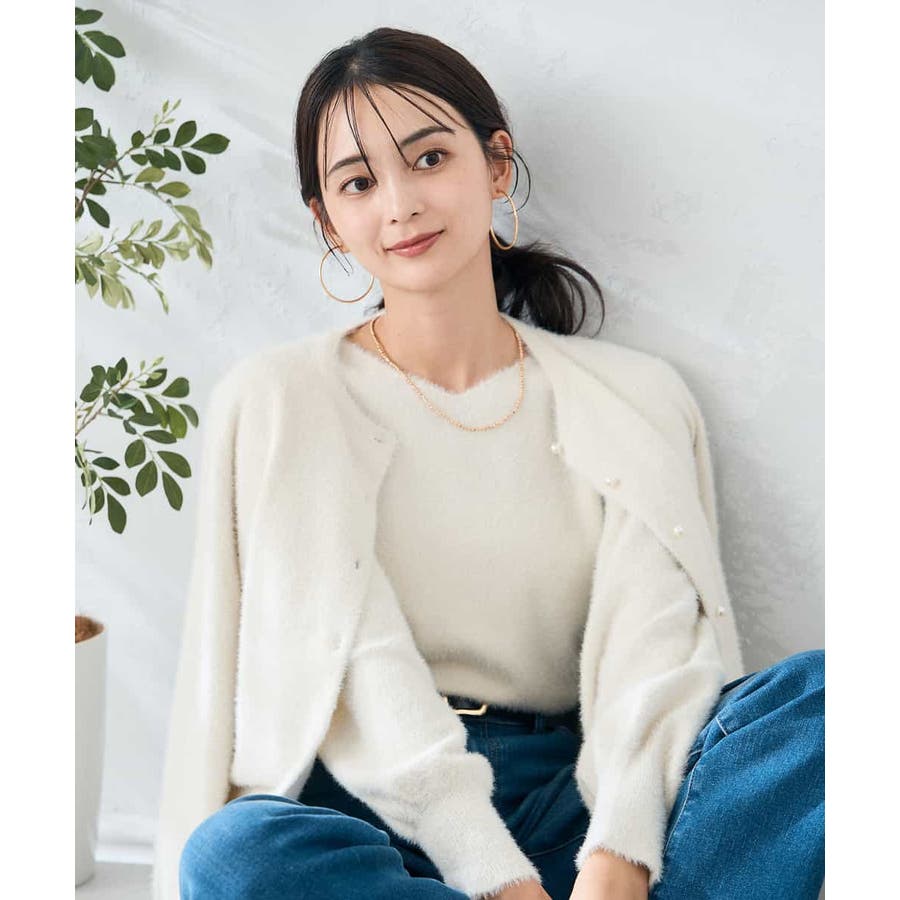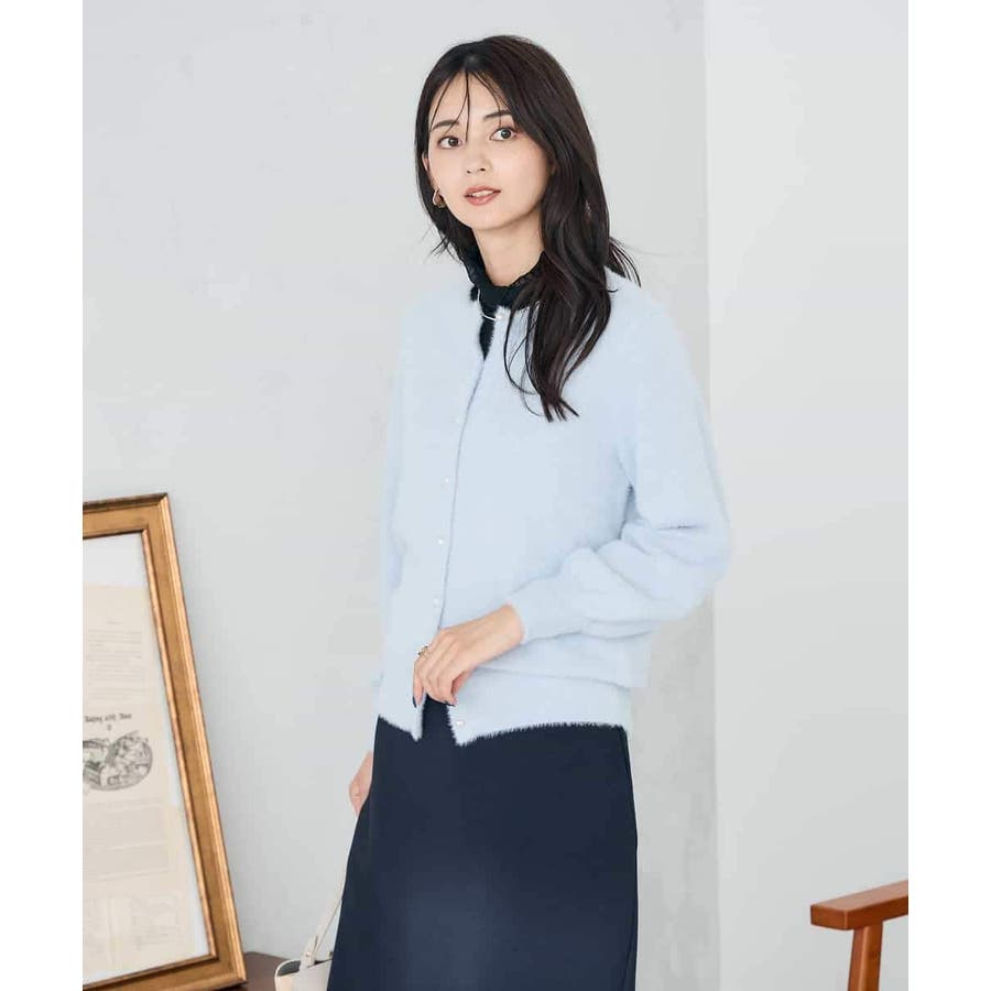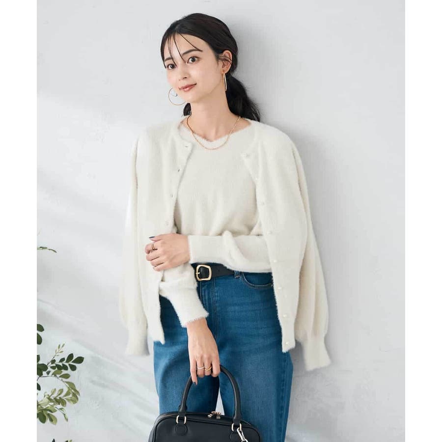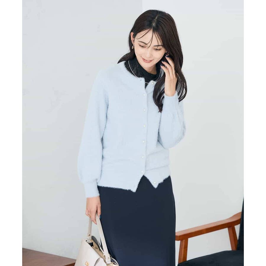 ・開細ラメ×フェザー素材で派手すぎず上品に華やぐニットカーディガン