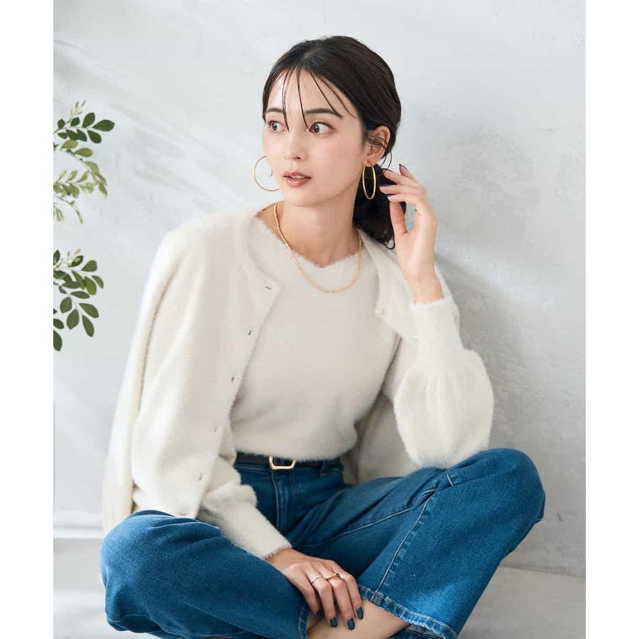 ふわふわ素材×上品ラメで、ボトム問わずきれいめスタイルに仕上がります。