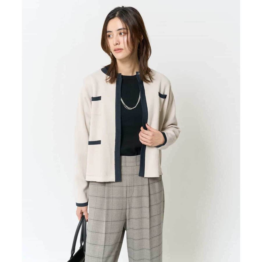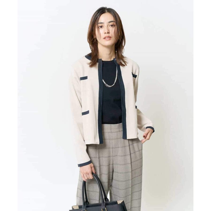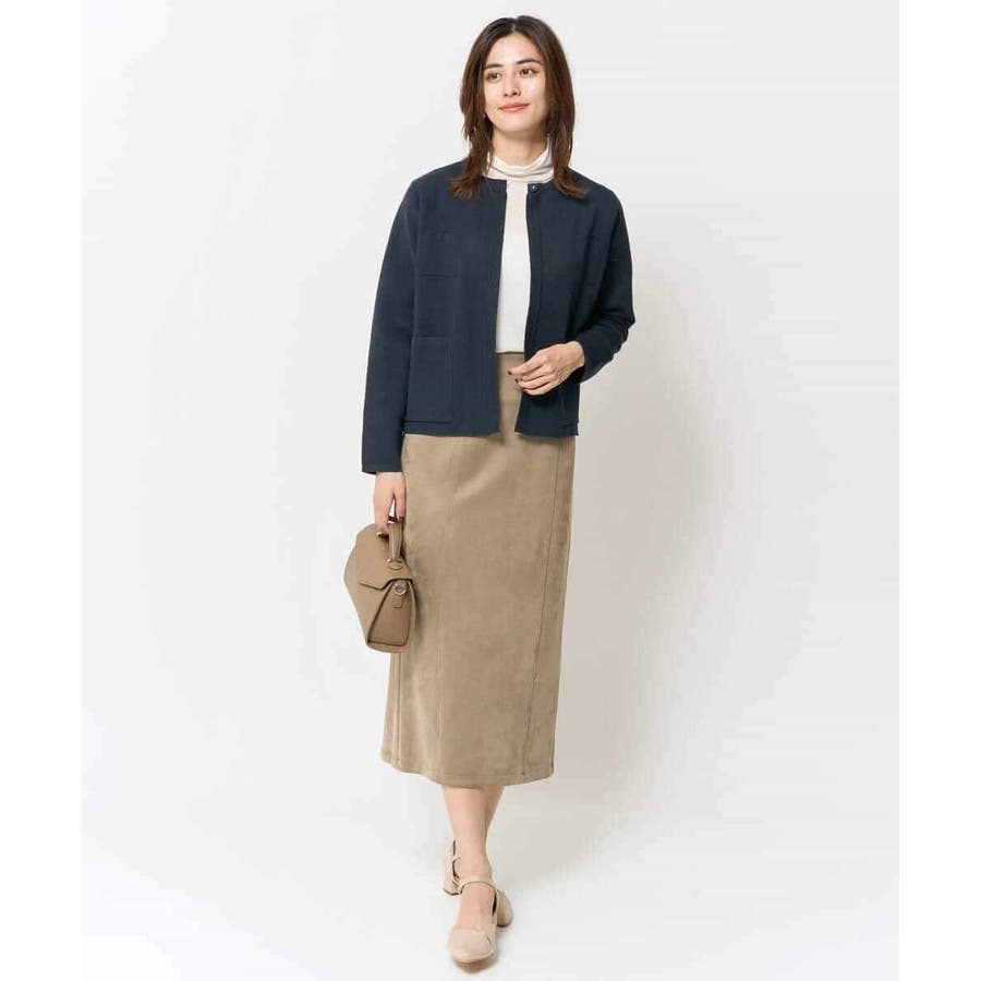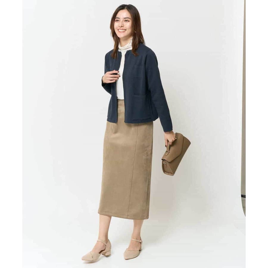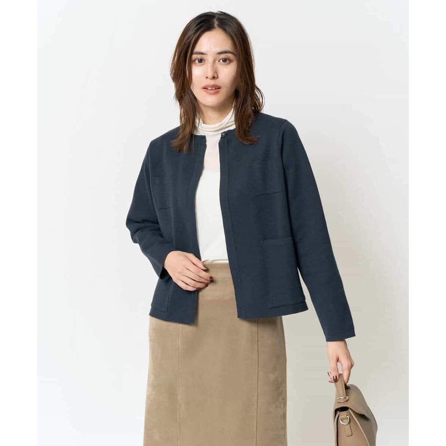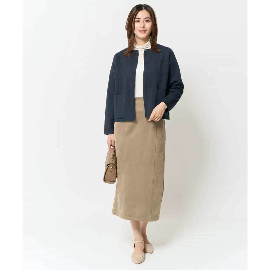 ハイネックをインナーに着てレイヤードスタイルも楽しめます。