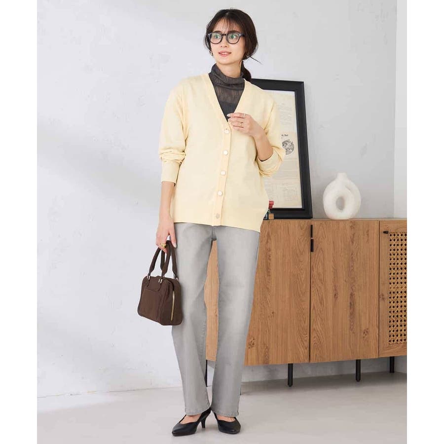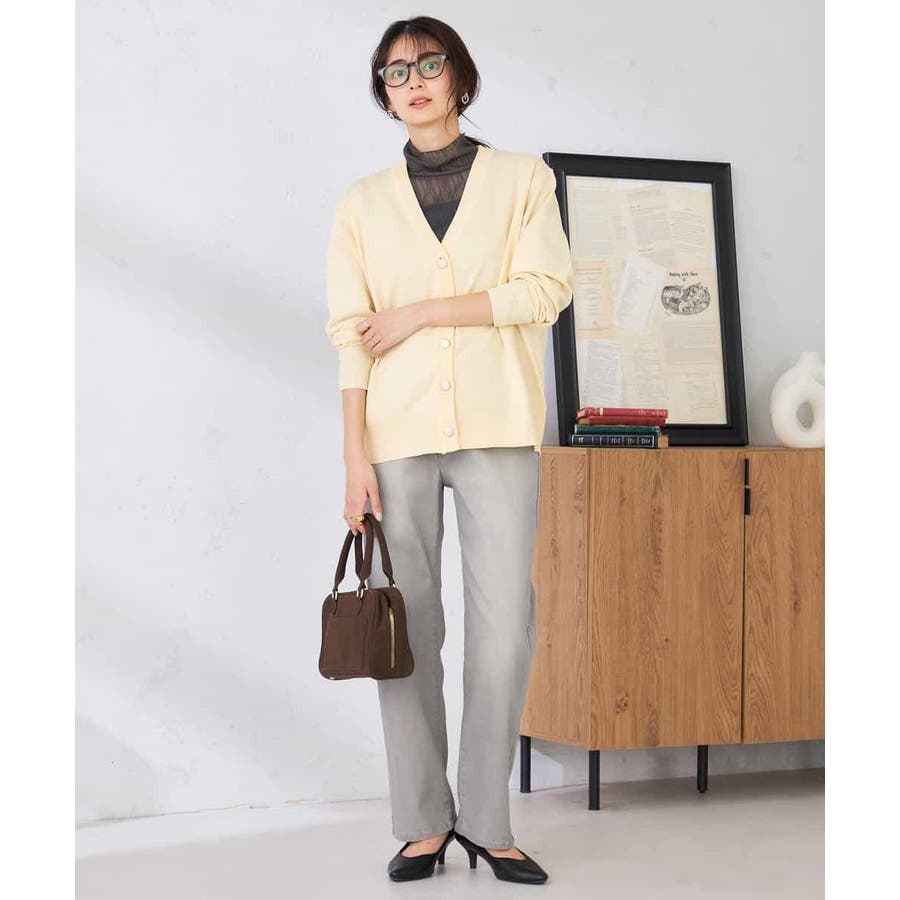 羽織りとしてはもちろん、ボタンを閉じてシアーインナーとのレイヤードも◎