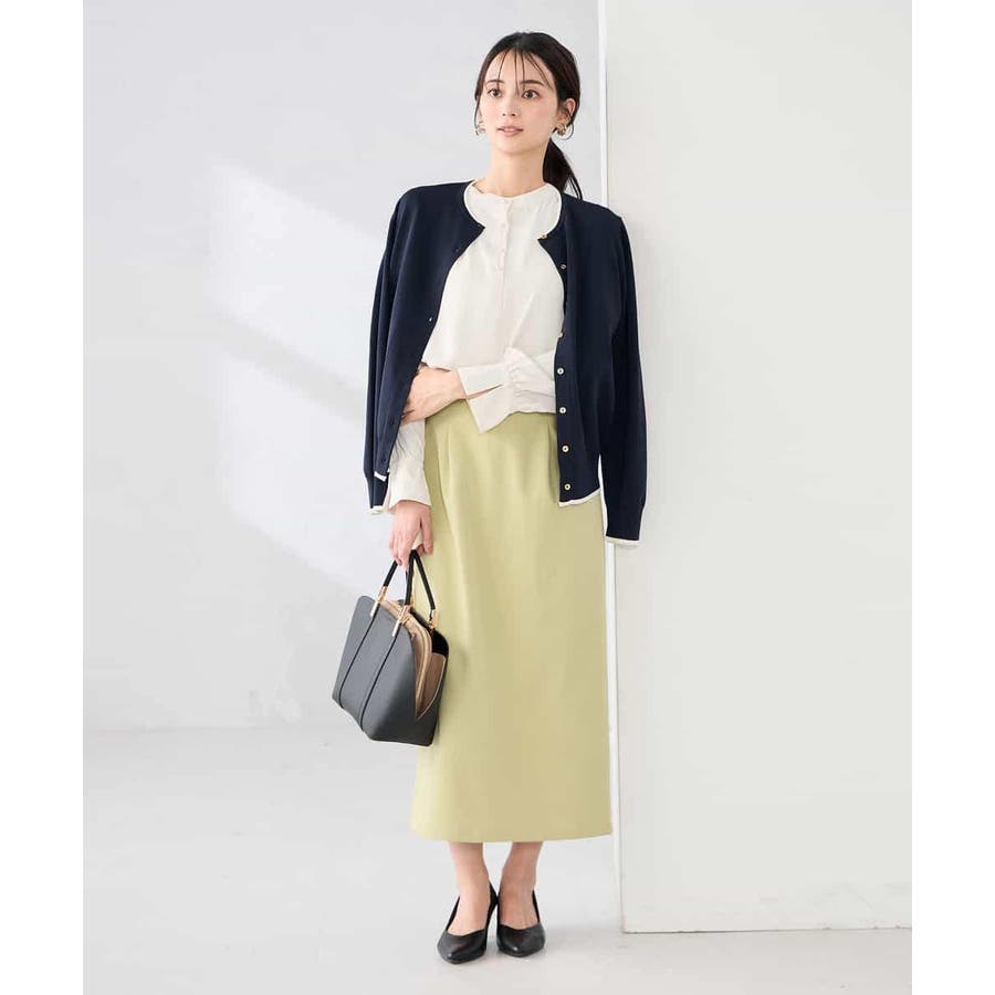 同素材ニットとのアンサンブルスタイルはきれい見えし、通勤時にもおすすめ。