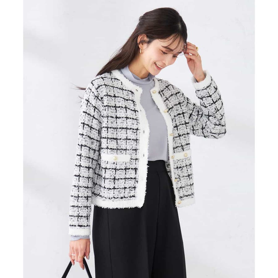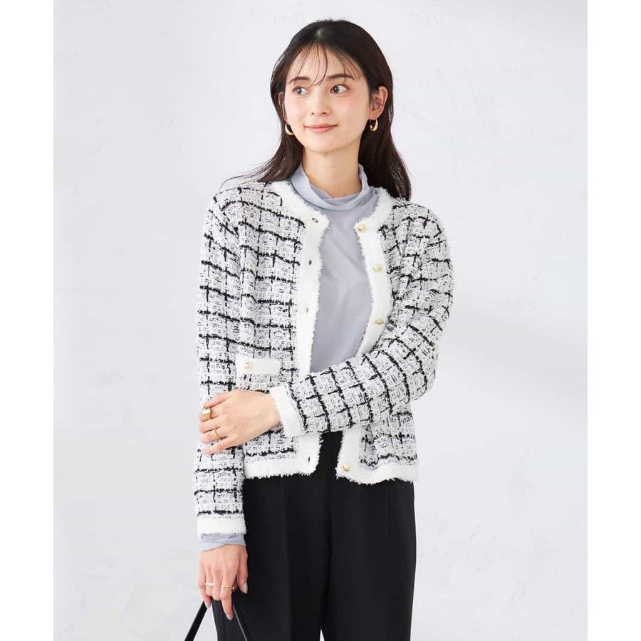 ・ツイードジャケット感覚で楽しめるきれいめのニットジャケット