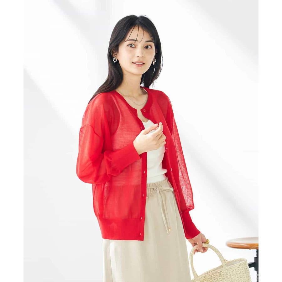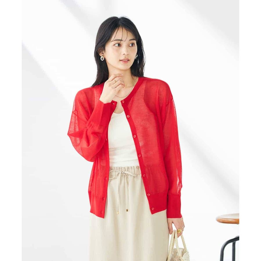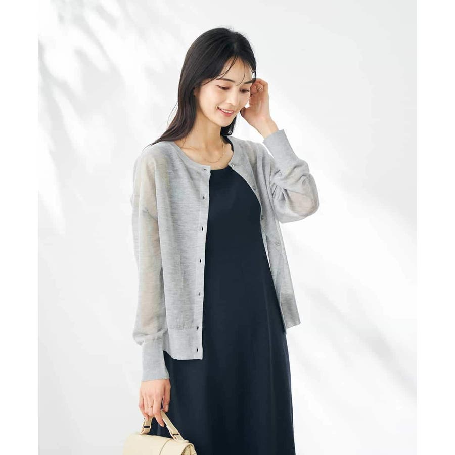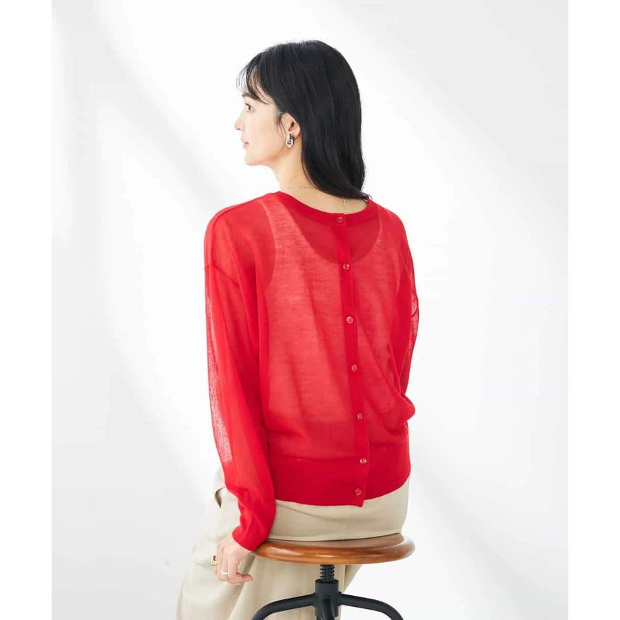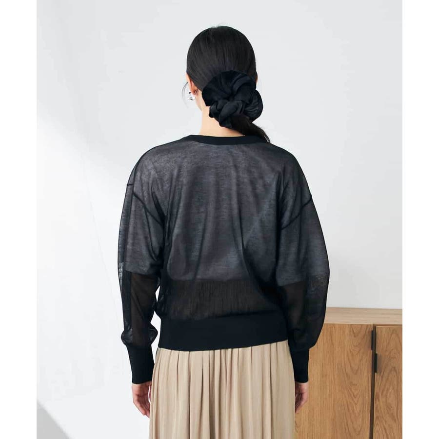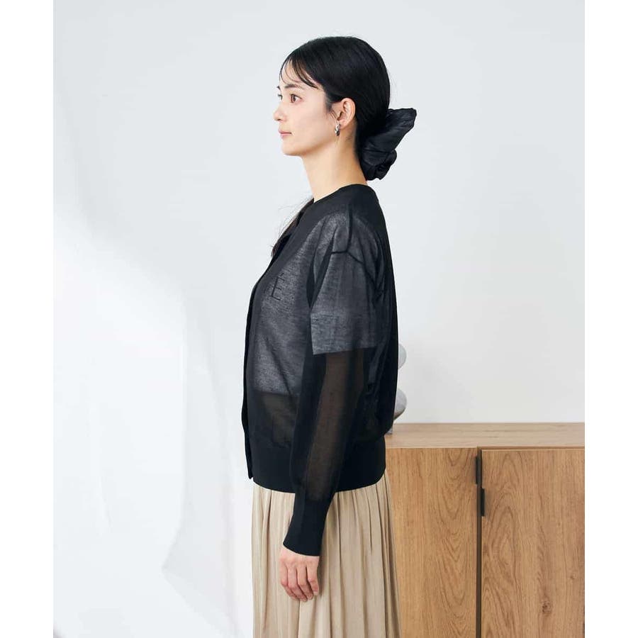 ・上品な光沢感のあるシアー素材のカーディガン