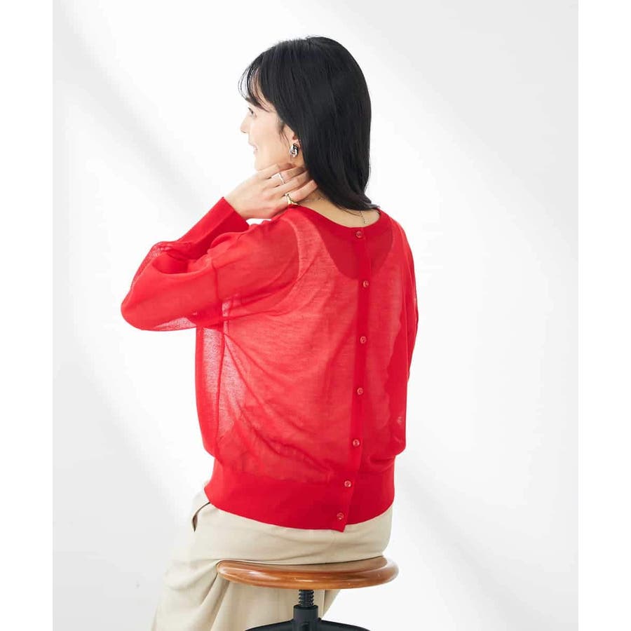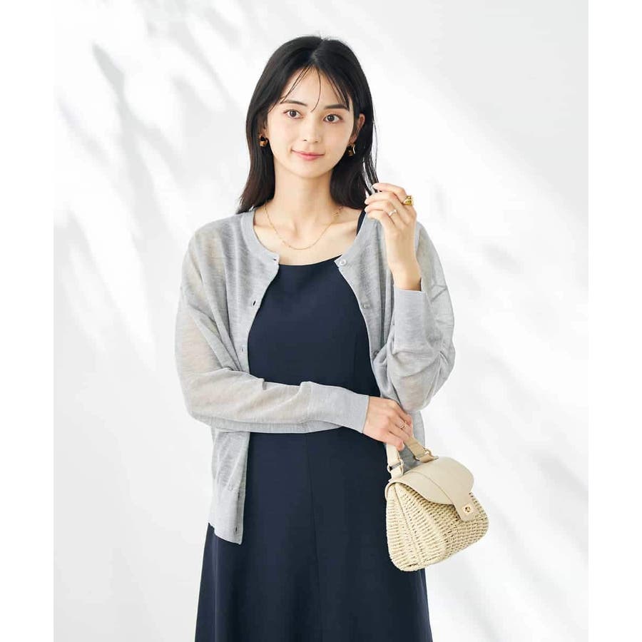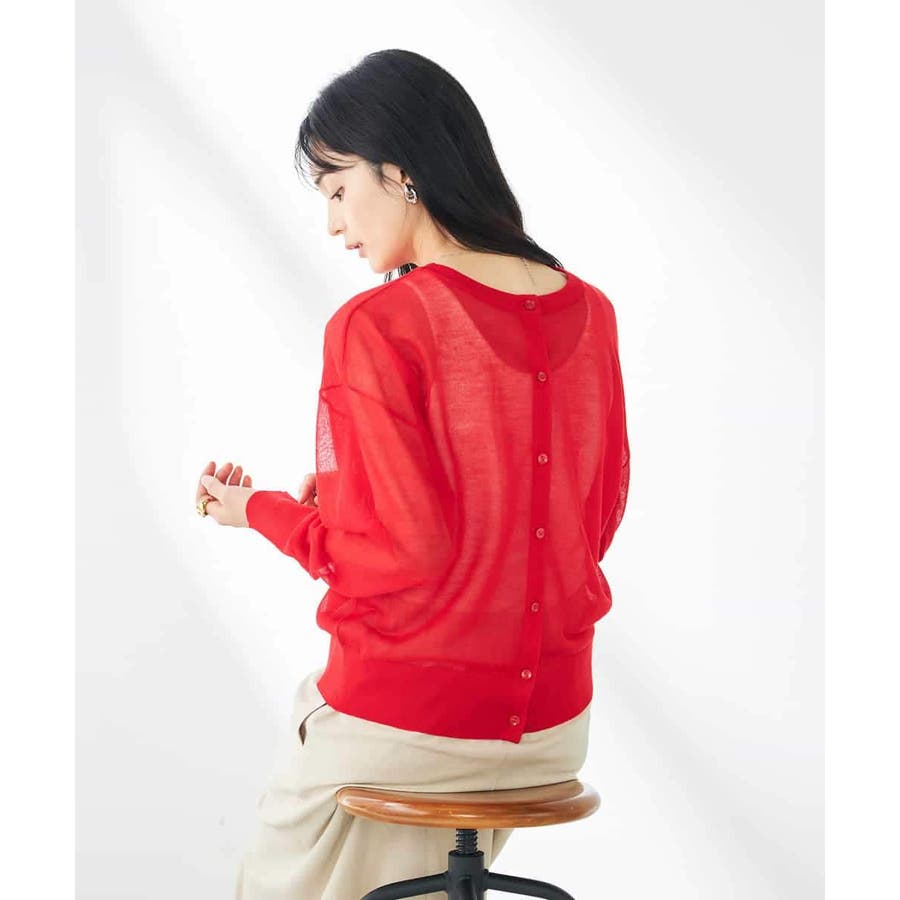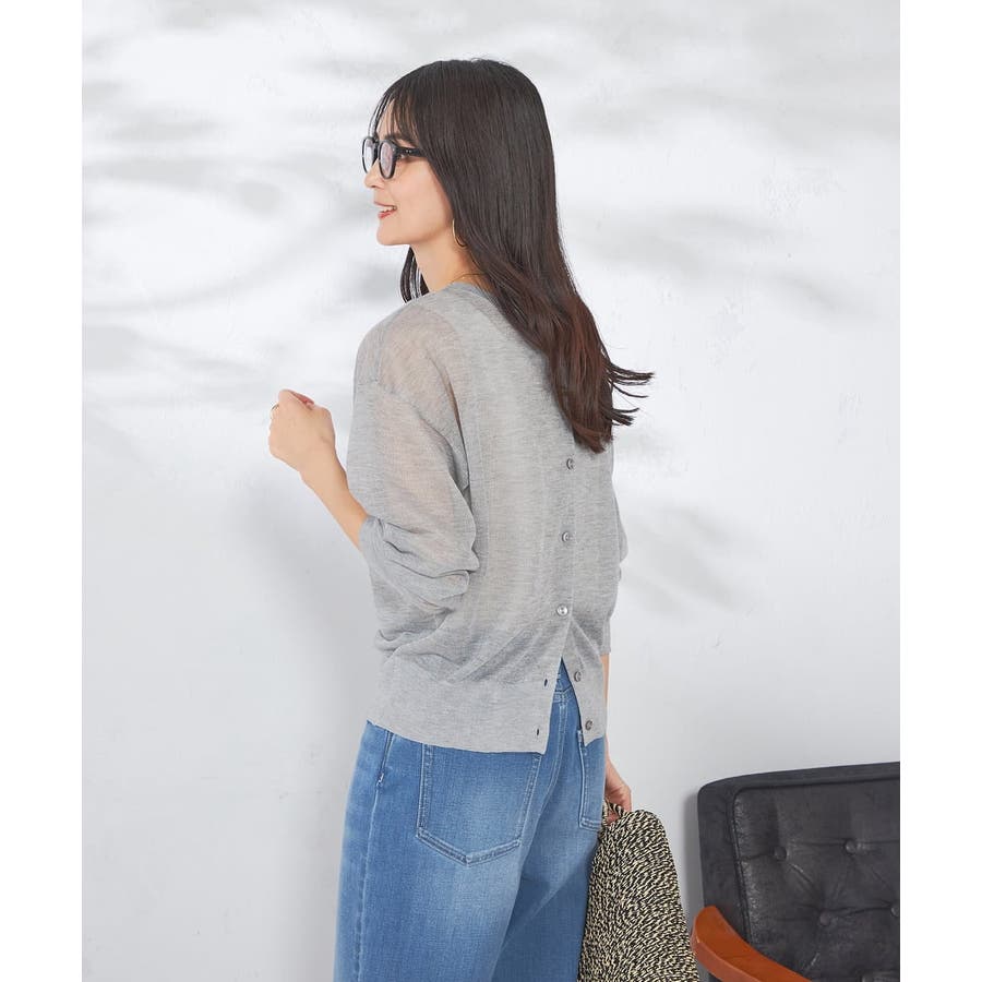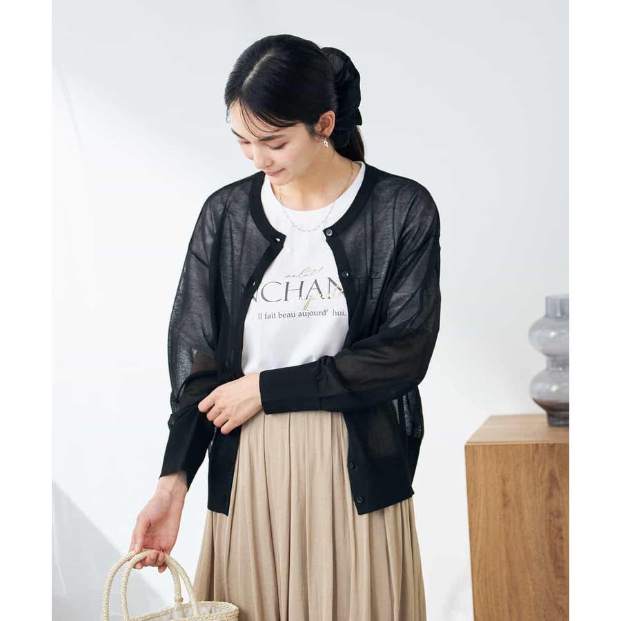 ・上品な光沢感のあるシアー素材のカーディガン
