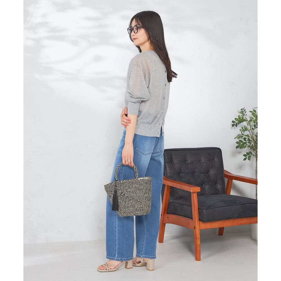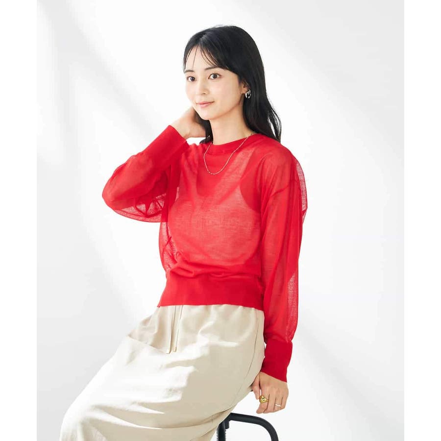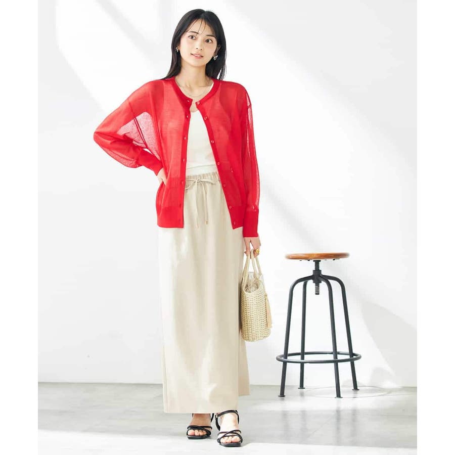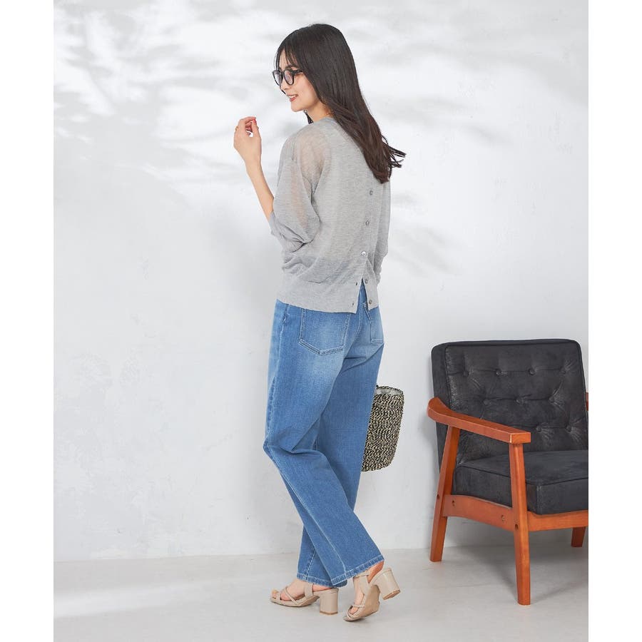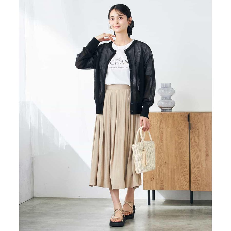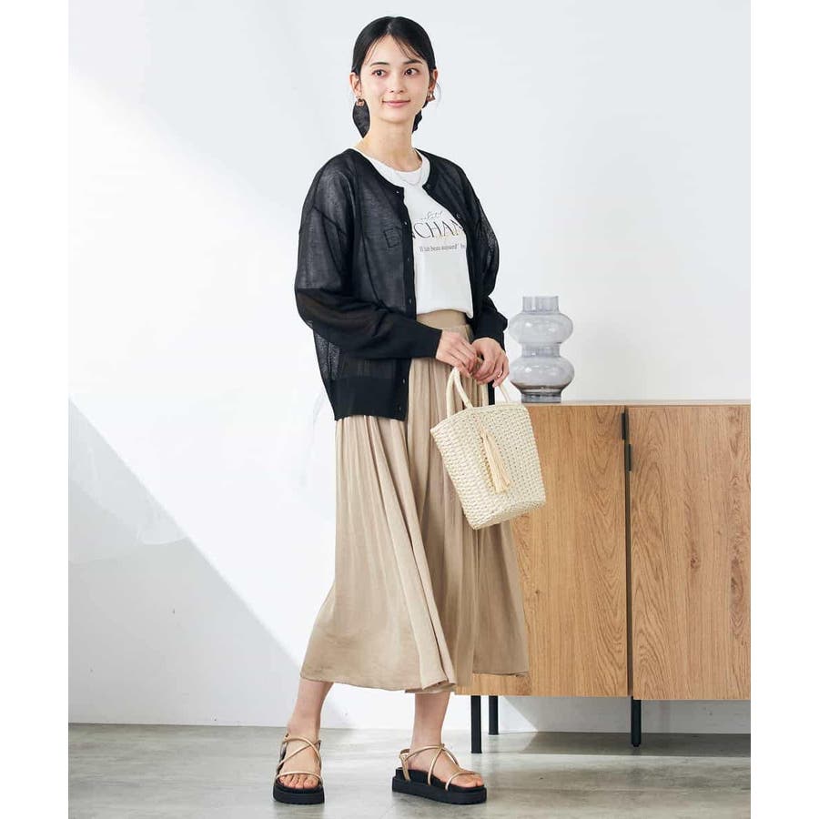・上品な光沢感のあるシアー素材のカーディガン