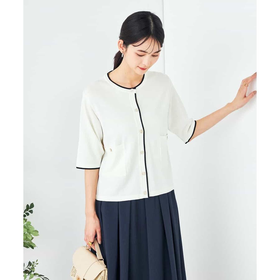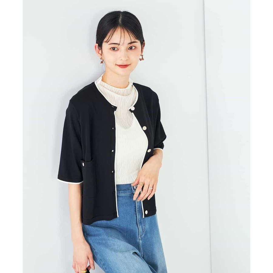 【UVカット/接触冷感】バイカラーハーフスリーブカーディガン