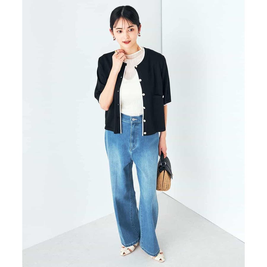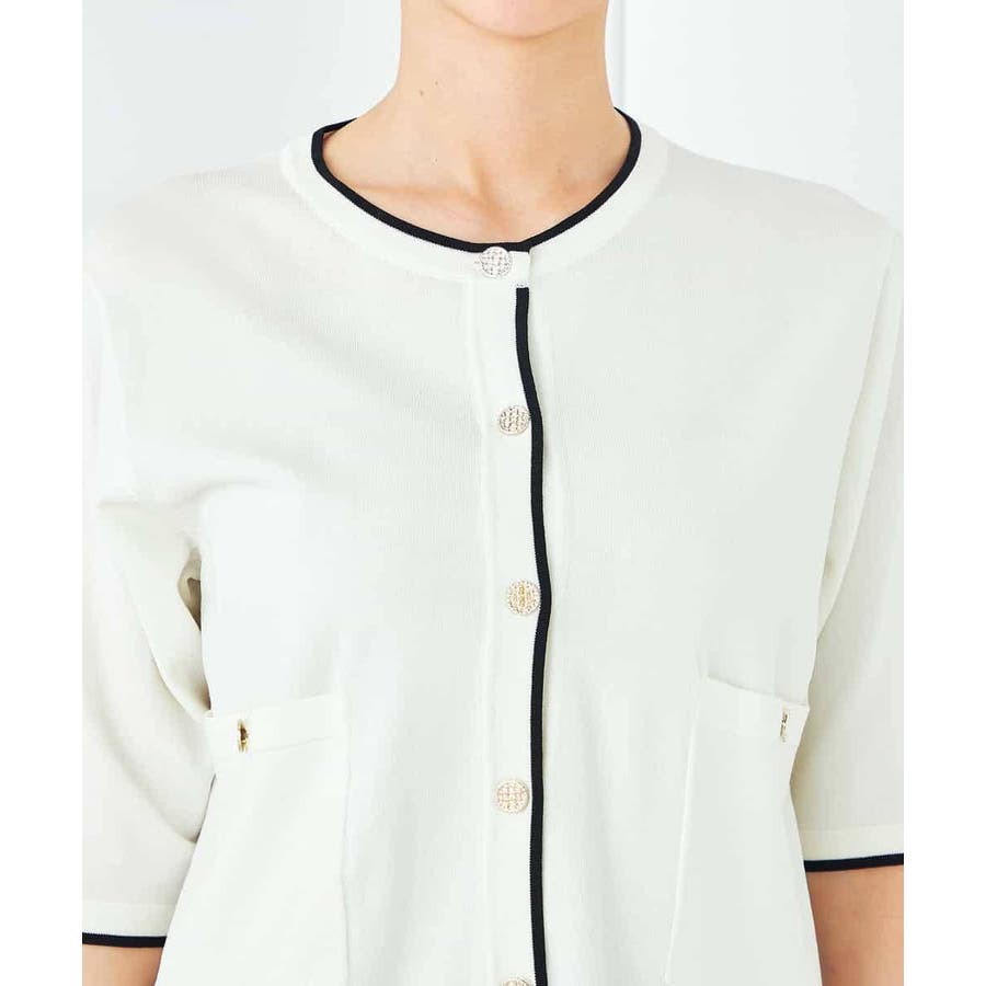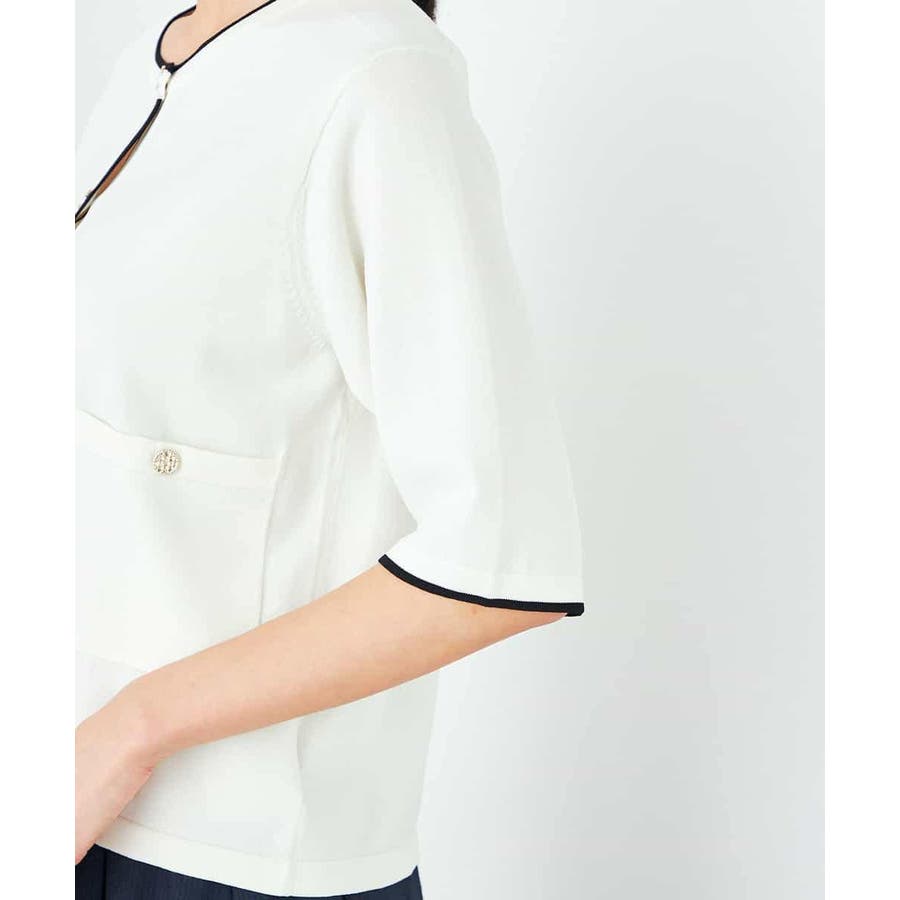 ・バイカラーが今年らしいジャケットライクなカーディガン
