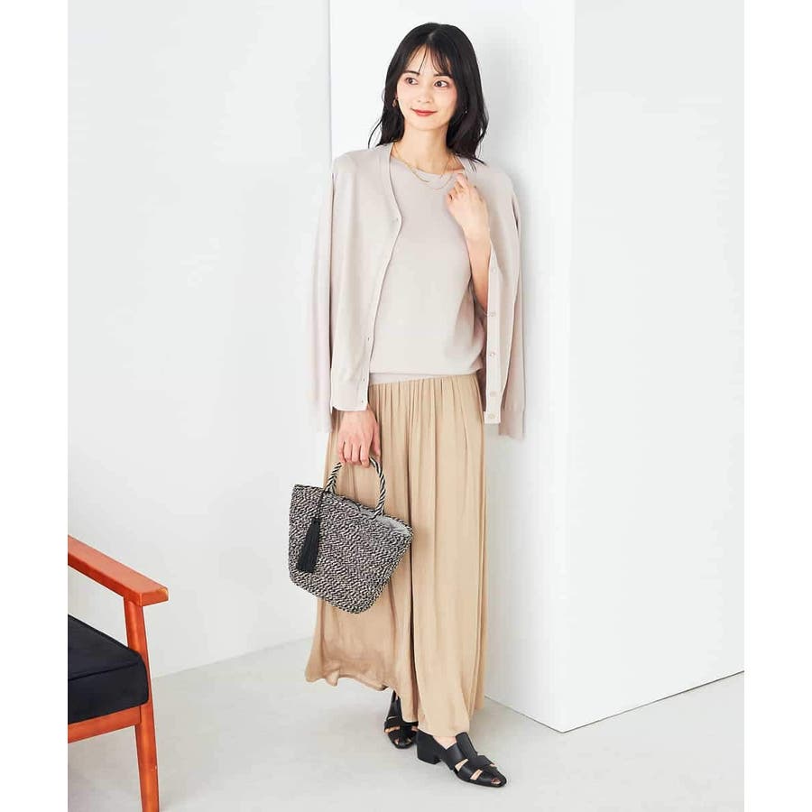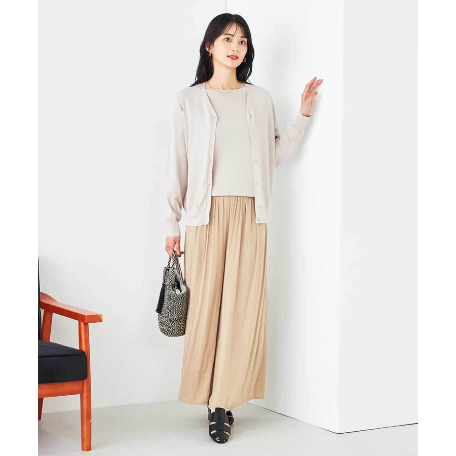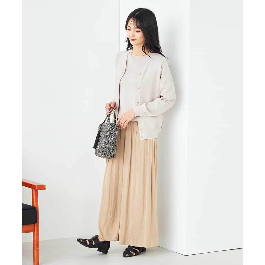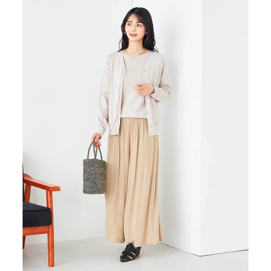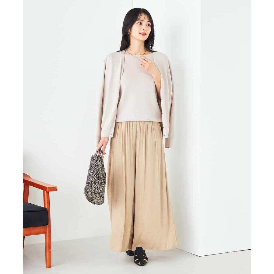 同素材ニットとのアンサンブルスタイルはきれいめ見え間違いなし。