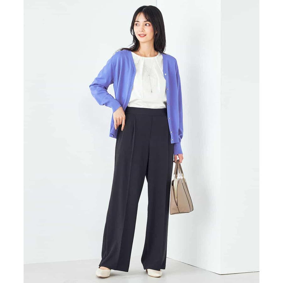 ・ほどよい開きのVネックがコーデに取り入れやすく顔回りすっきり見え