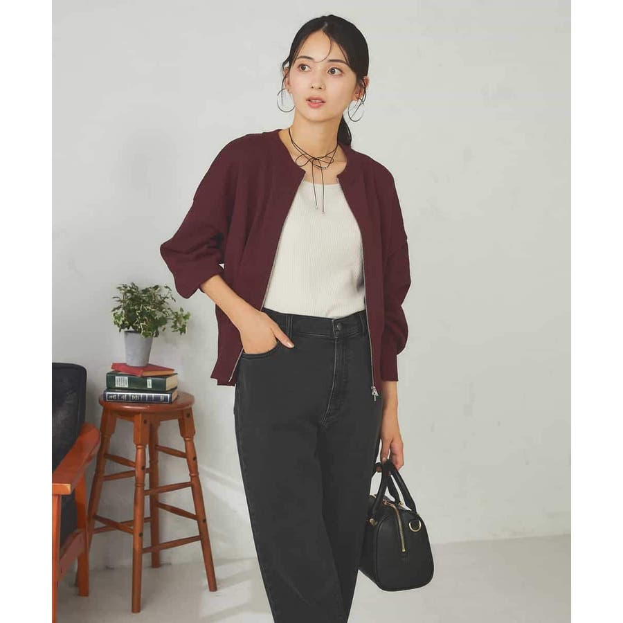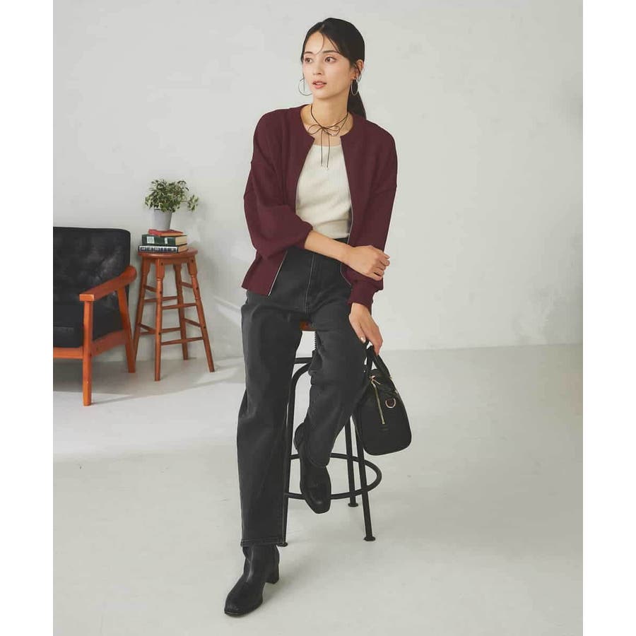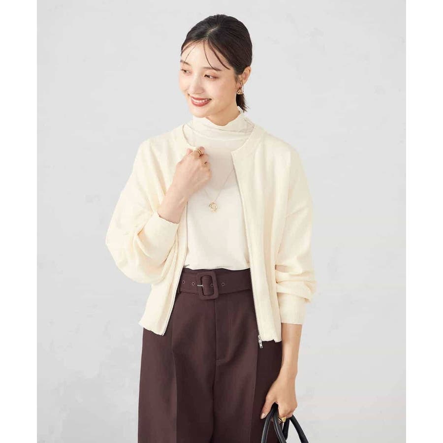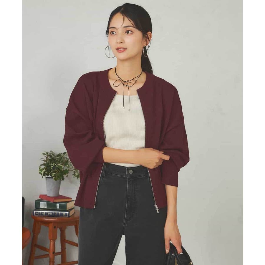 ・スタイルアップ効果あるジップが洒落見えするカーディガン