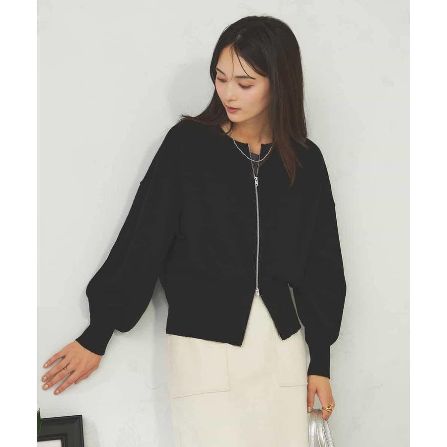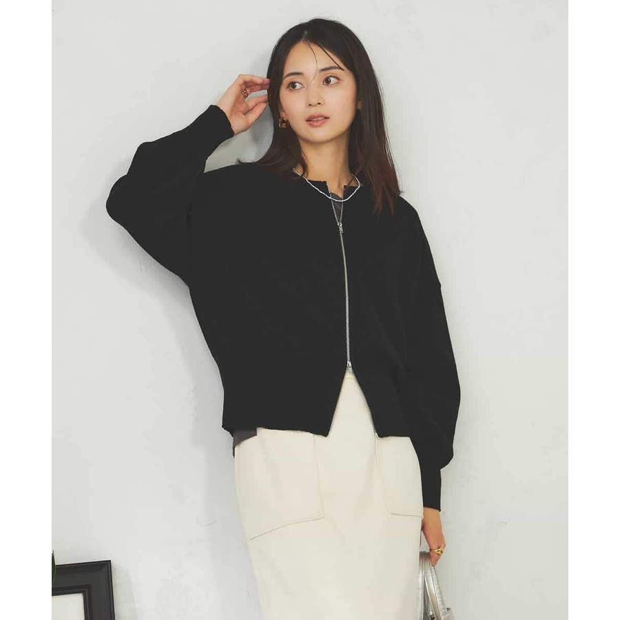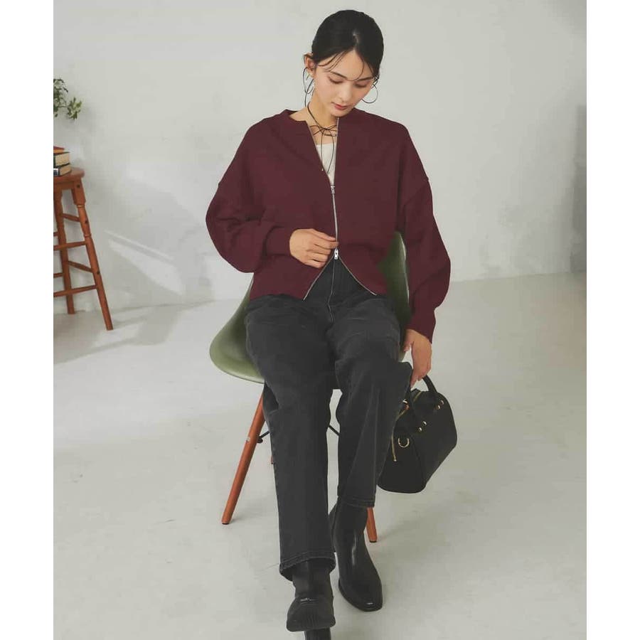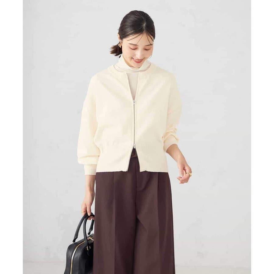 Wジップ使いでいつものカーディガンよりもトレンド感がアップ。