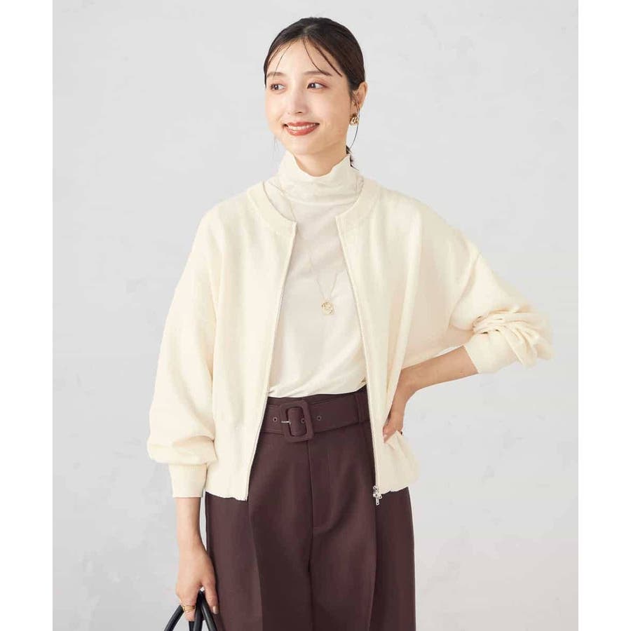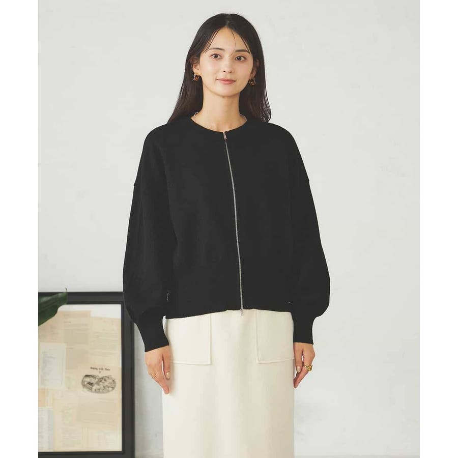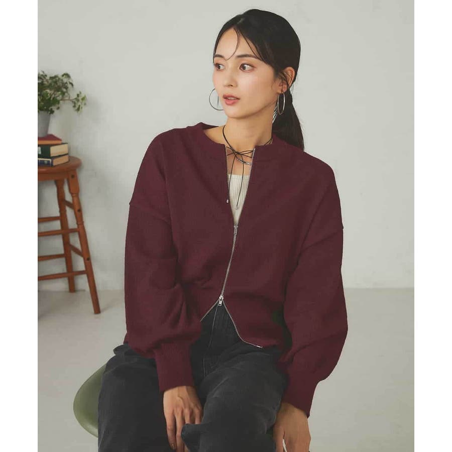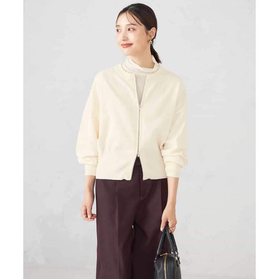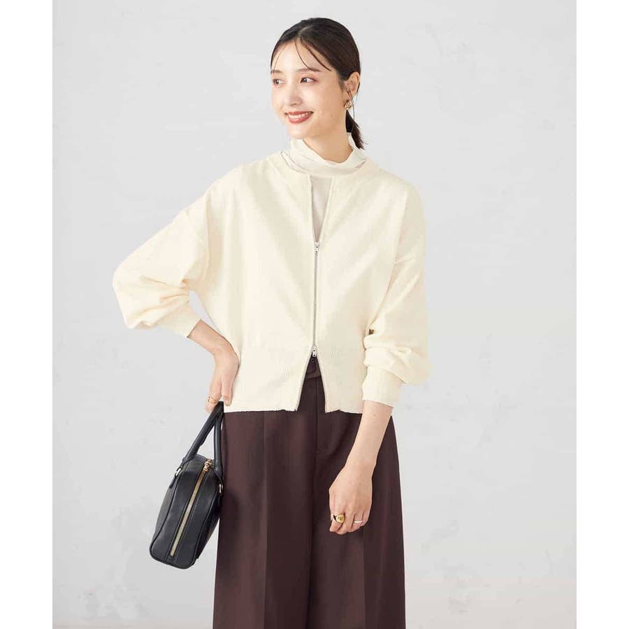 Wジップ使いでいつものカーディガンよりもトレンド感がアップ。
