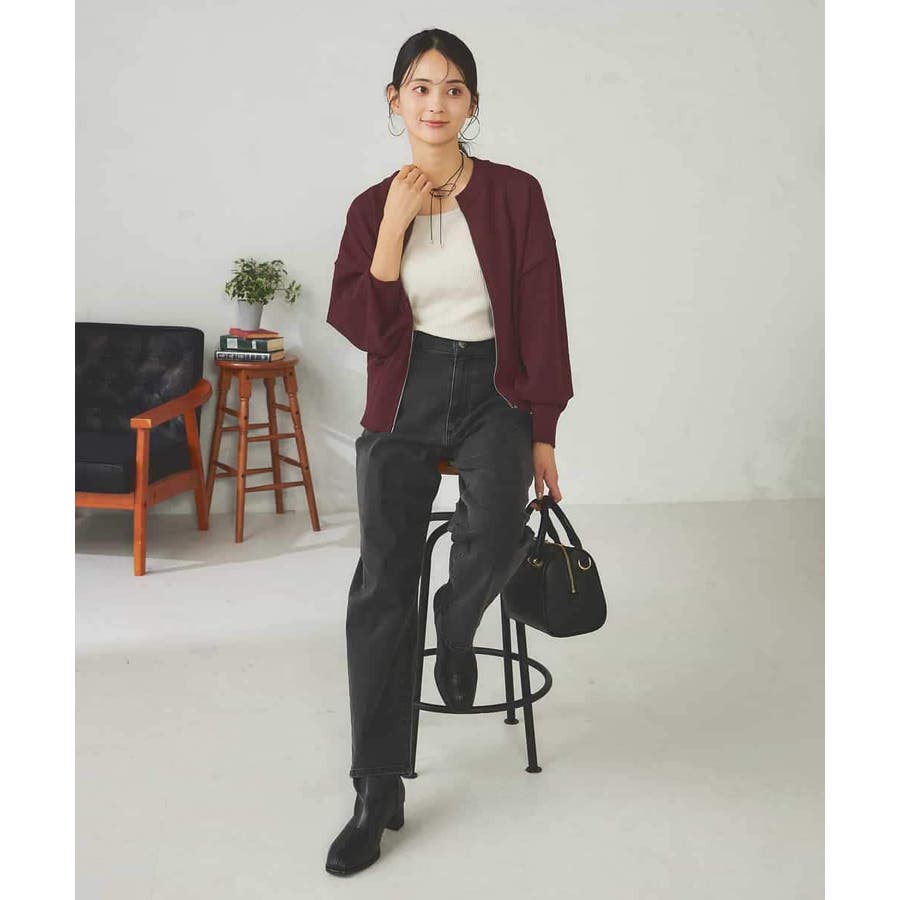 ・逆開ジップの裾リブ部分を開けて抜け感を出した着こなしもおすすめ