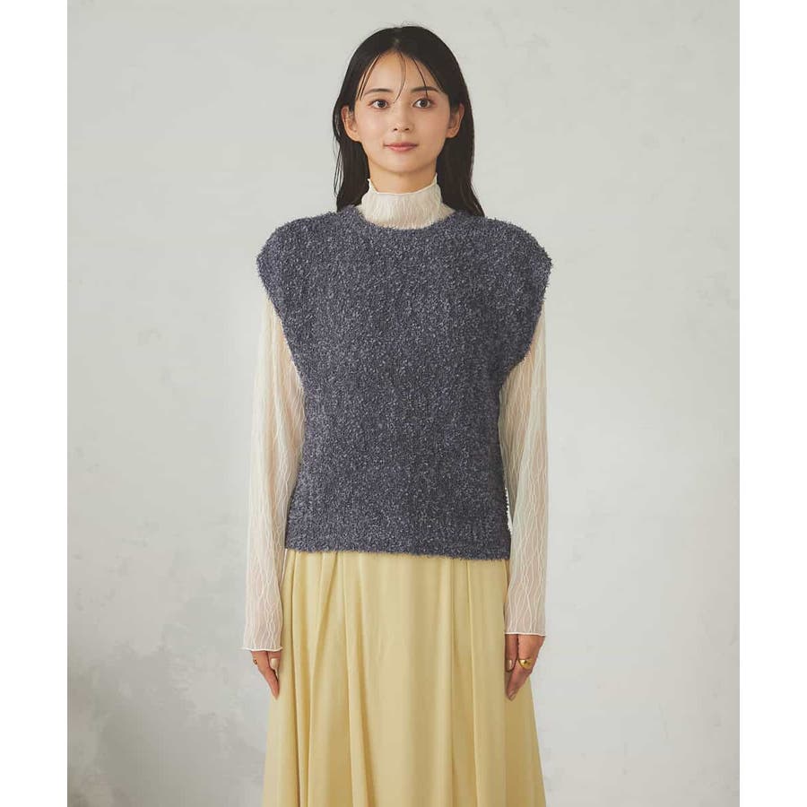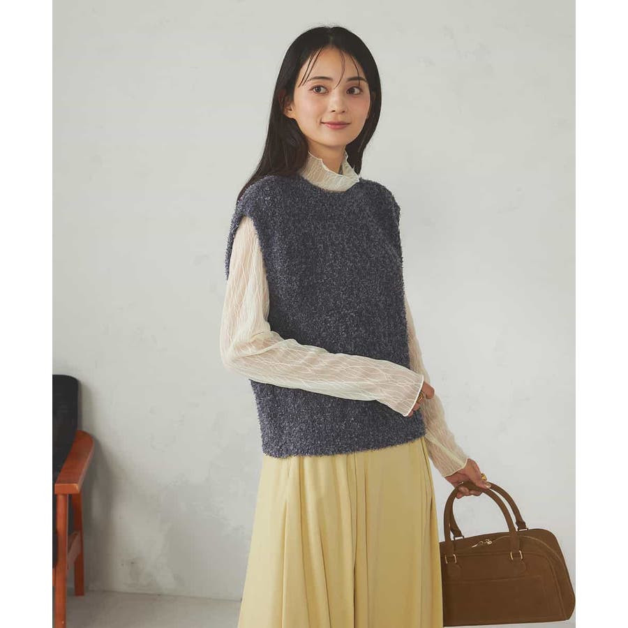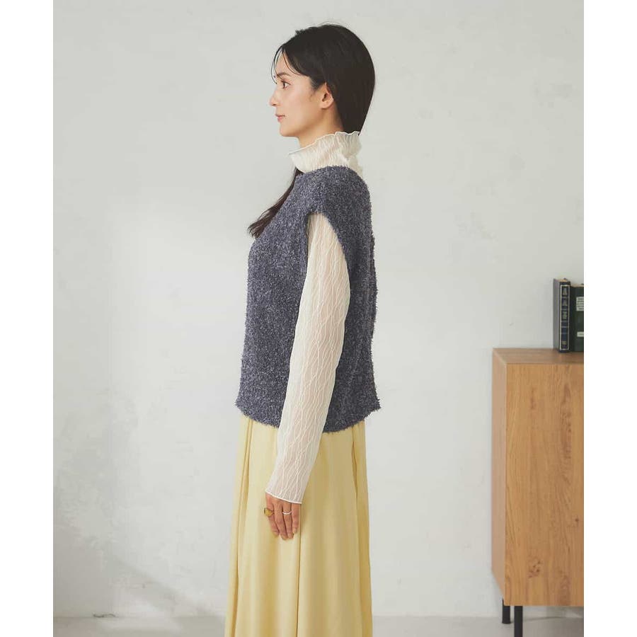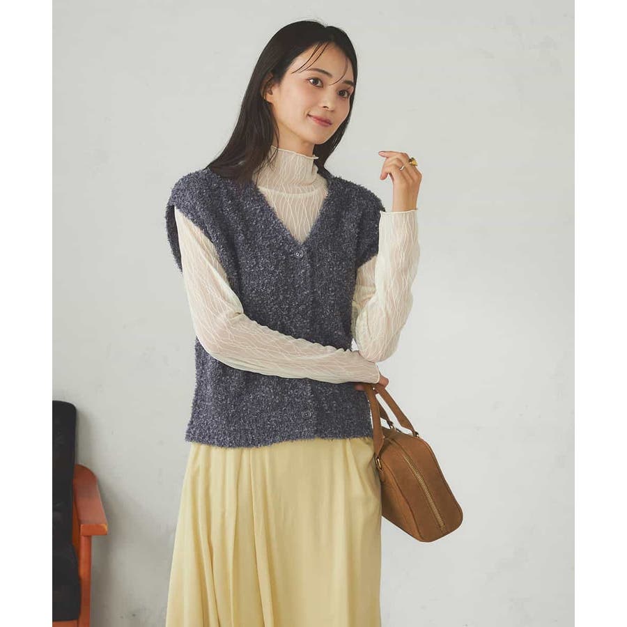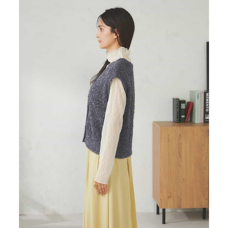 秋からはシアーハイネックなどインナー着用でベストとして長い期間着こなしを楽しめます