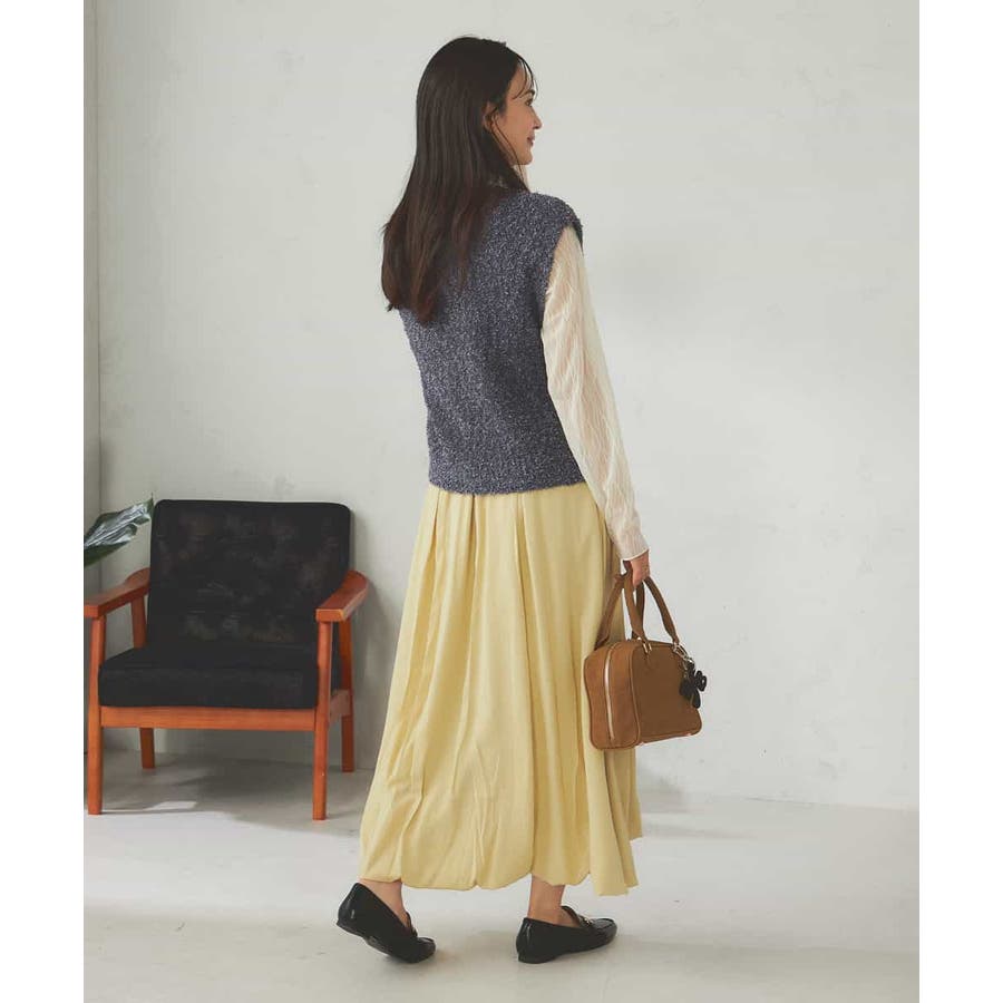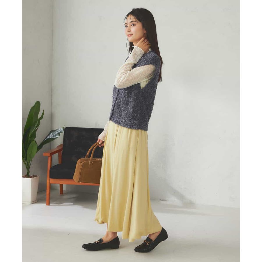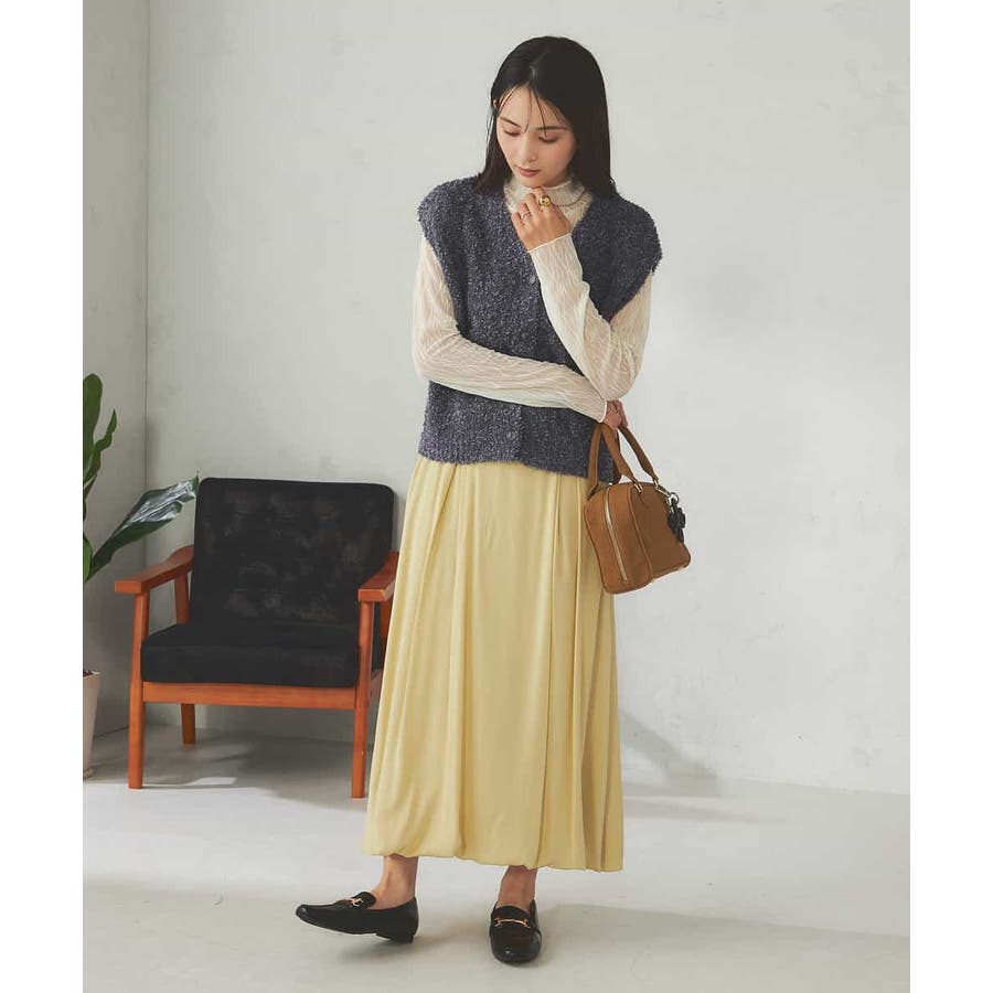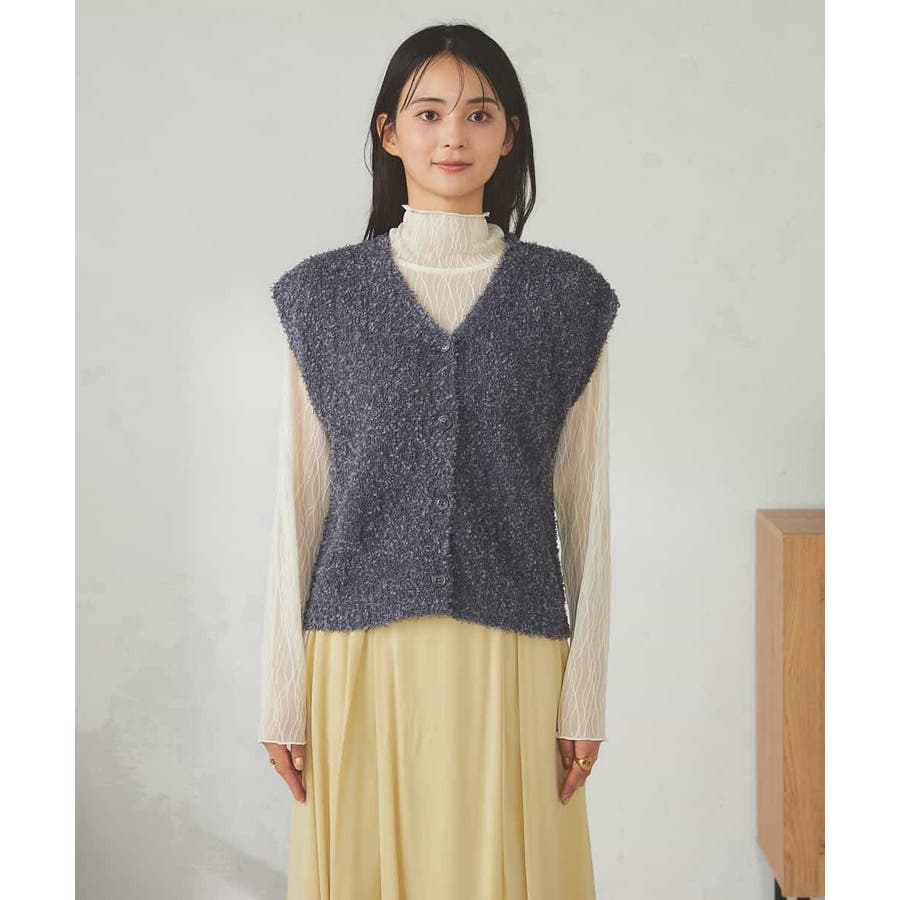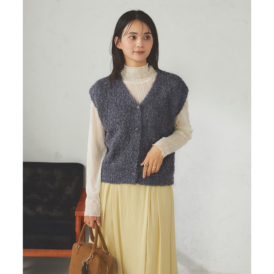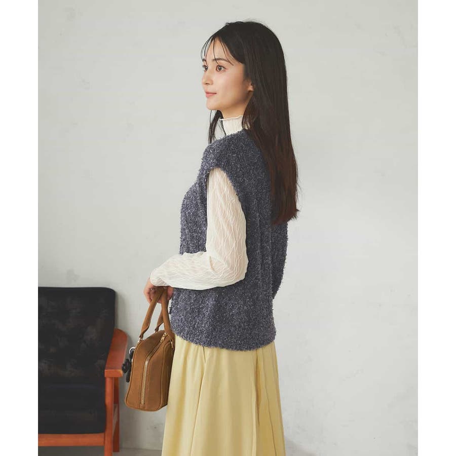 秋からはシアーハイネックなどインナー着用でベストとして長い期間着こなしを楽しめます