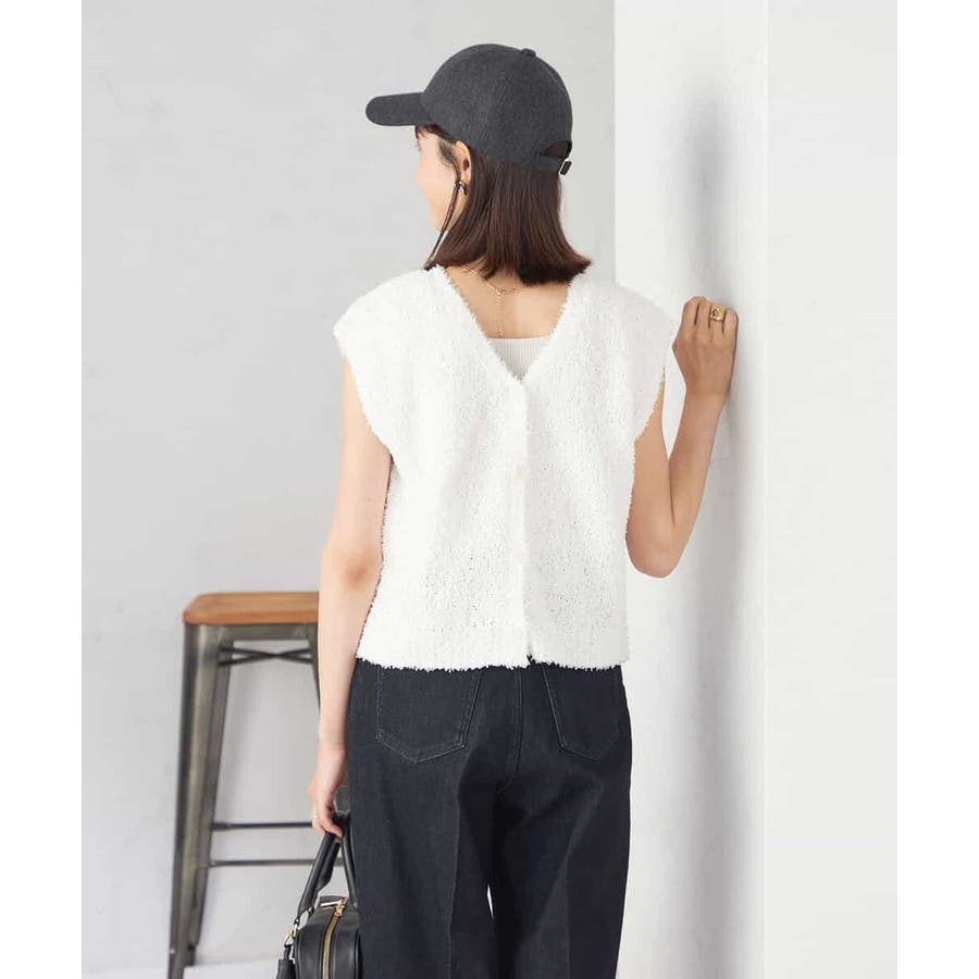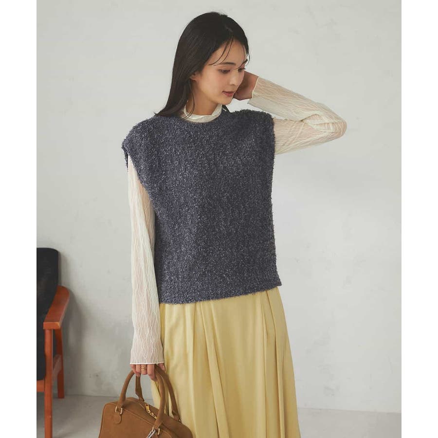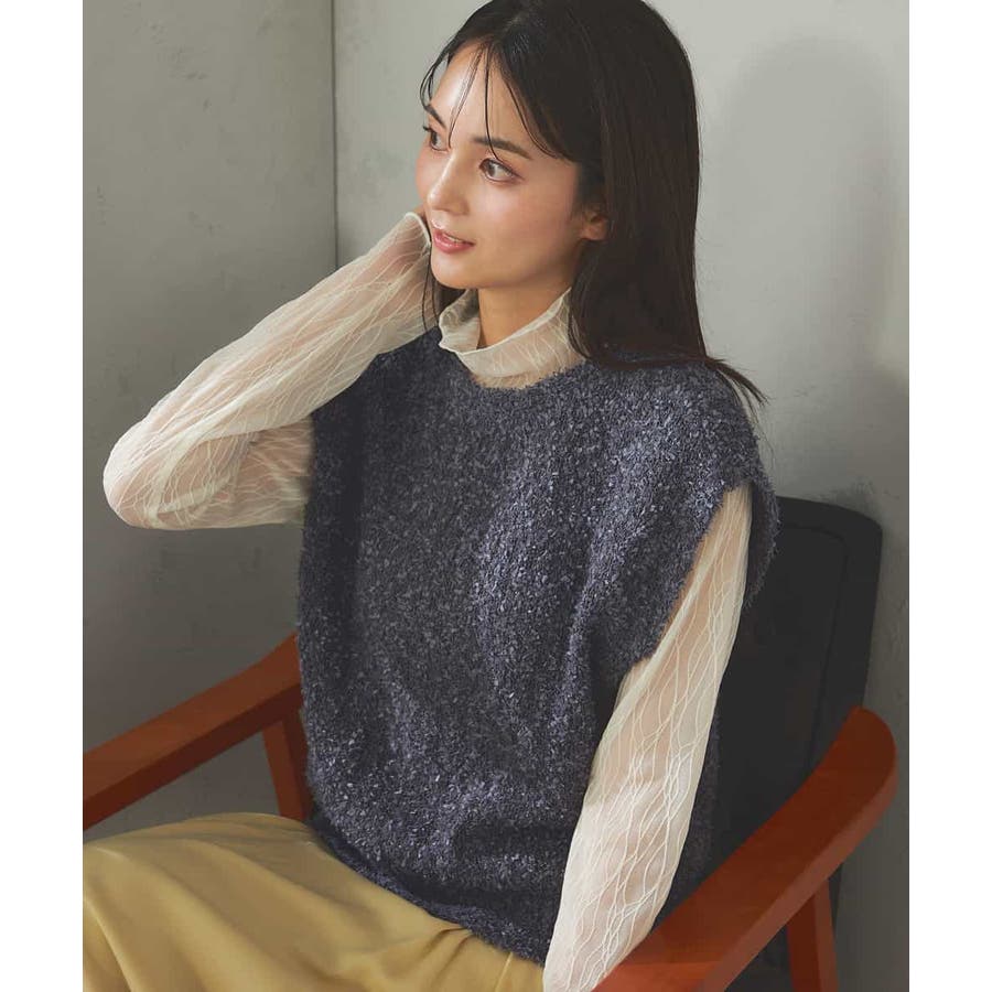 ・トレンドの意匠感のあるリボンヤーンを使用したニットベスト