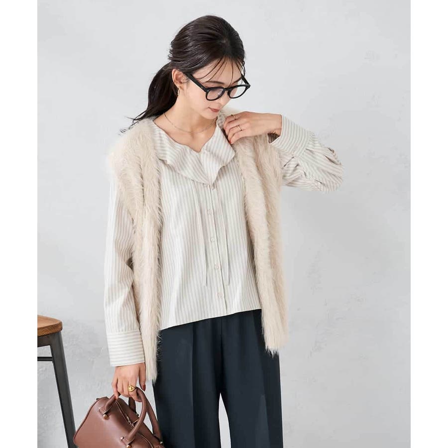 フリル襟のブラウスなど、女性らしいアイテムで甘さをプラスするのもおすすめ!