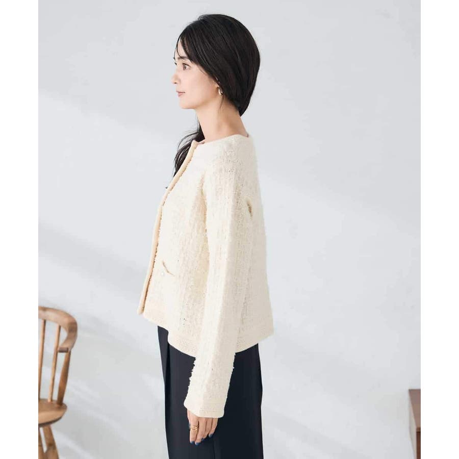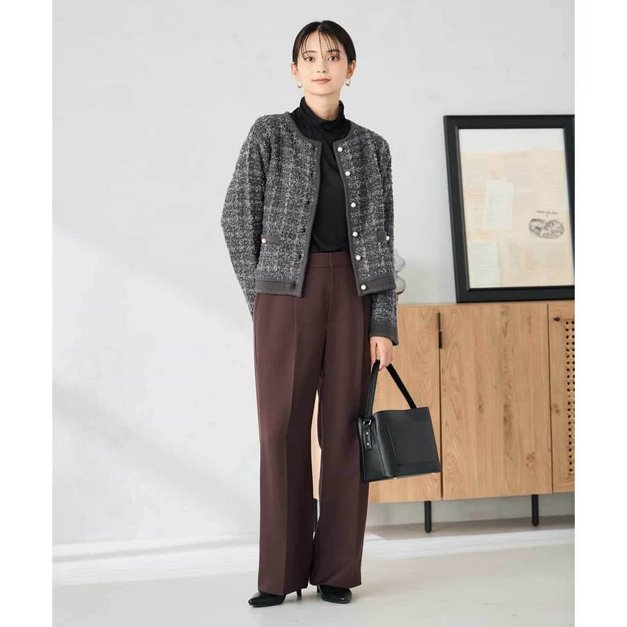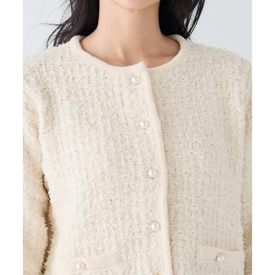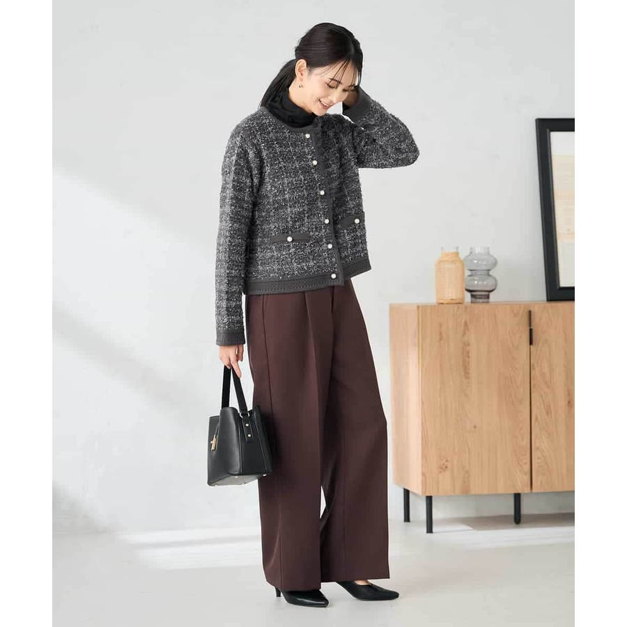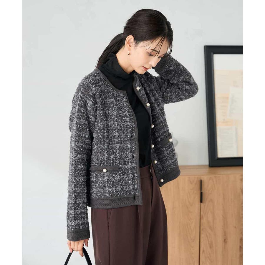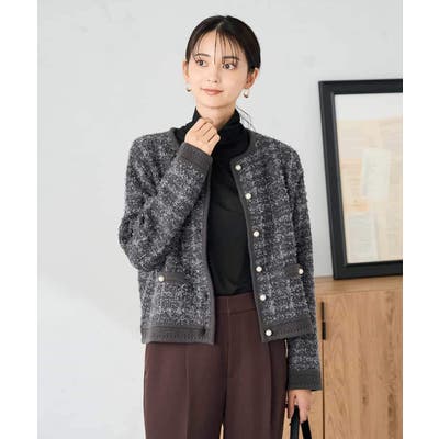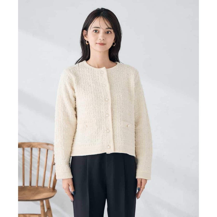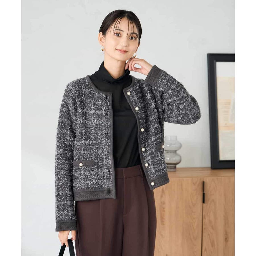 ・時季に丁度良いトレンドのニットツイード編カーディガン