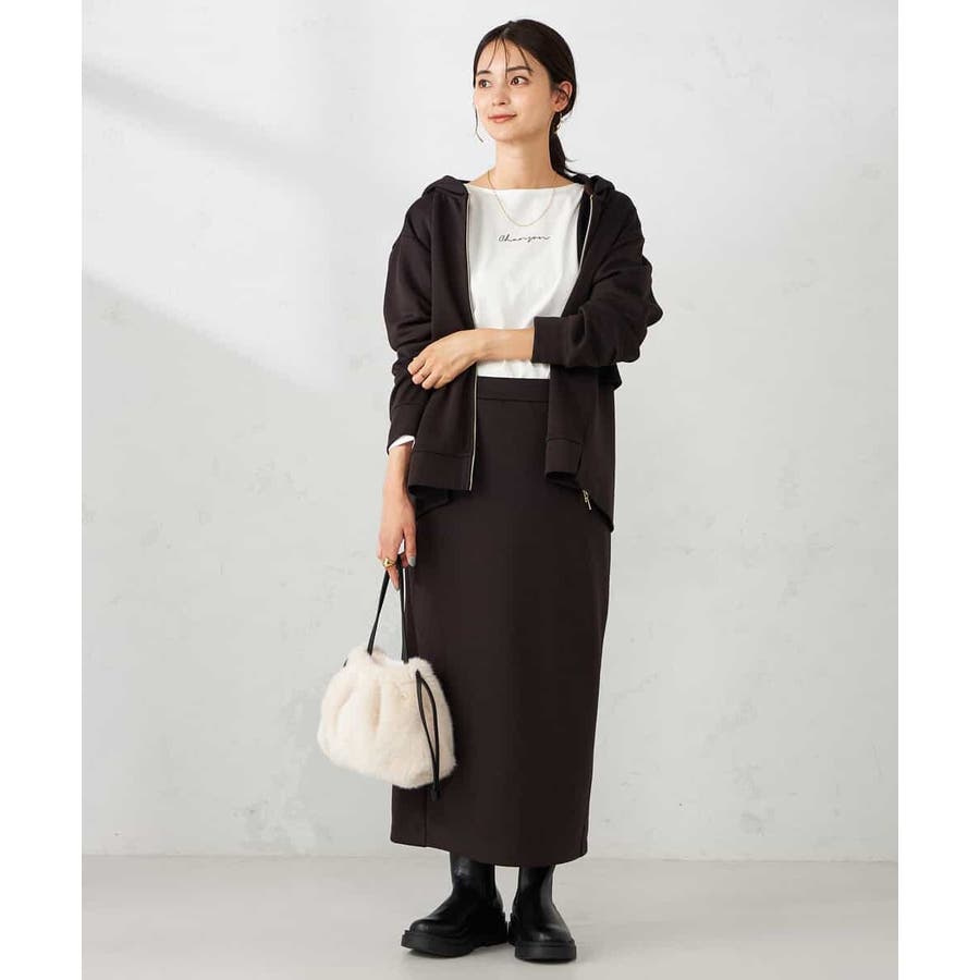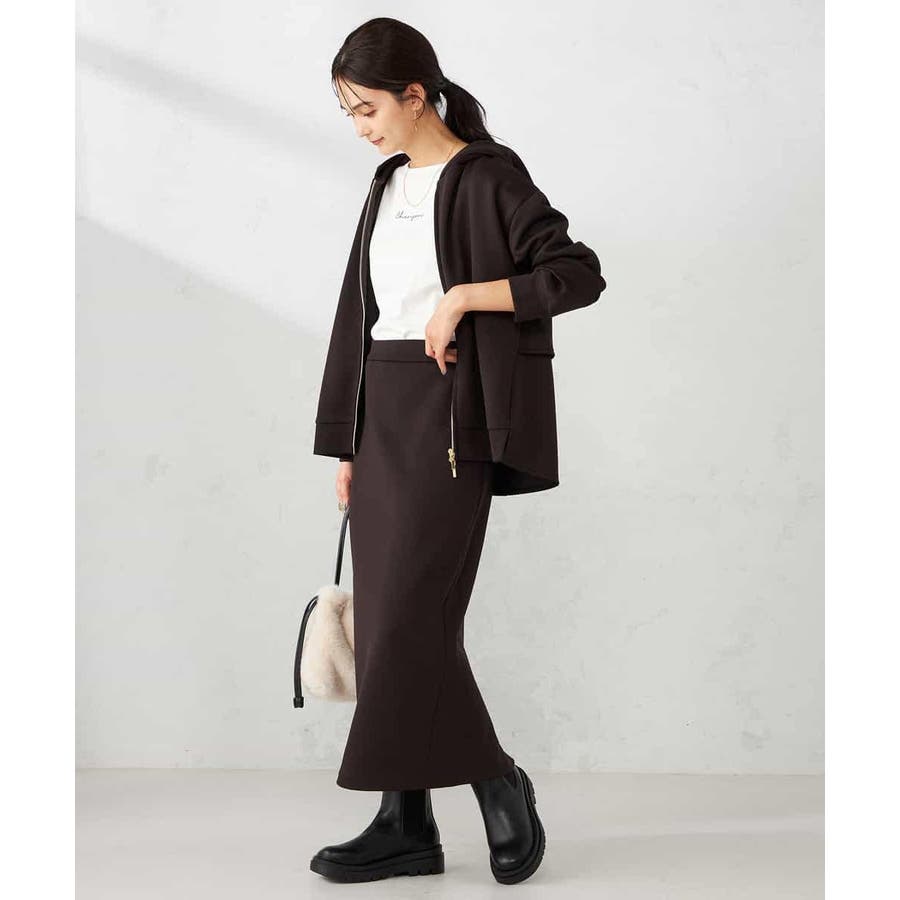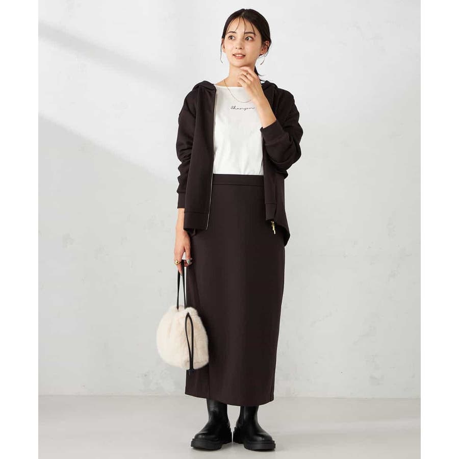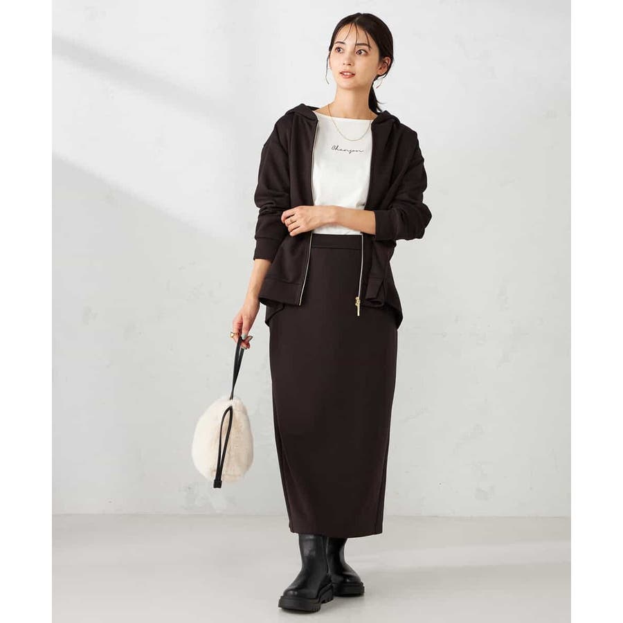 同素材スカートとのセットアップ着用も大人カジュアルに仕上がります。