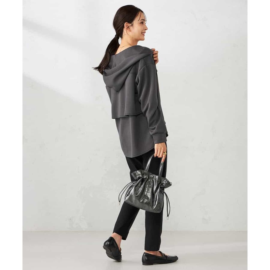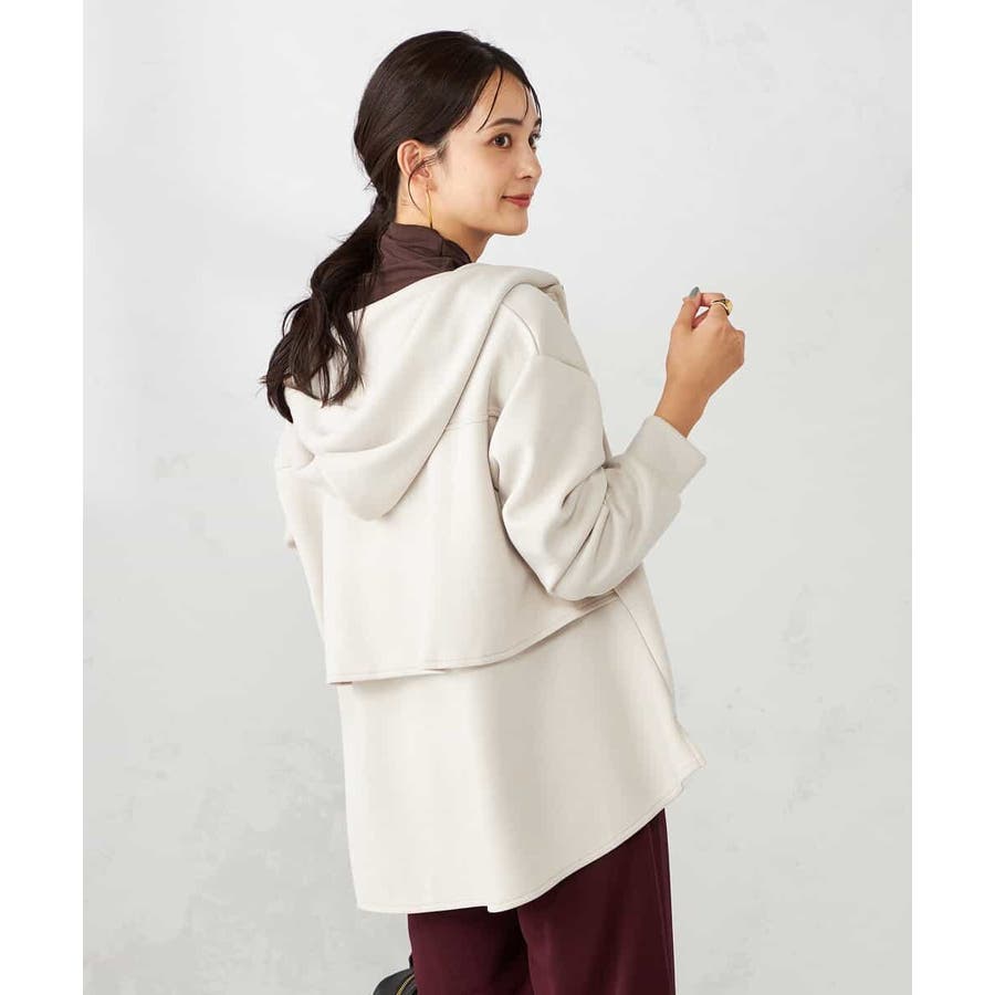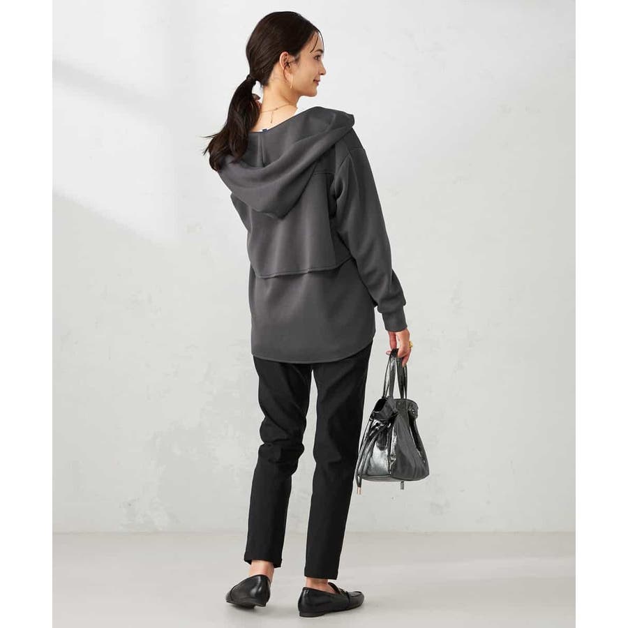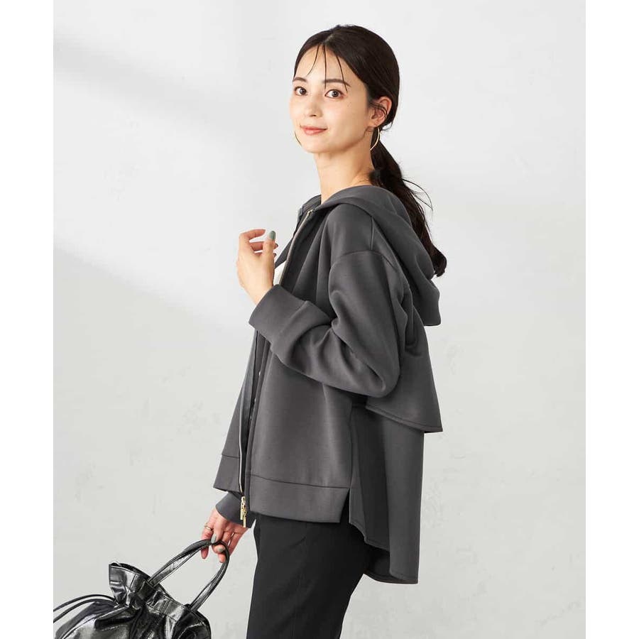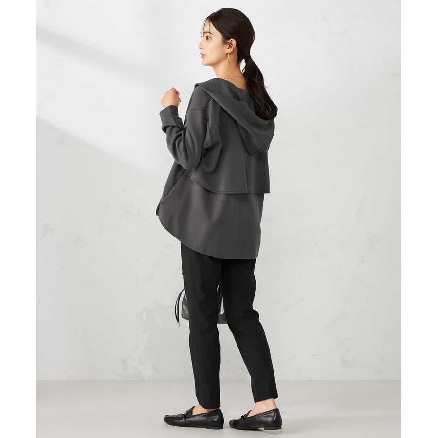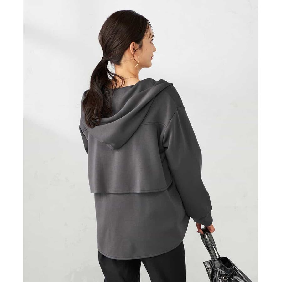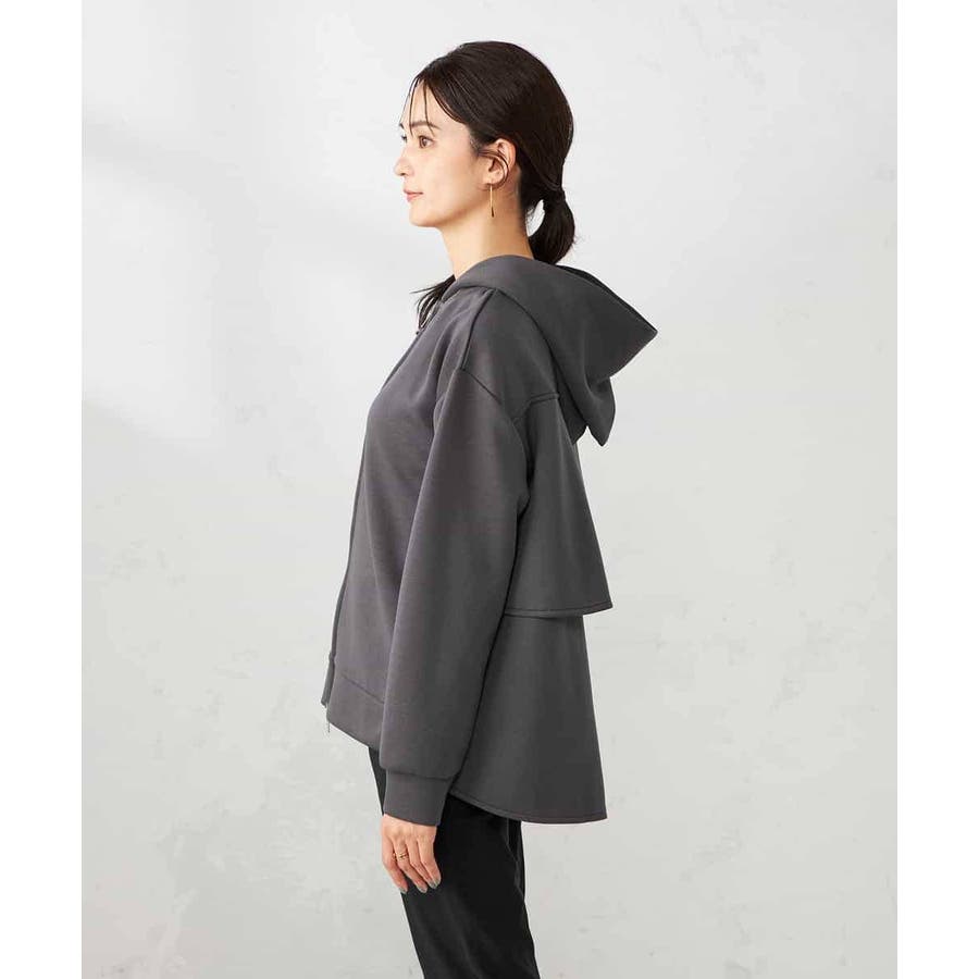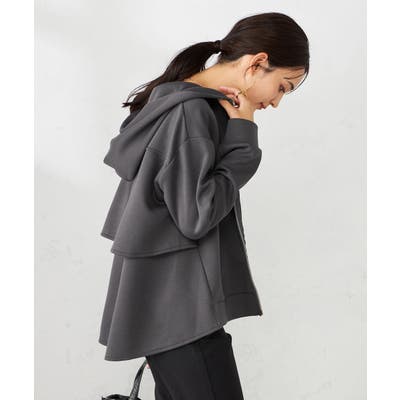 ・カジュアルな印象のパーカーもバックフリルデザインが合わさることで