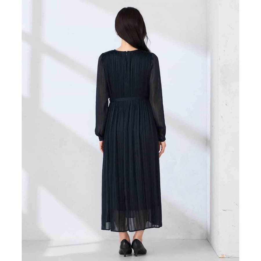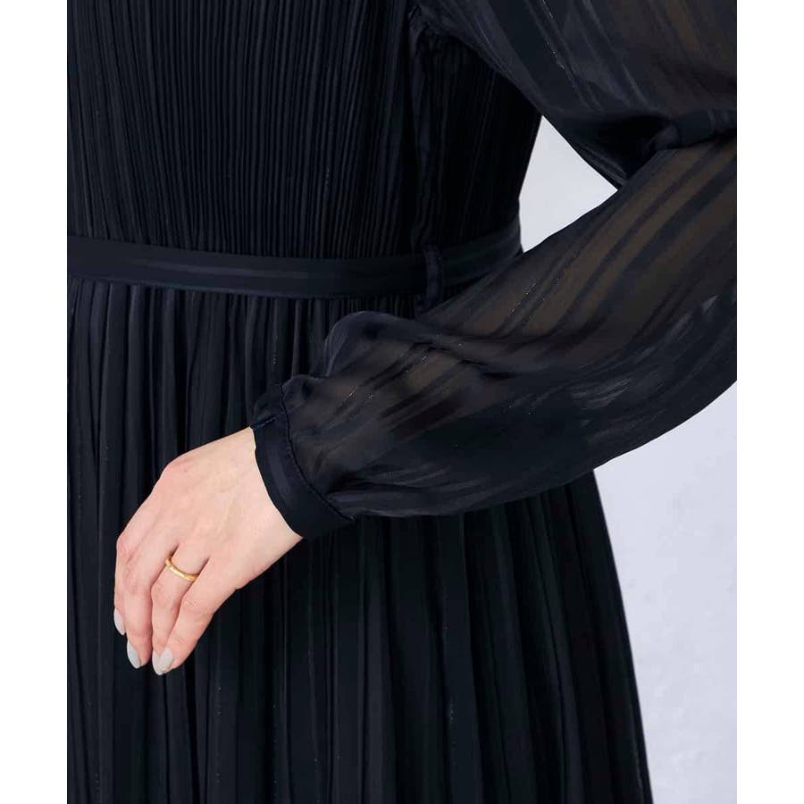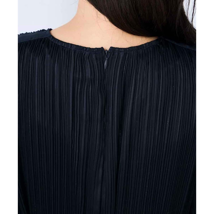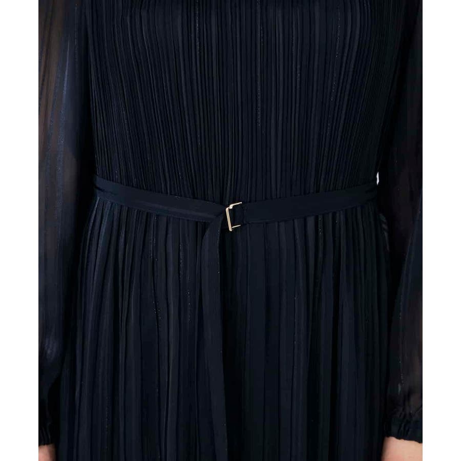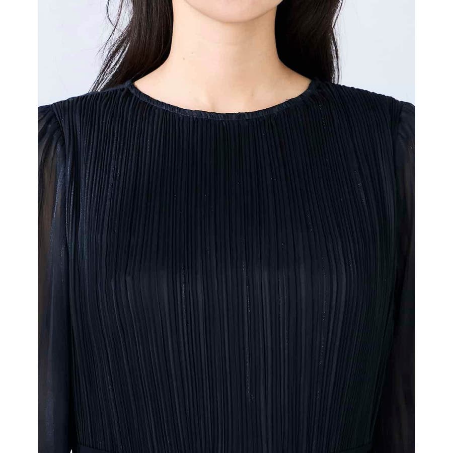 全体にプリーツを施し、ラメ糸を使用した華やかなワンピースは、