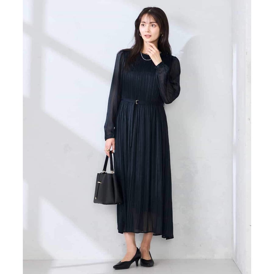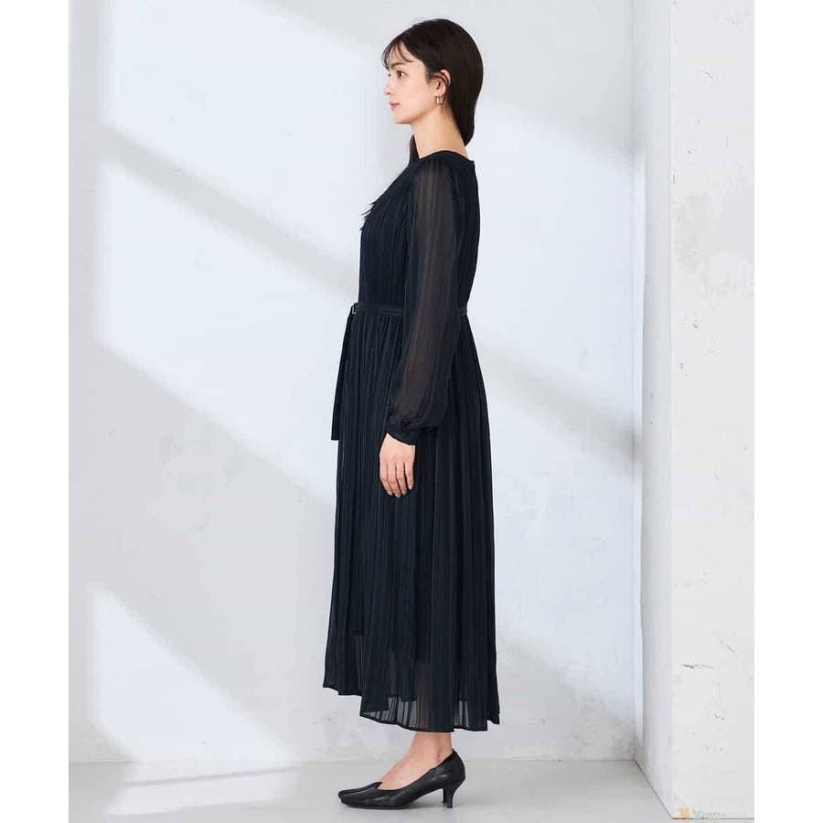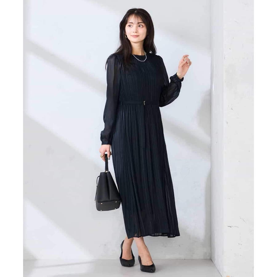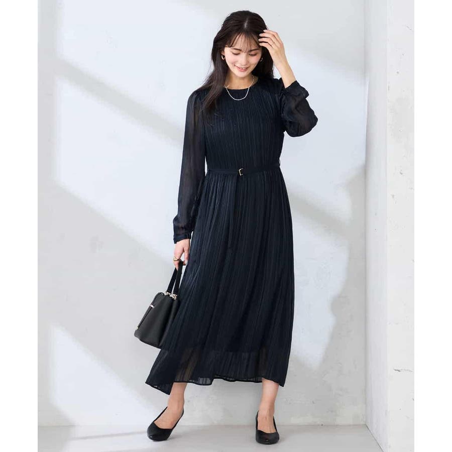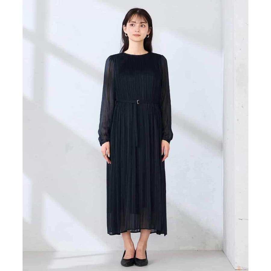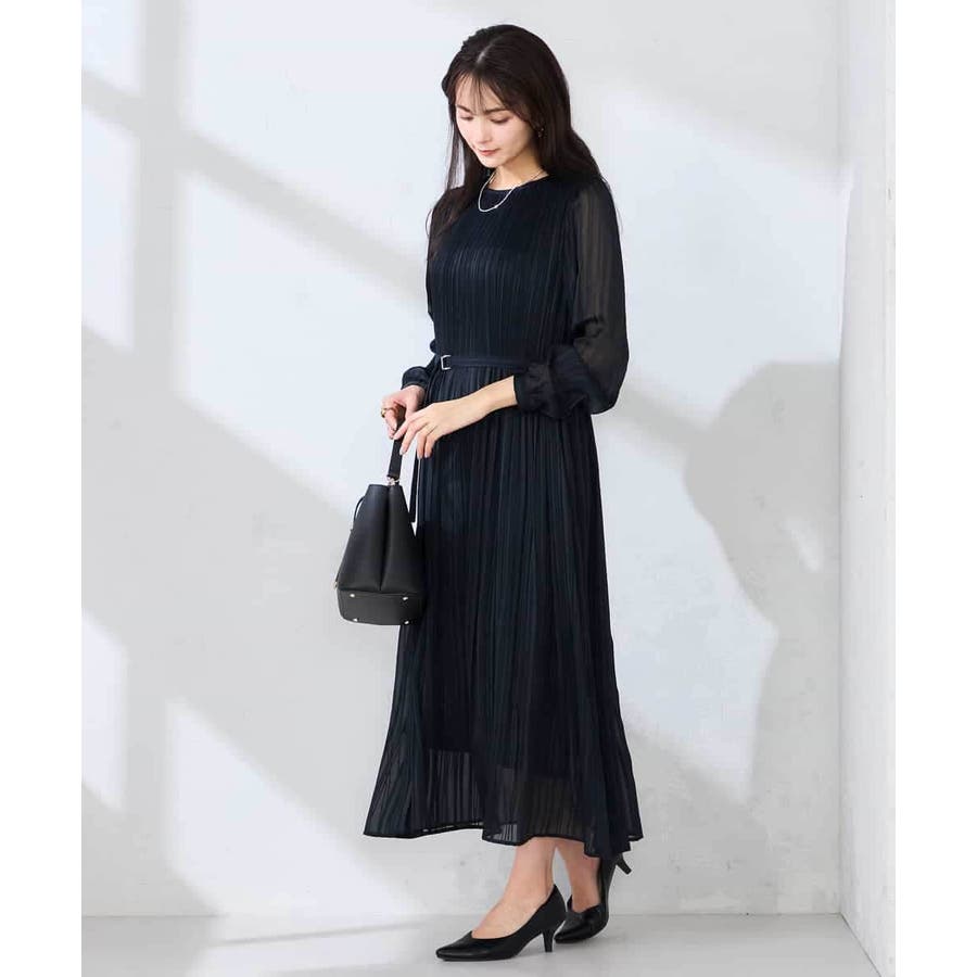 全体にプリーツを施し、ラメ糸を使用した華やかなワンピースは、
