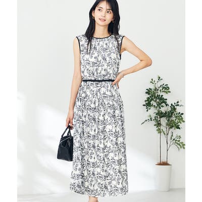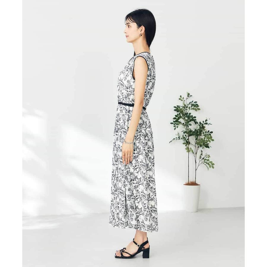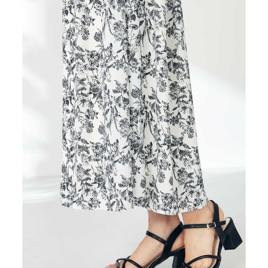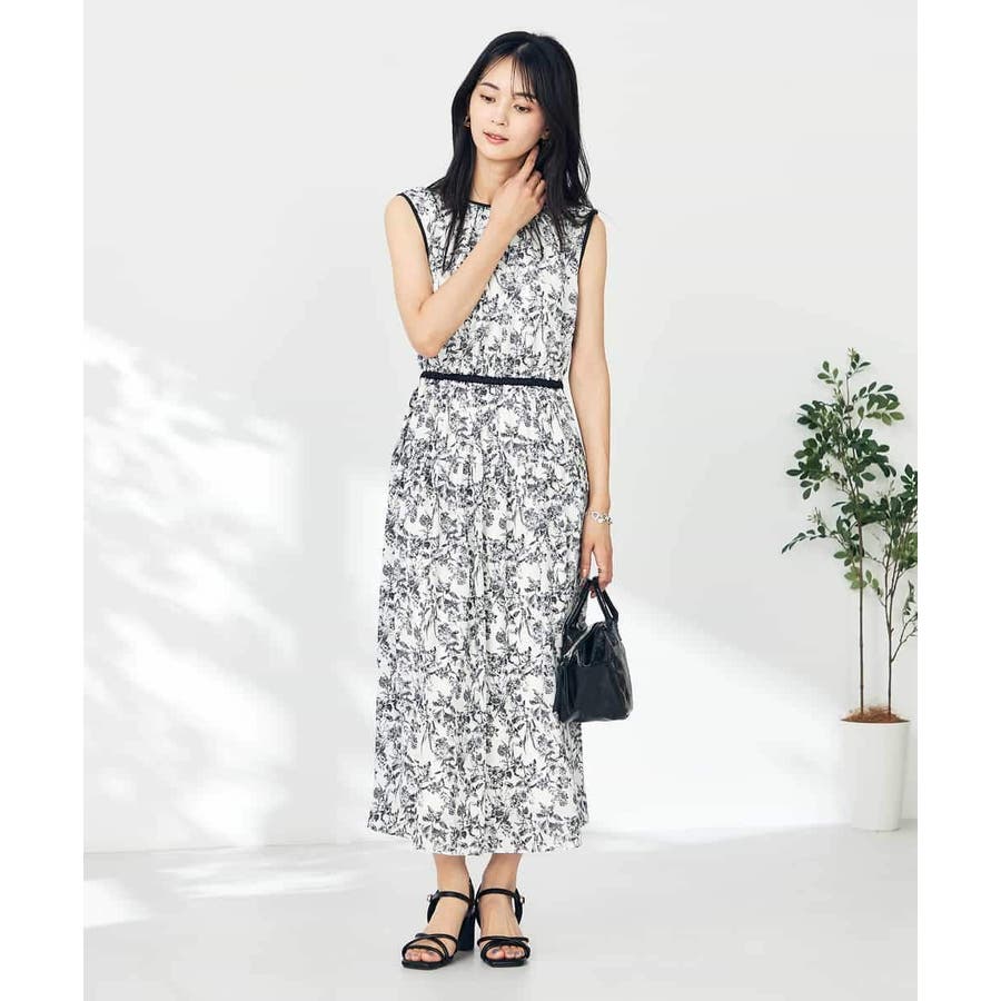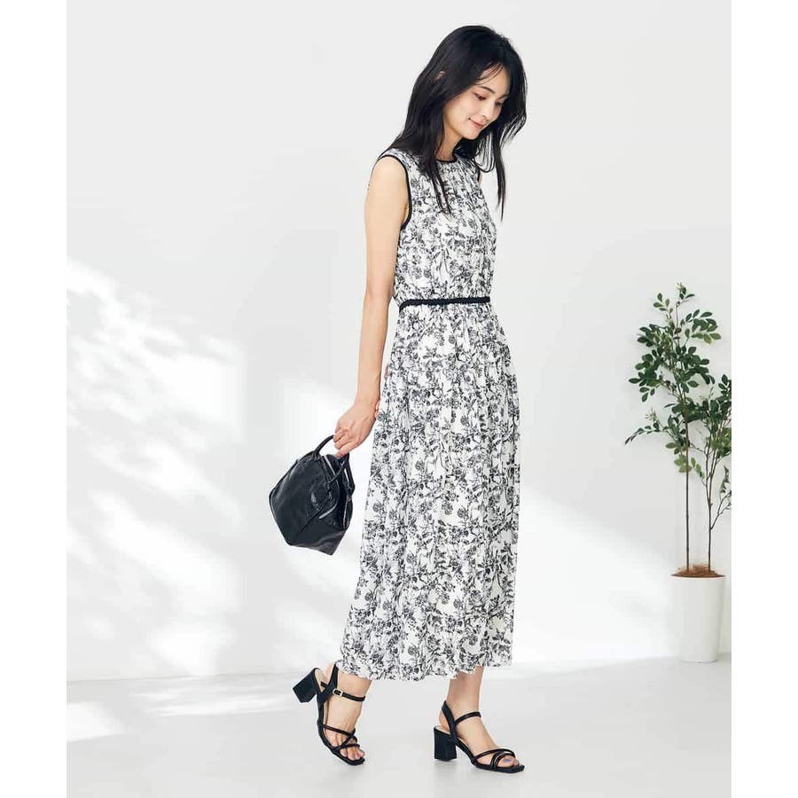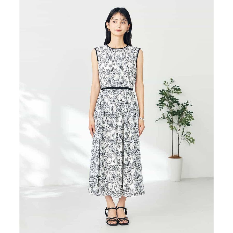 ・シンプルなブラックとモノトーンの花柄が上品なワンピース