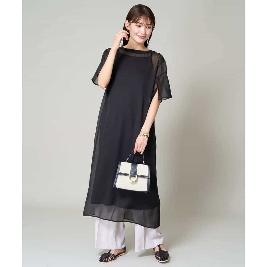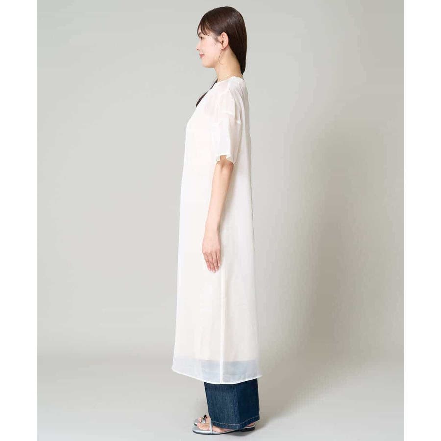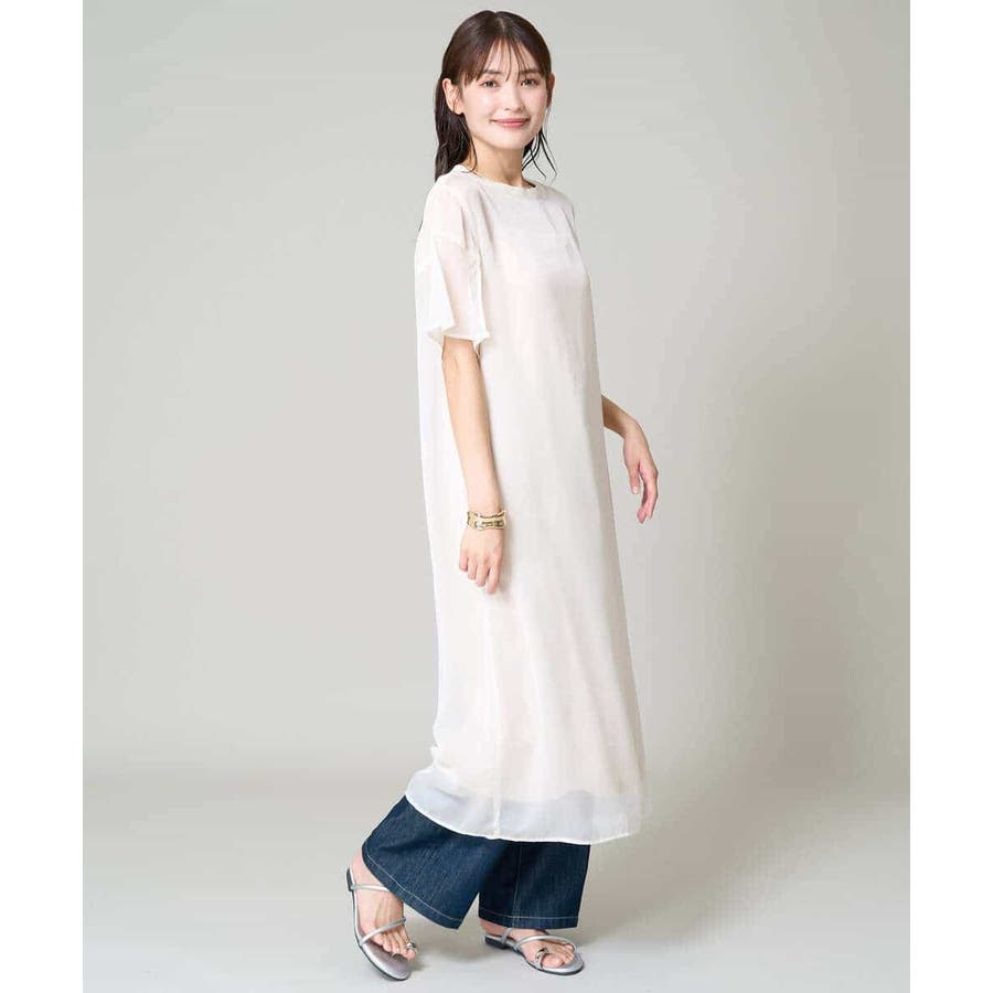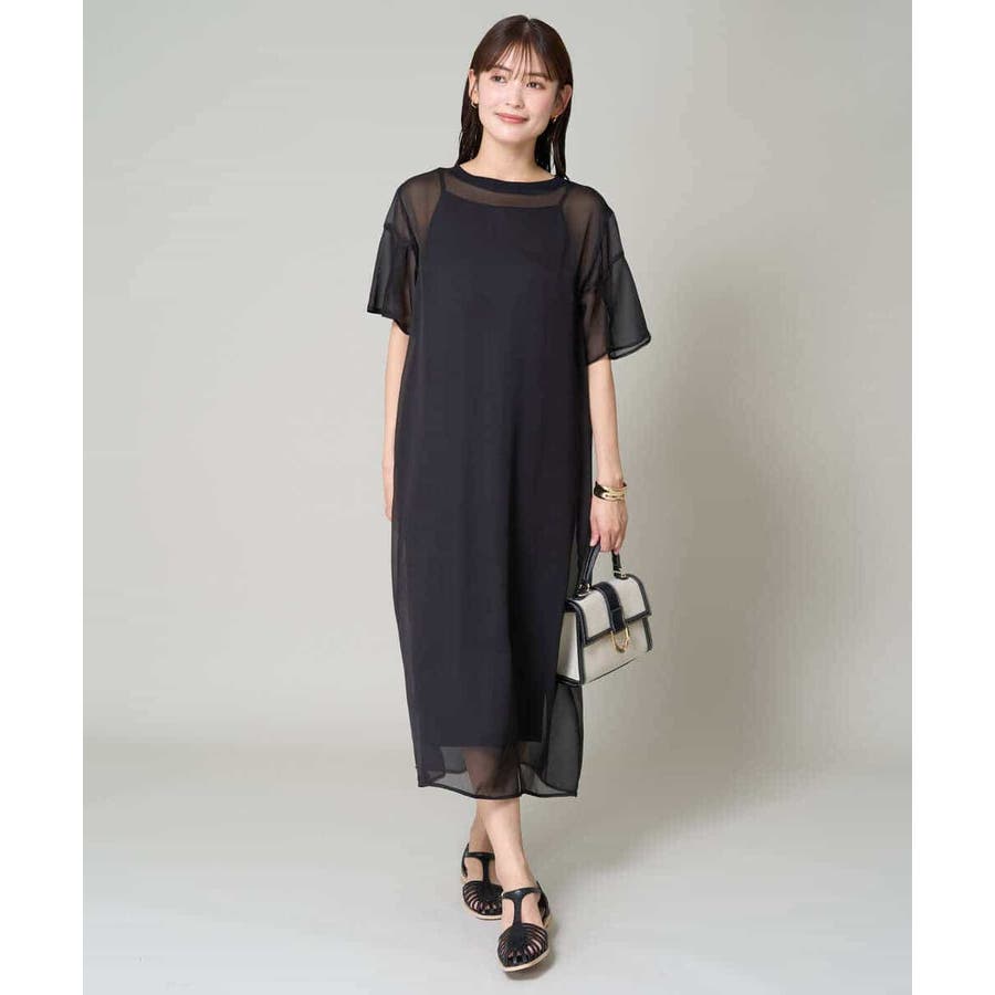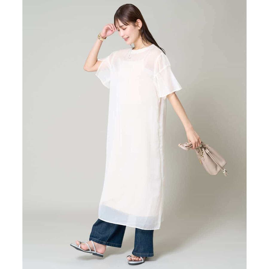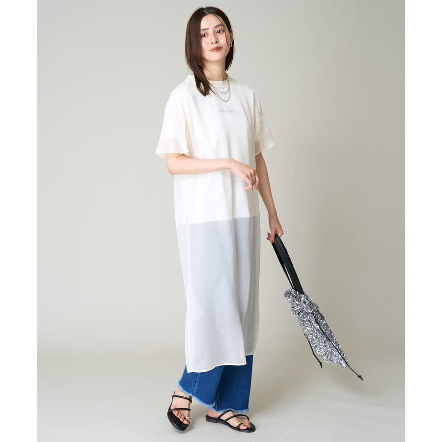 ・ボックス型シルエットのシアーワンピース