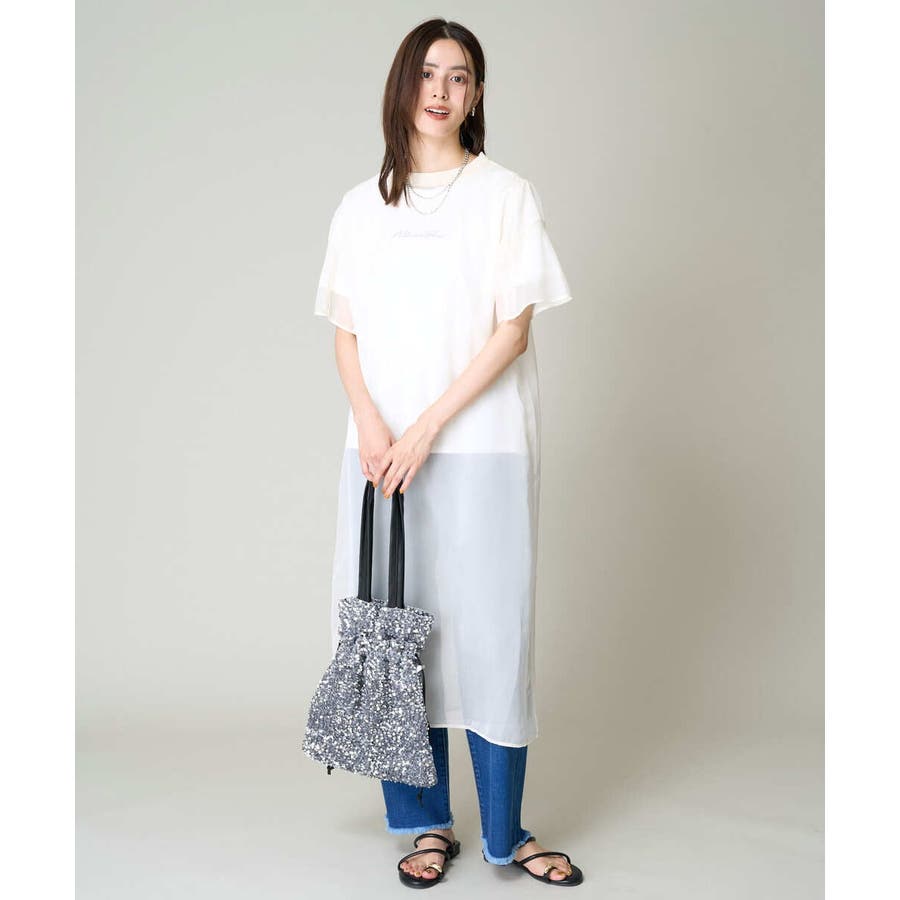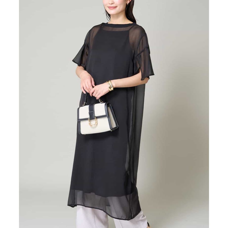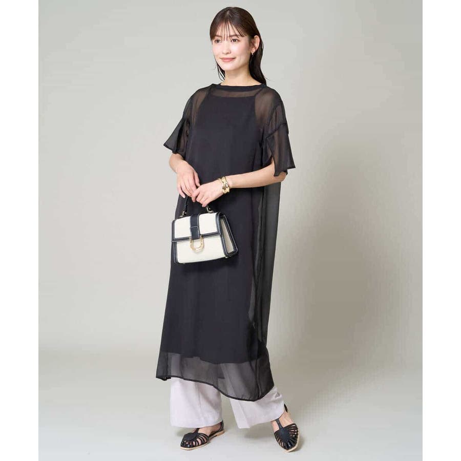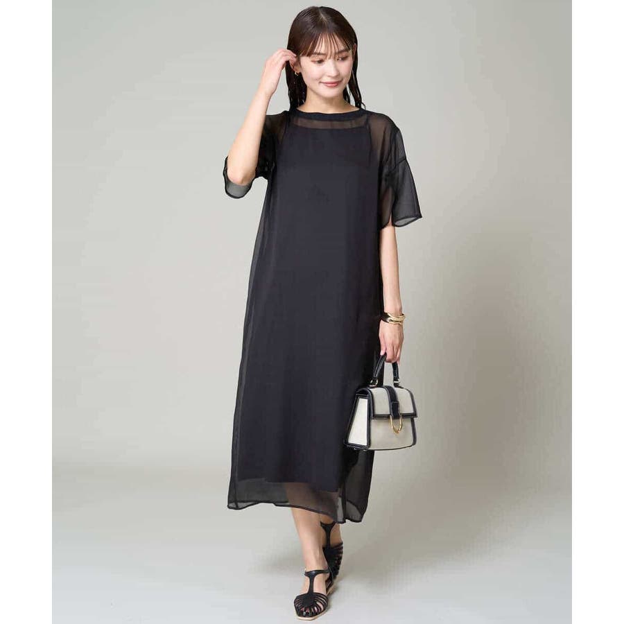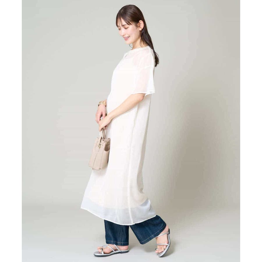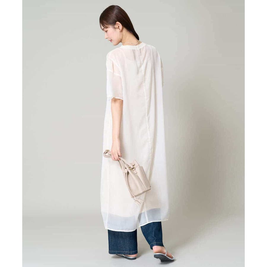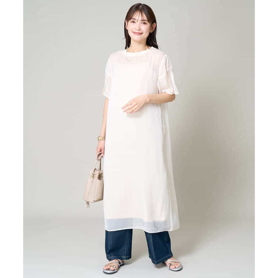 ・ボックス型シルエットのシアーワンピース