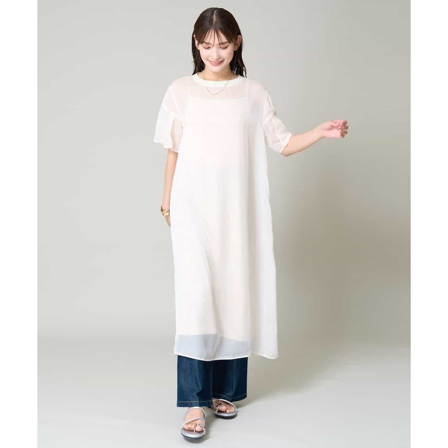 【洗濯機で洗える】袖スリットシアーワンピース