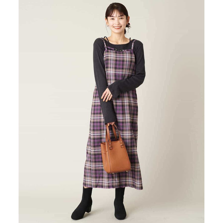 ・秋らしいチェックが新鮮で大人な印象のワンピース