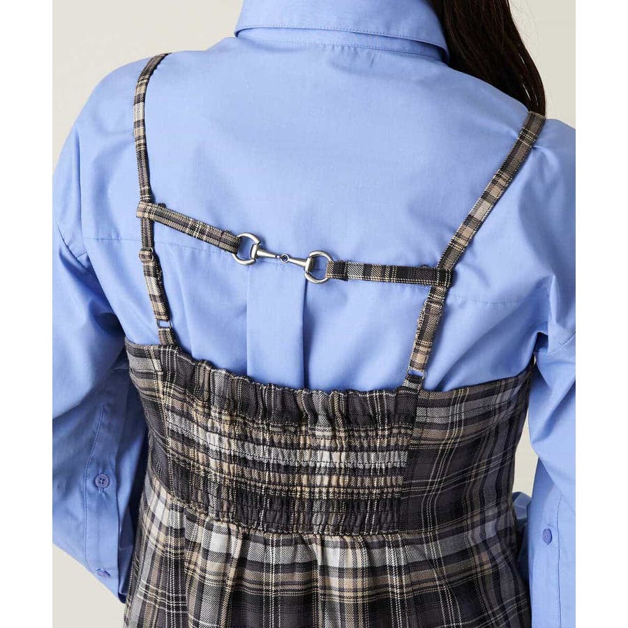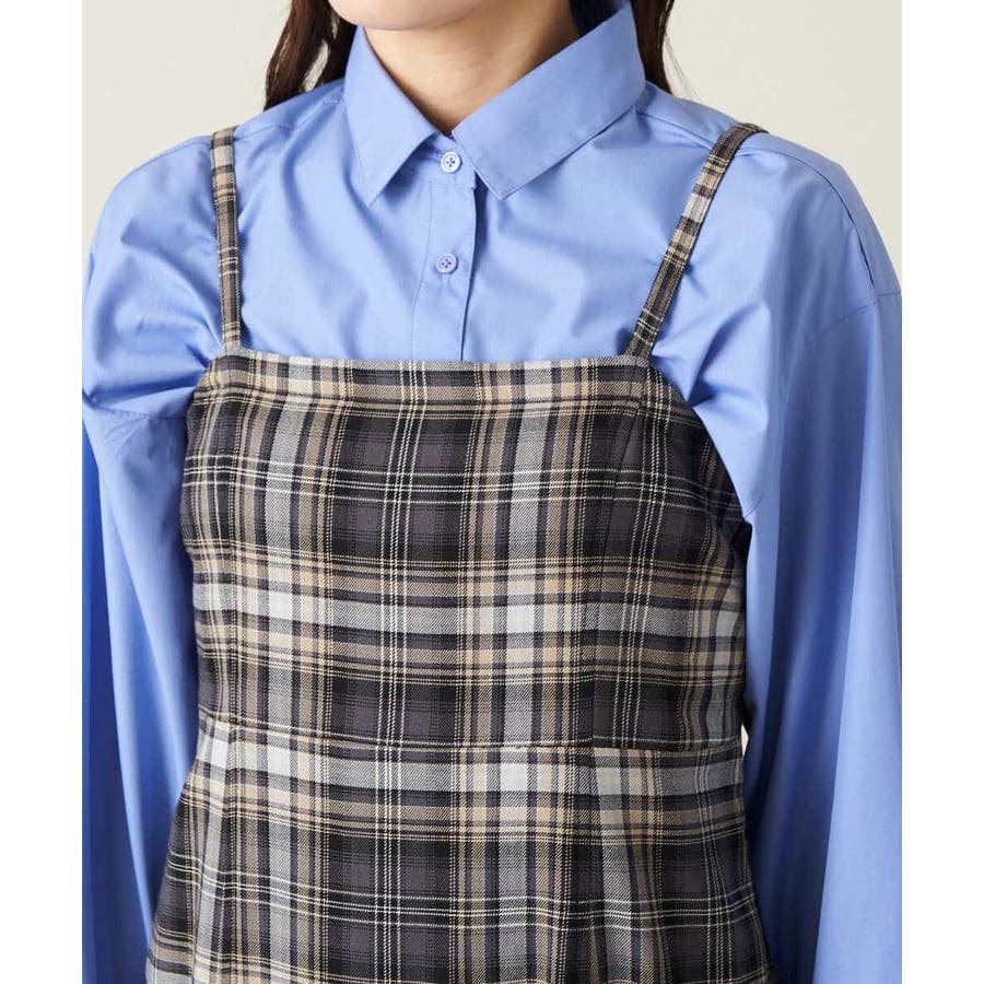 トップスを上にレイヤードすると雰囲気の変わる着こなしを楽しめます。