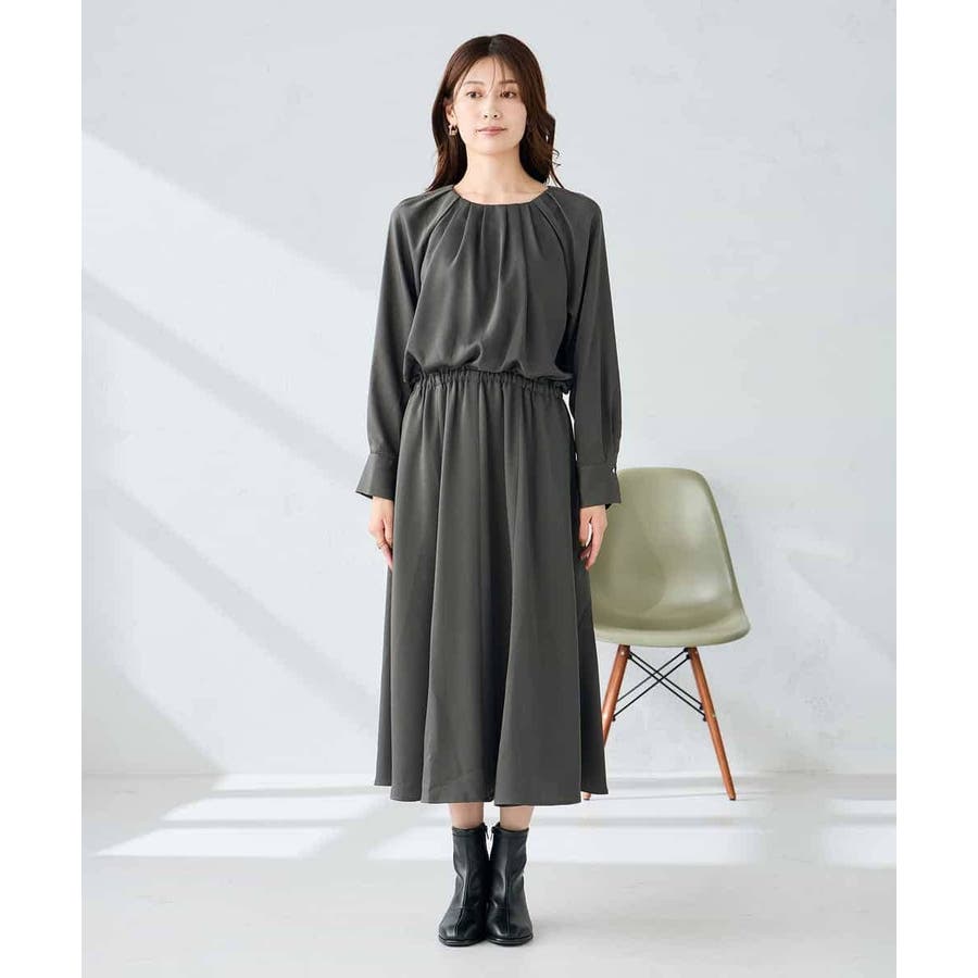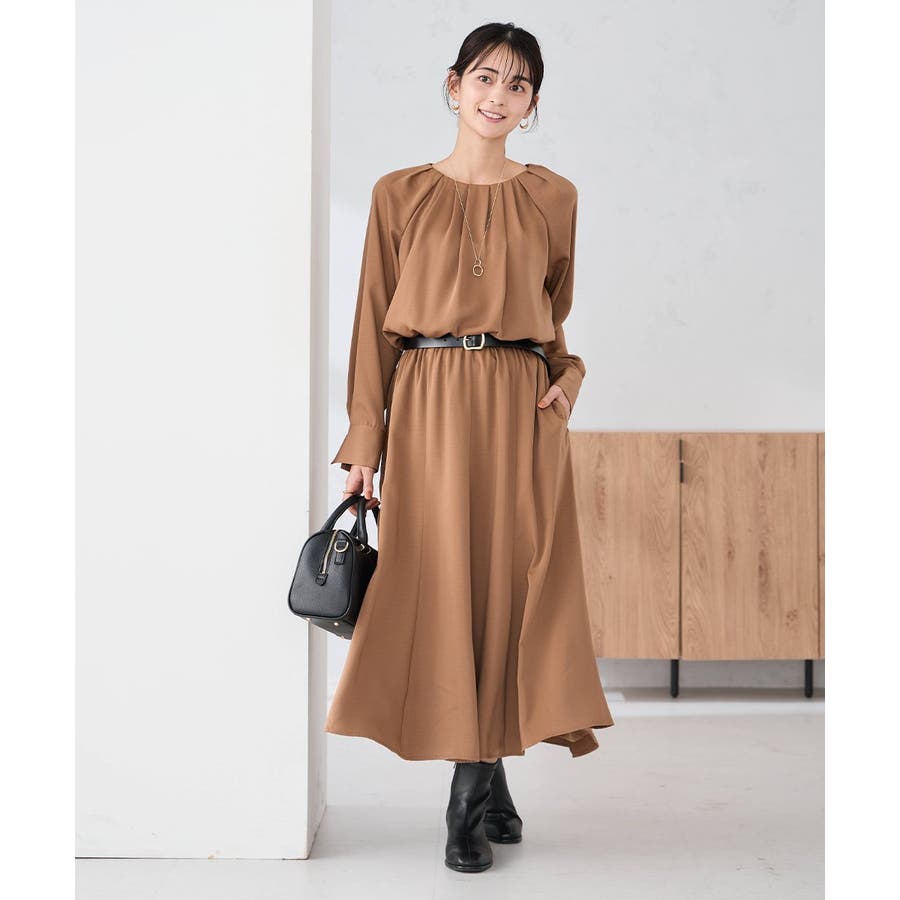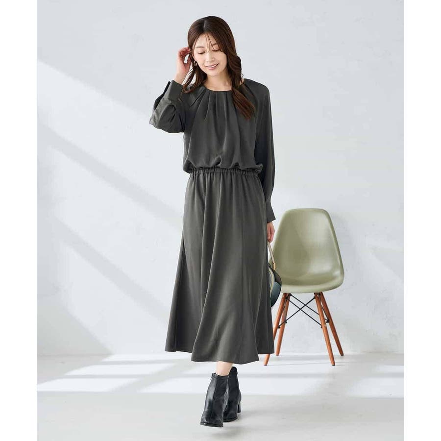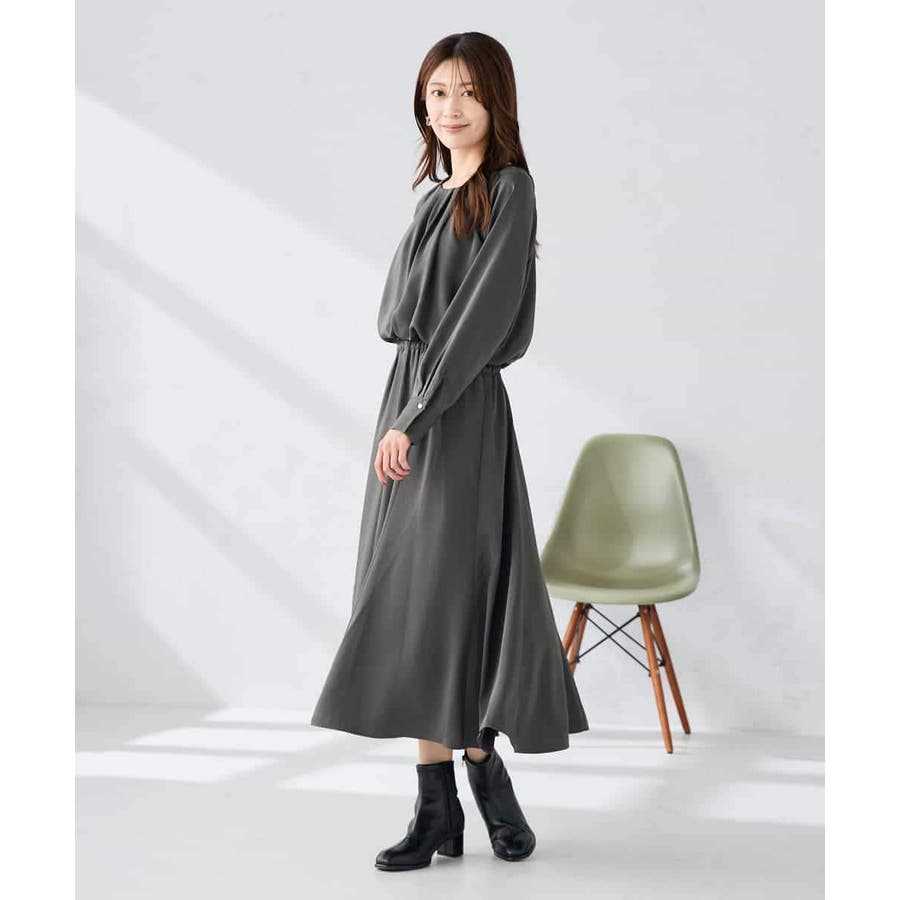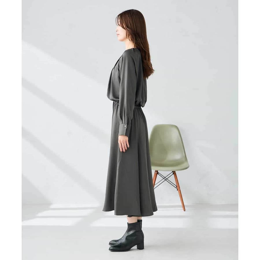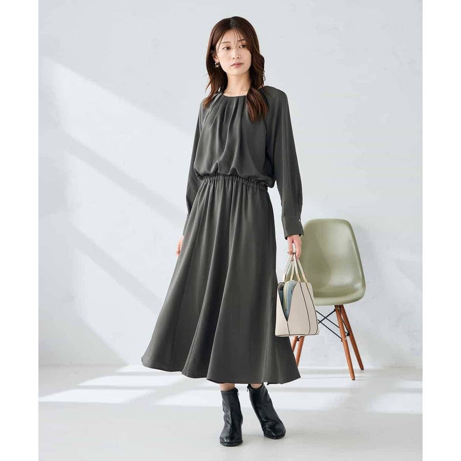 セットアップ見えするので、簡単に上品なスタイリングが決まるワンピースです。