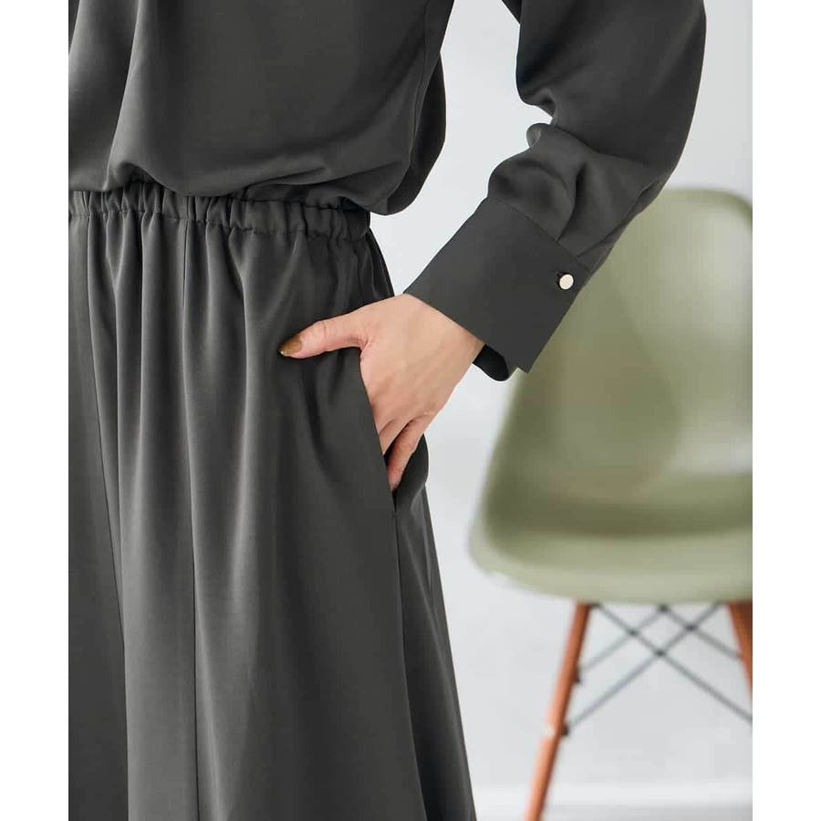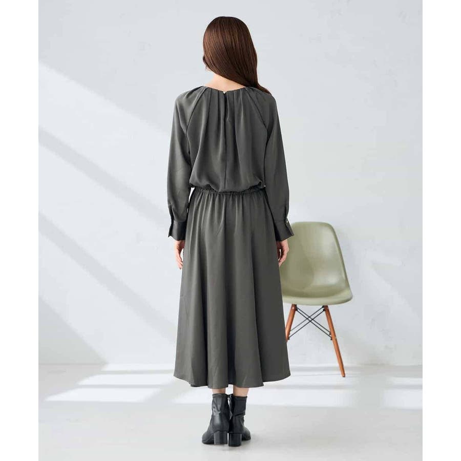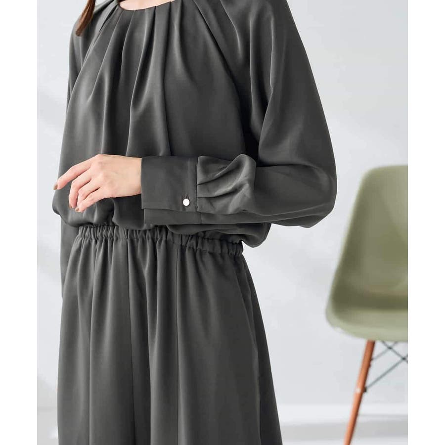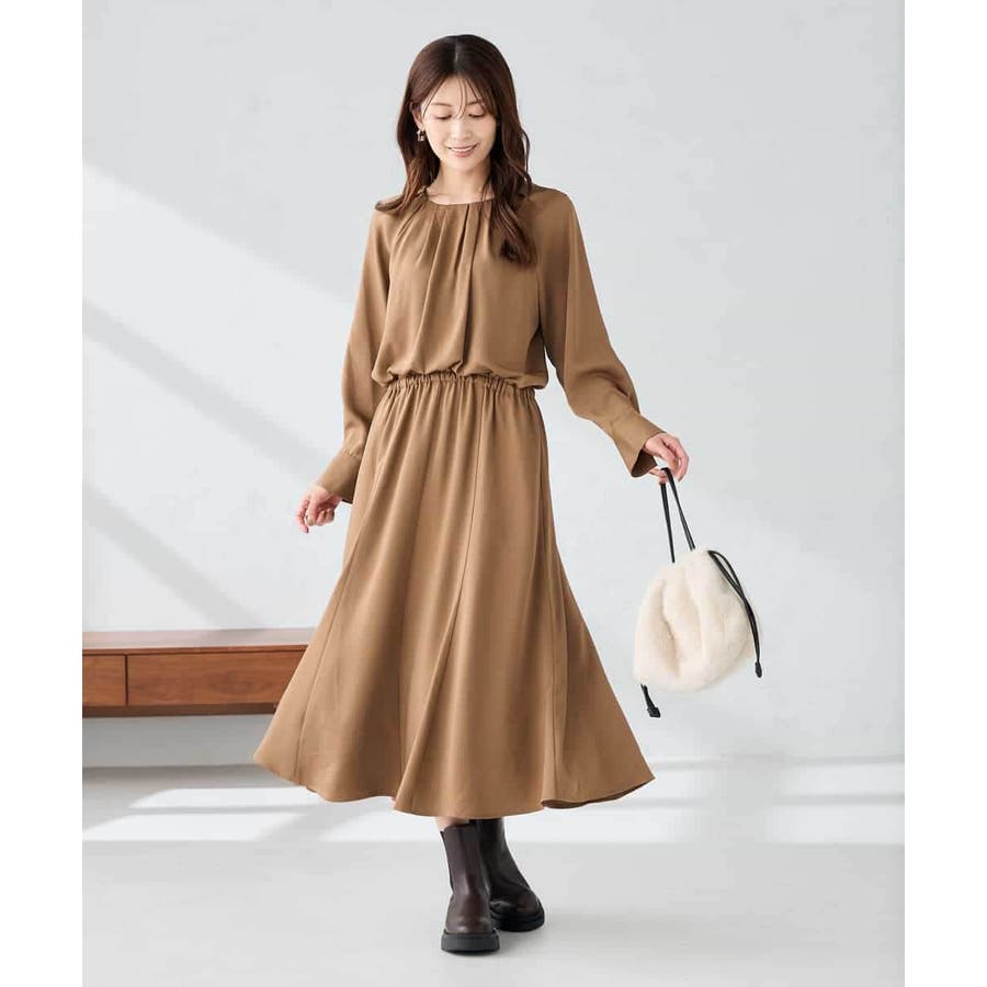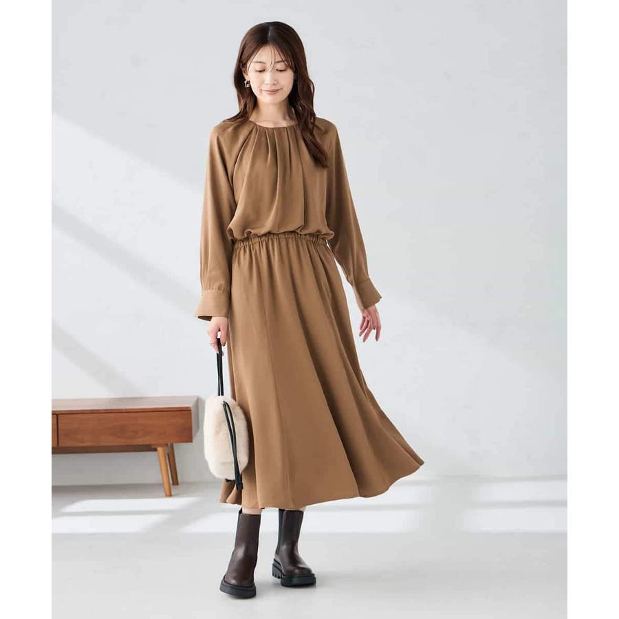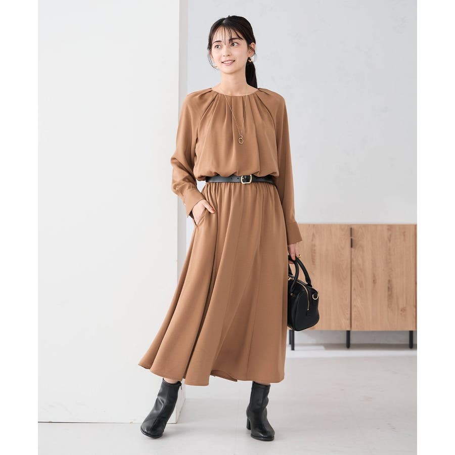 セットアップ見えするので、簡単に上品なスタイリングが決まるワンピースです。