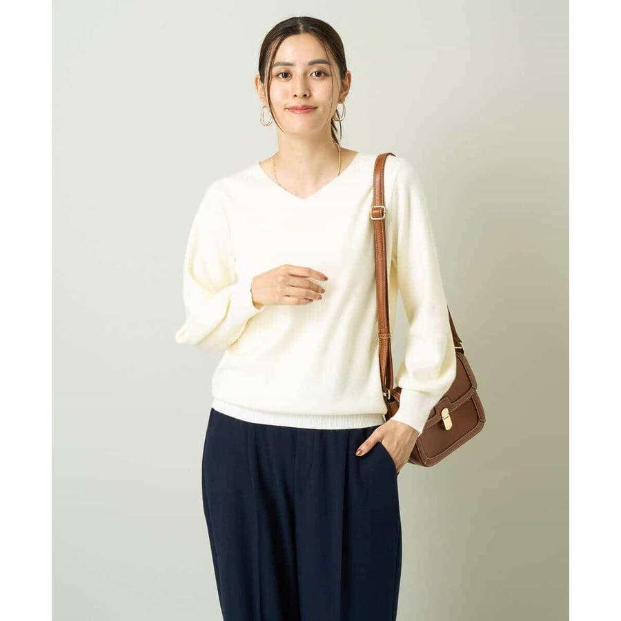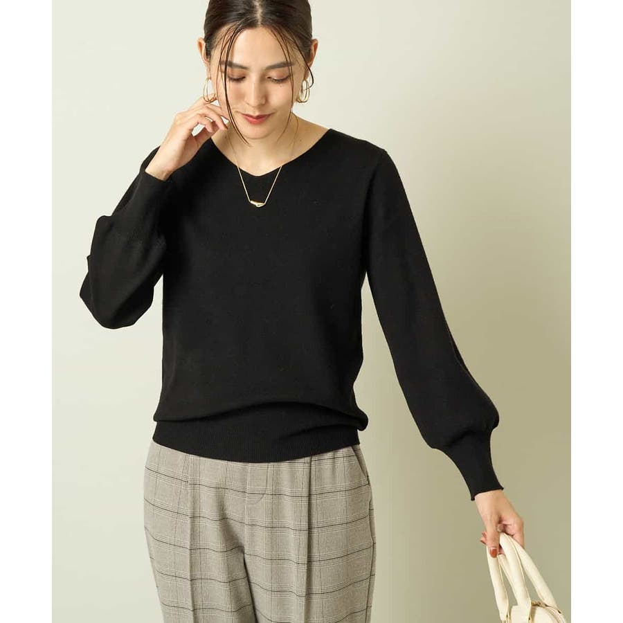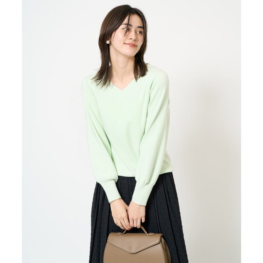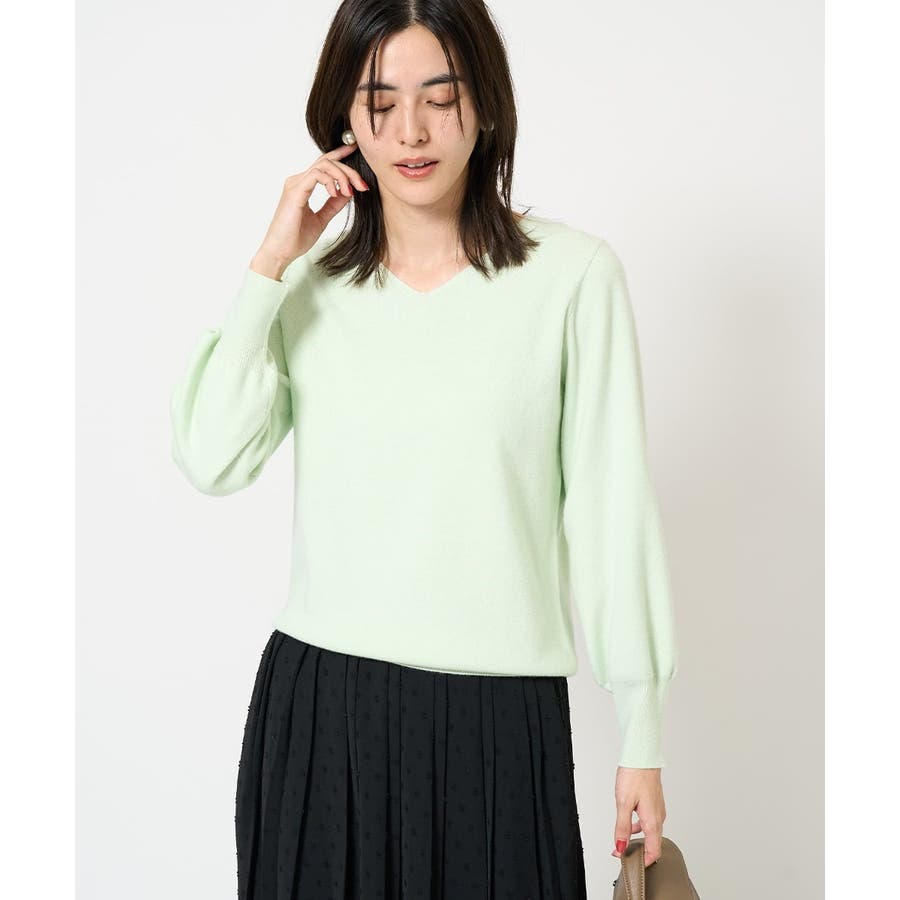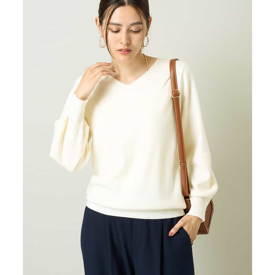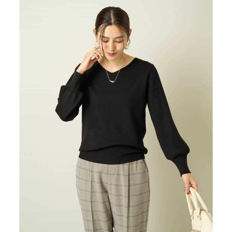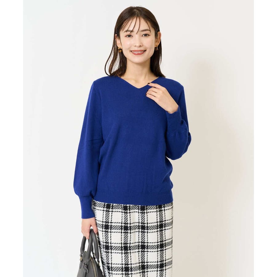 【洗える】Vネックパフスリーブニット/アンサンブル対応
