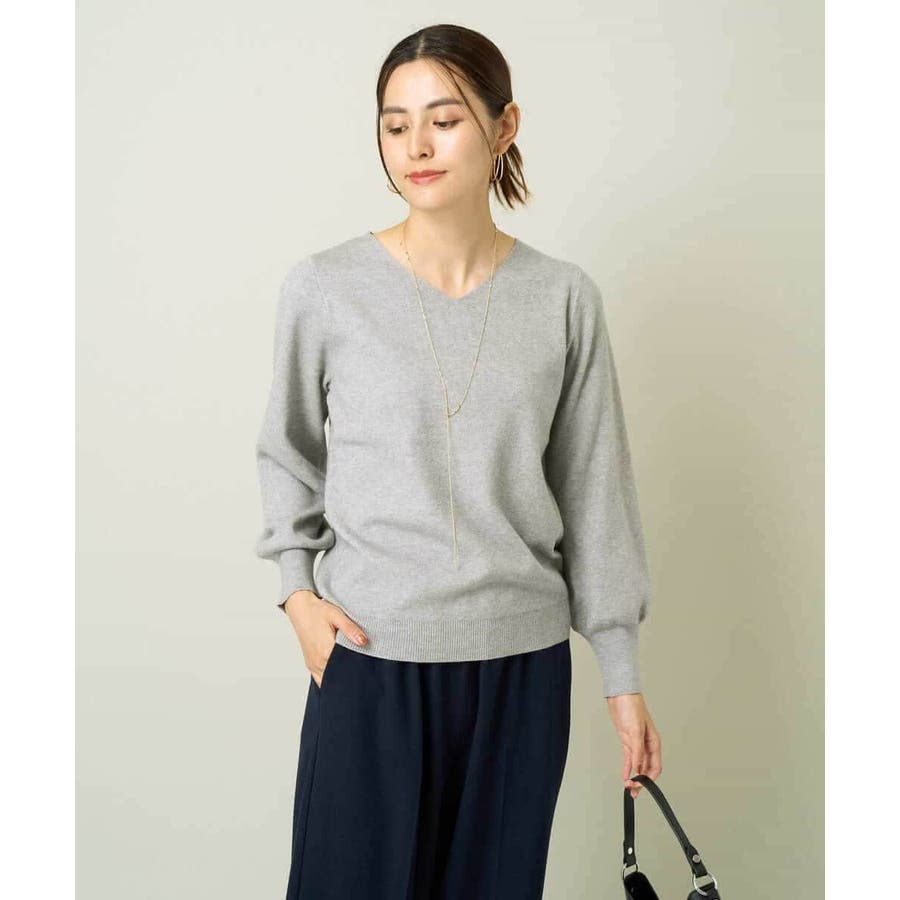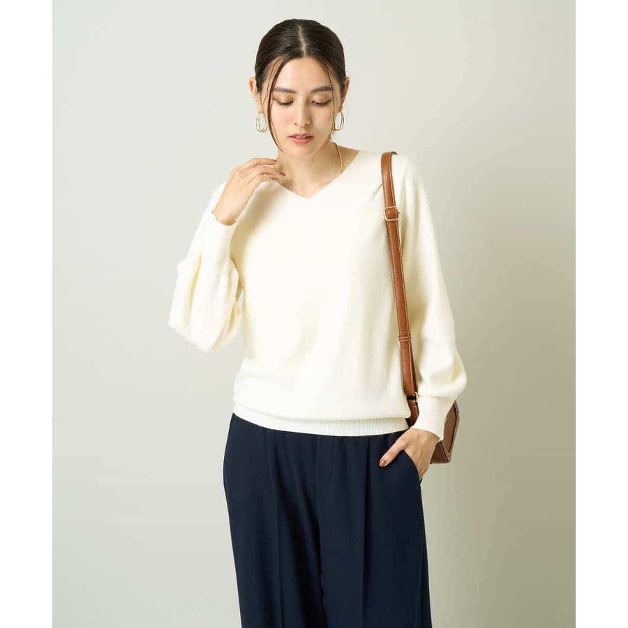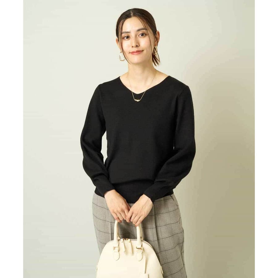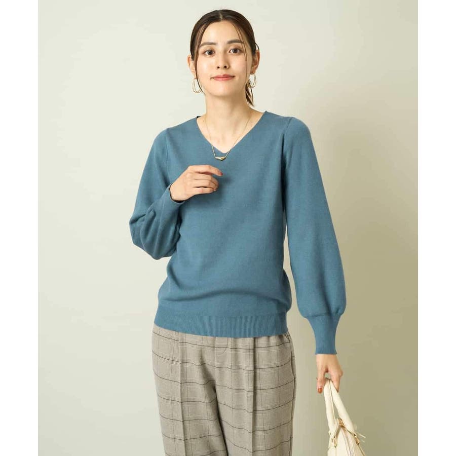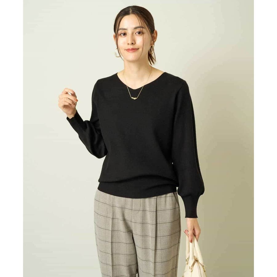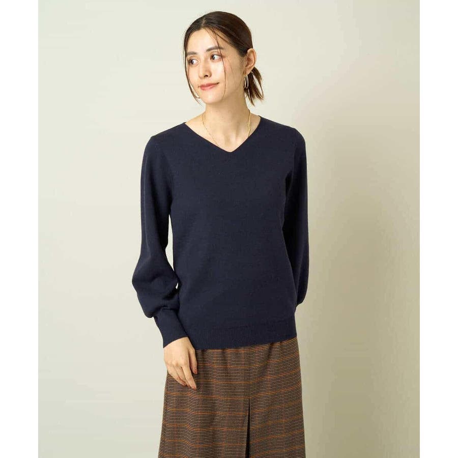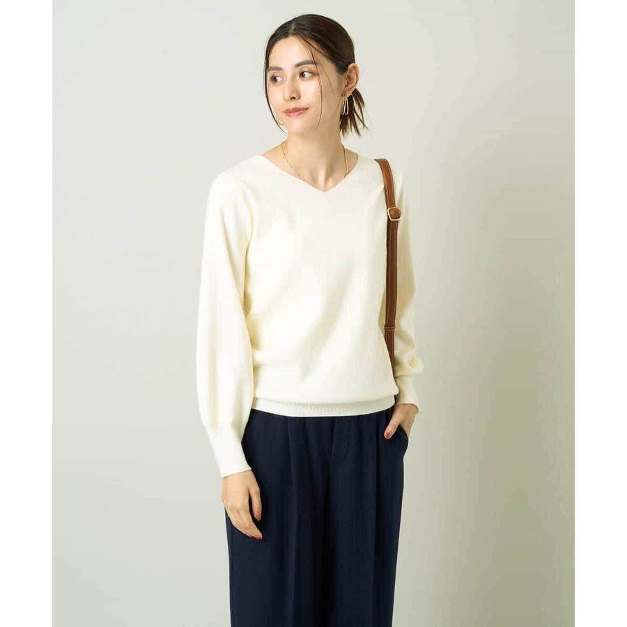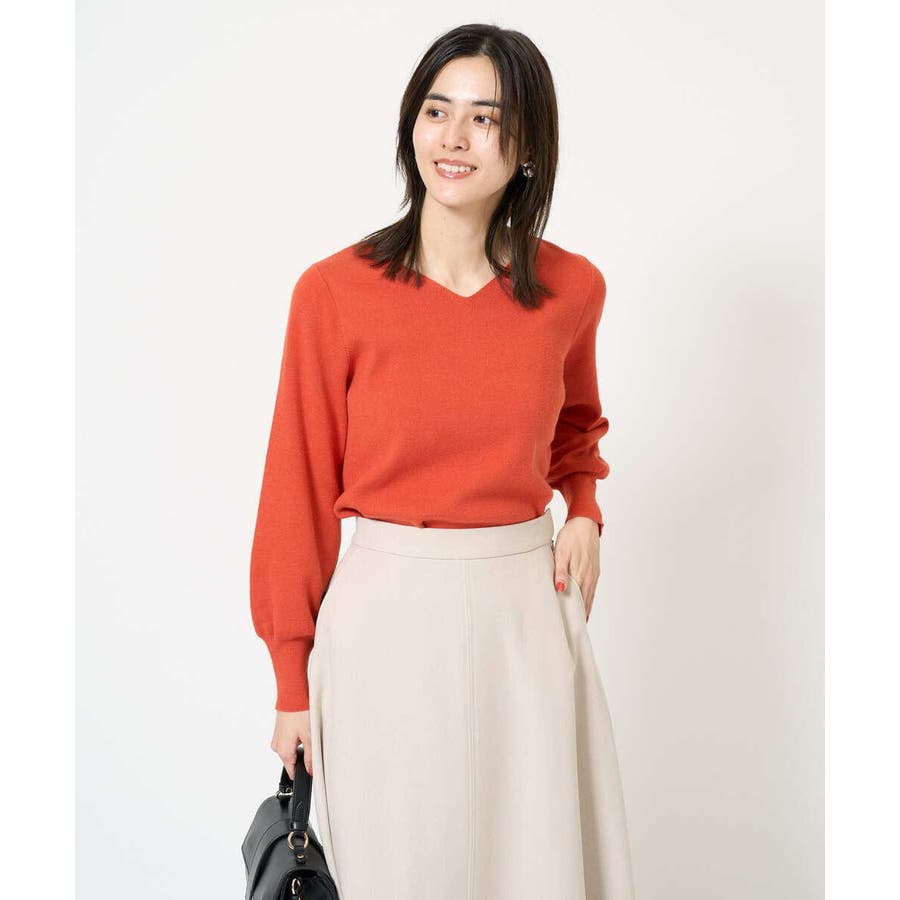 【洗える】Vネックパフスリーブニット/アンサンブル対応
