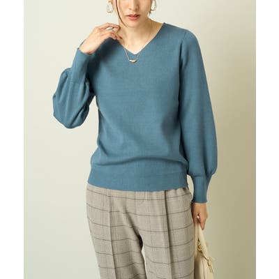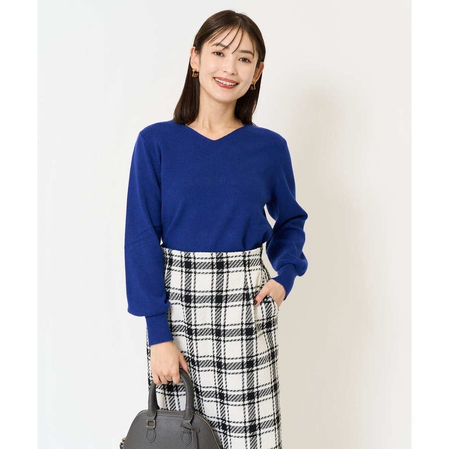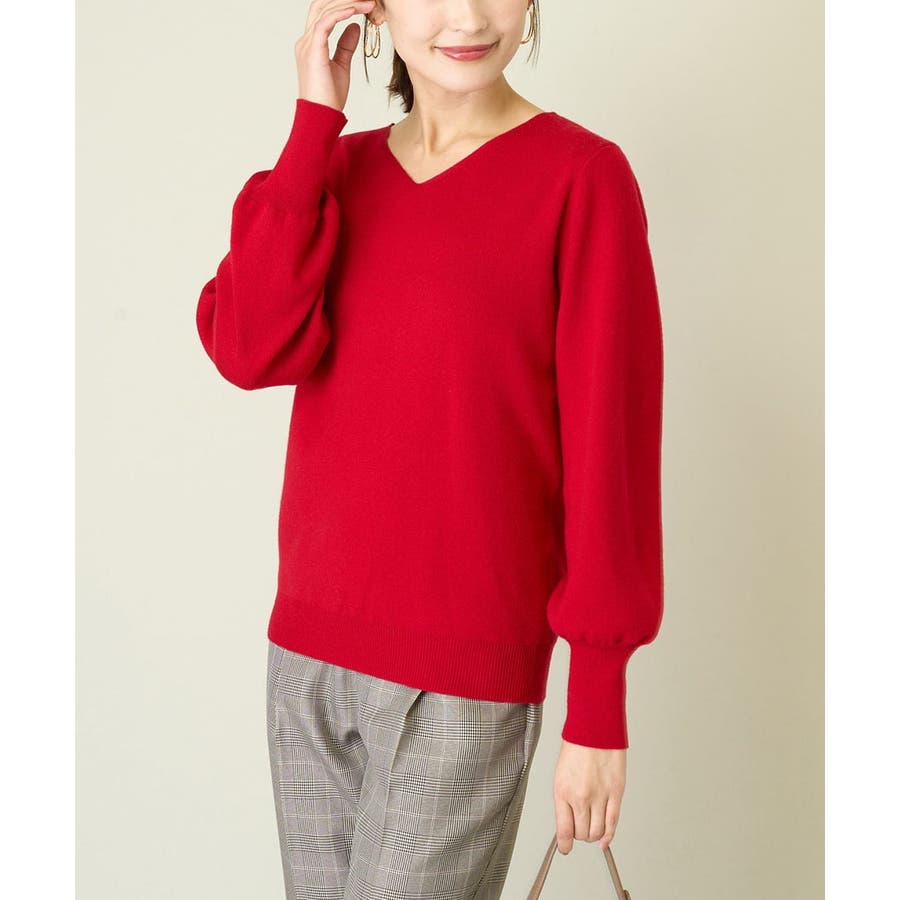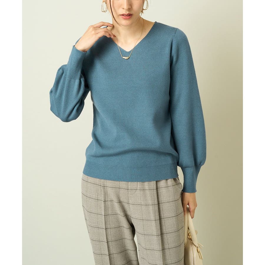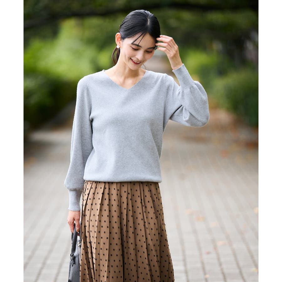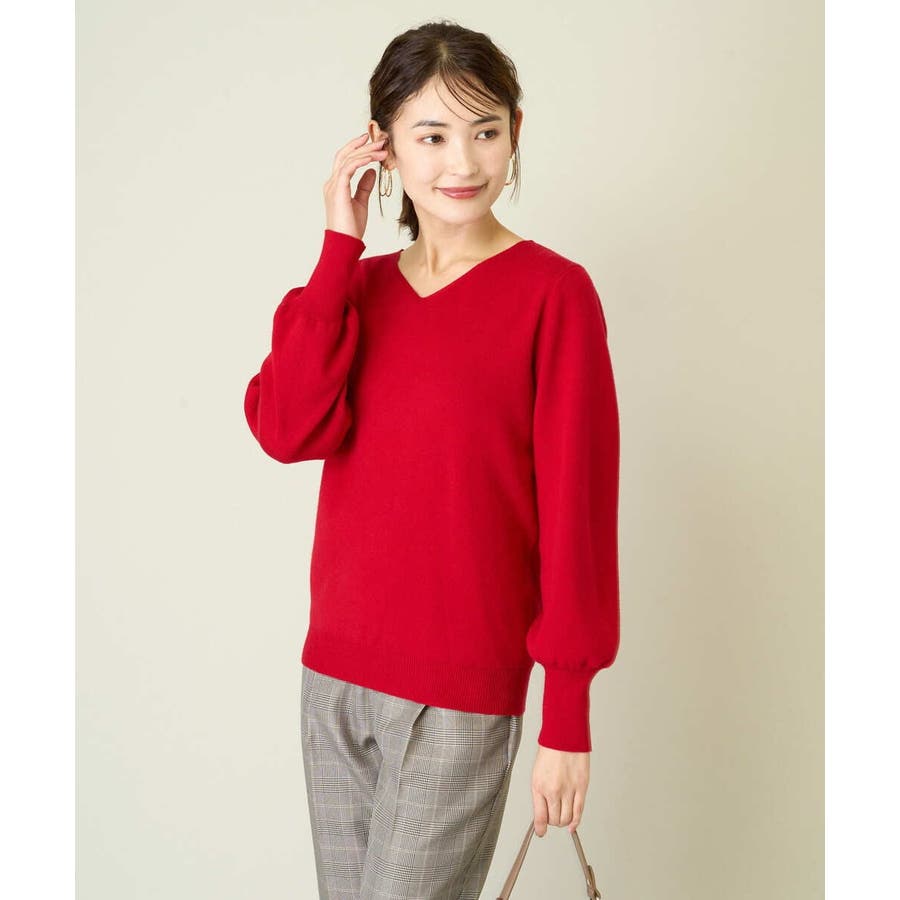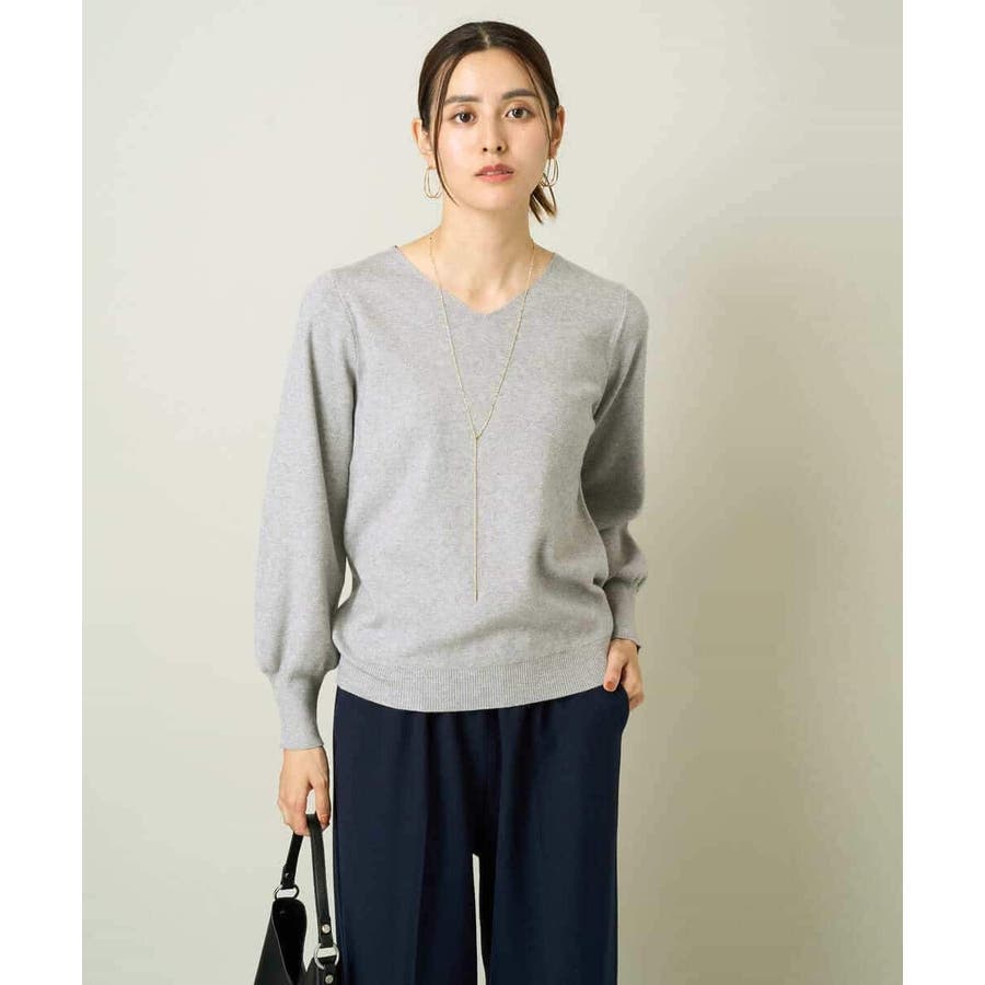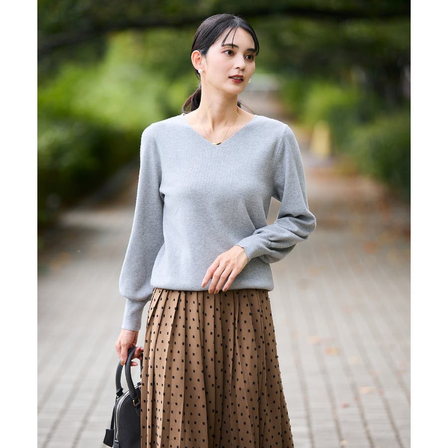 【洗える】Vネックパフスリーブニット/アンサンブル対応