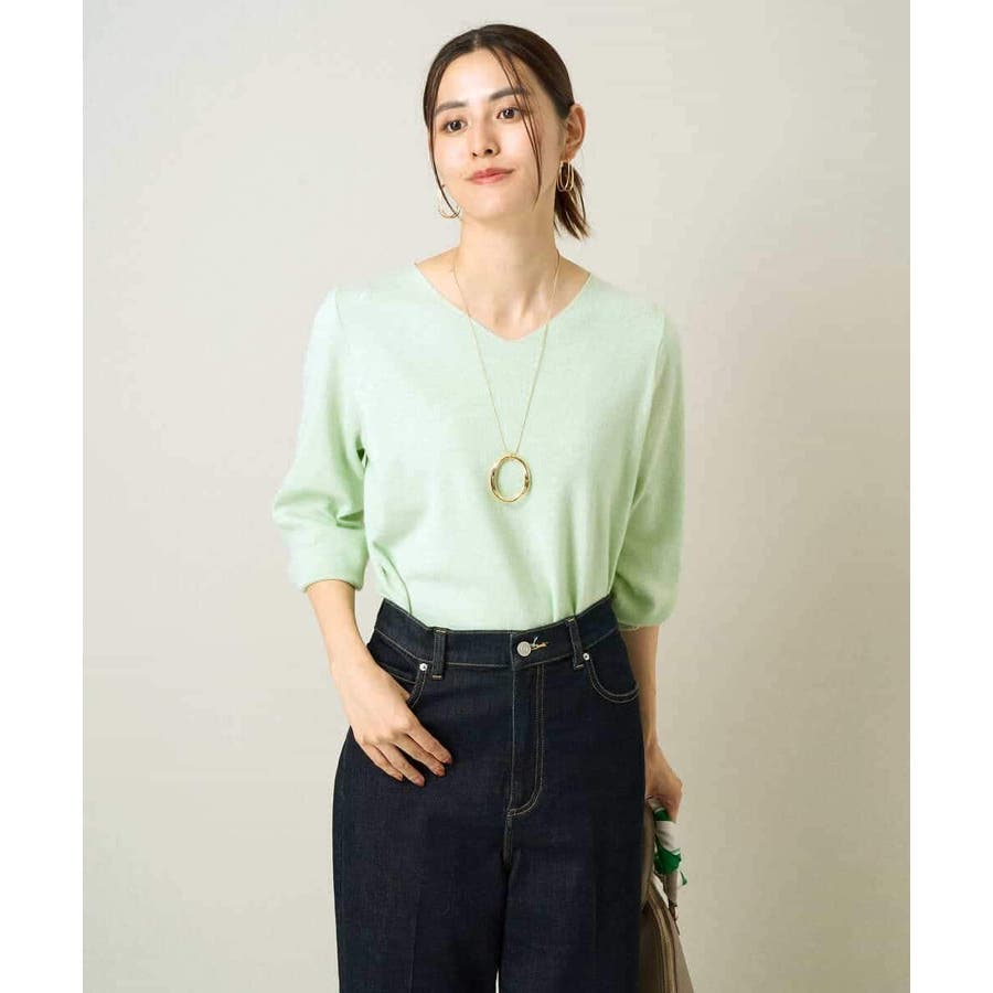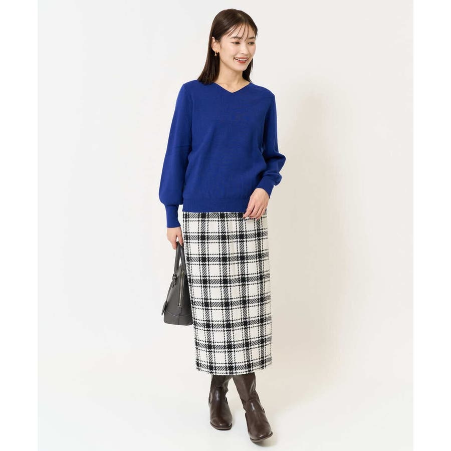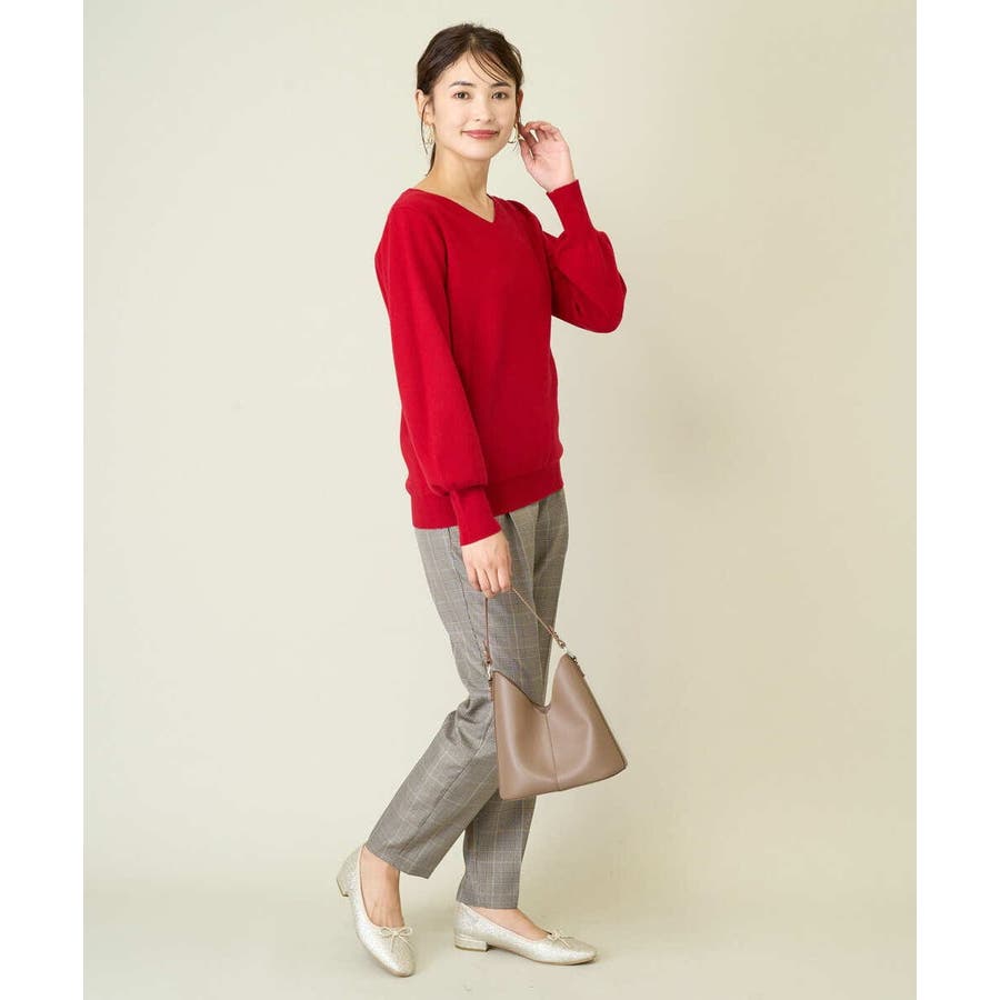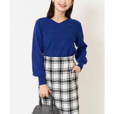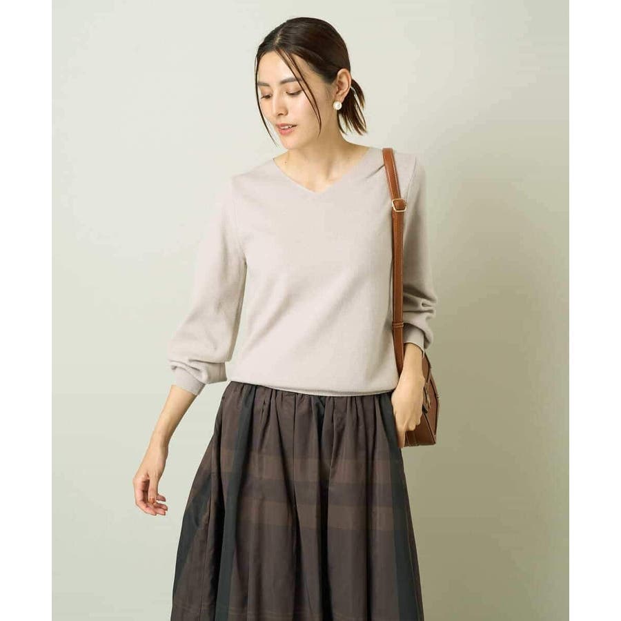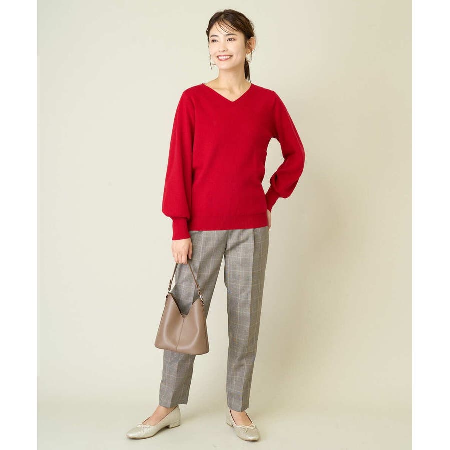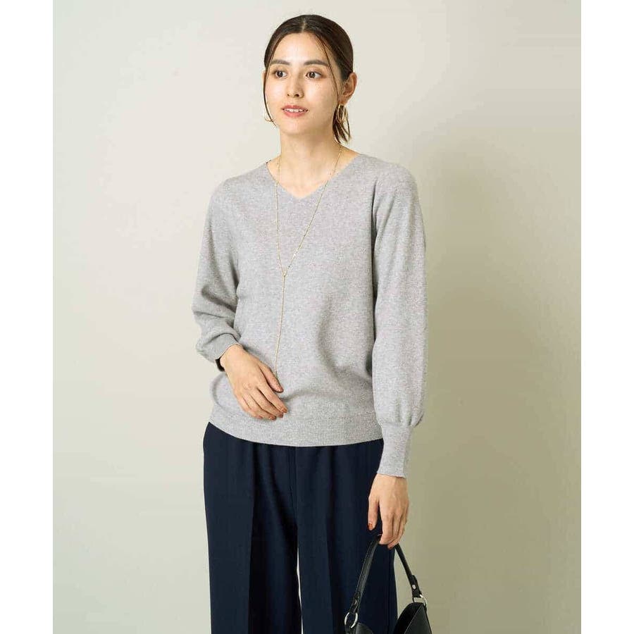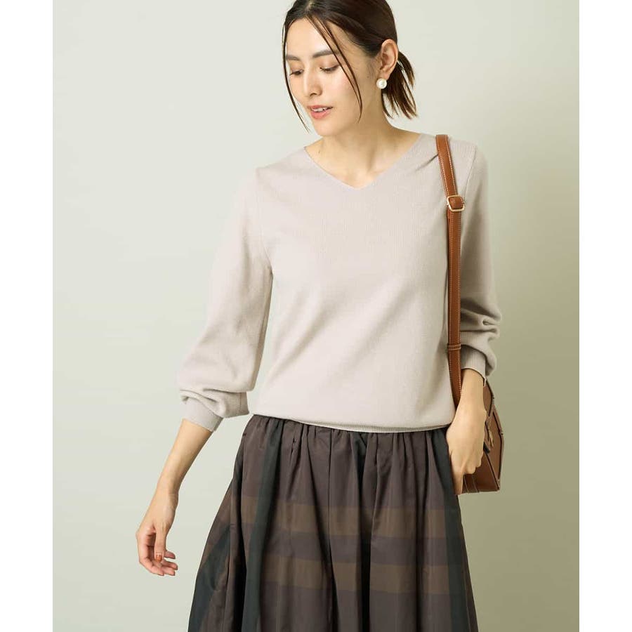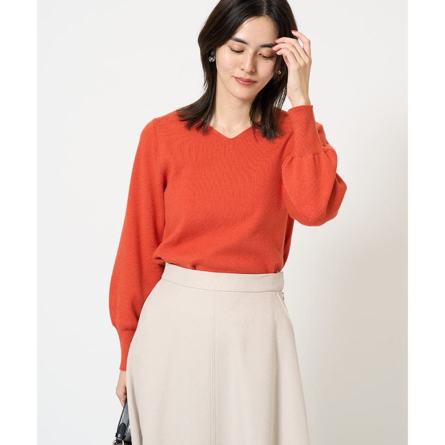 【洗える】Vネックパフスリーブニット/アンサンブル対応