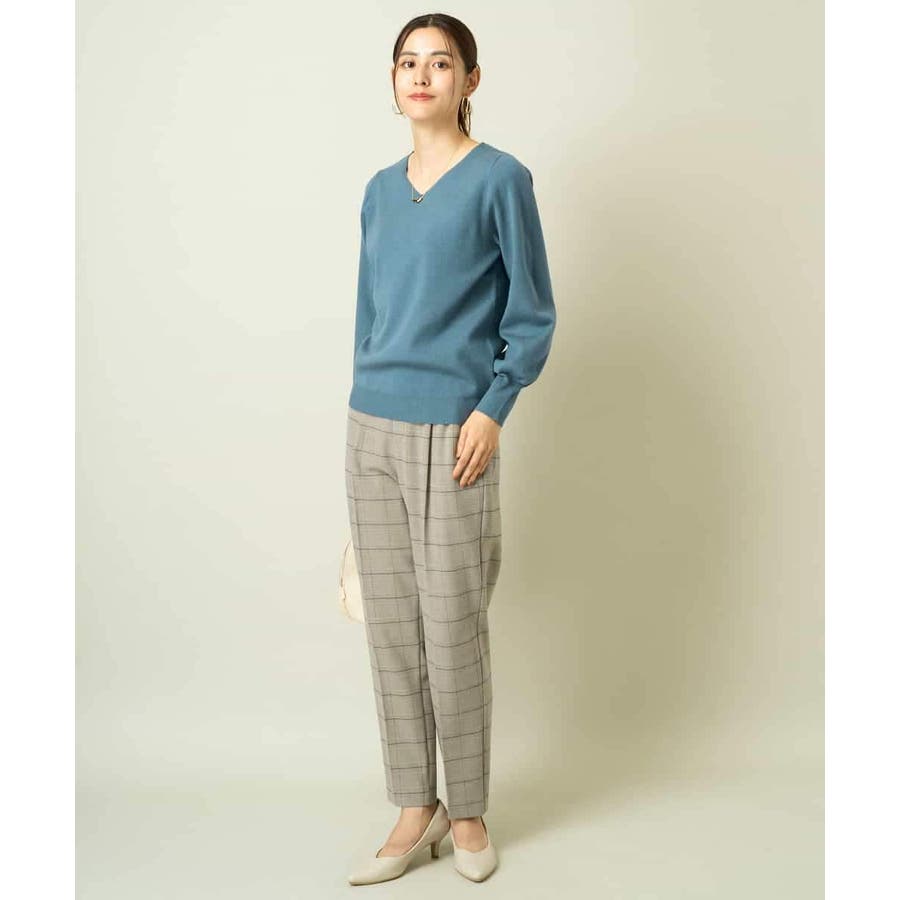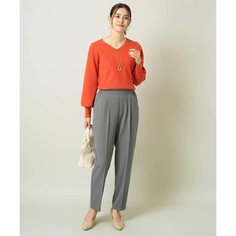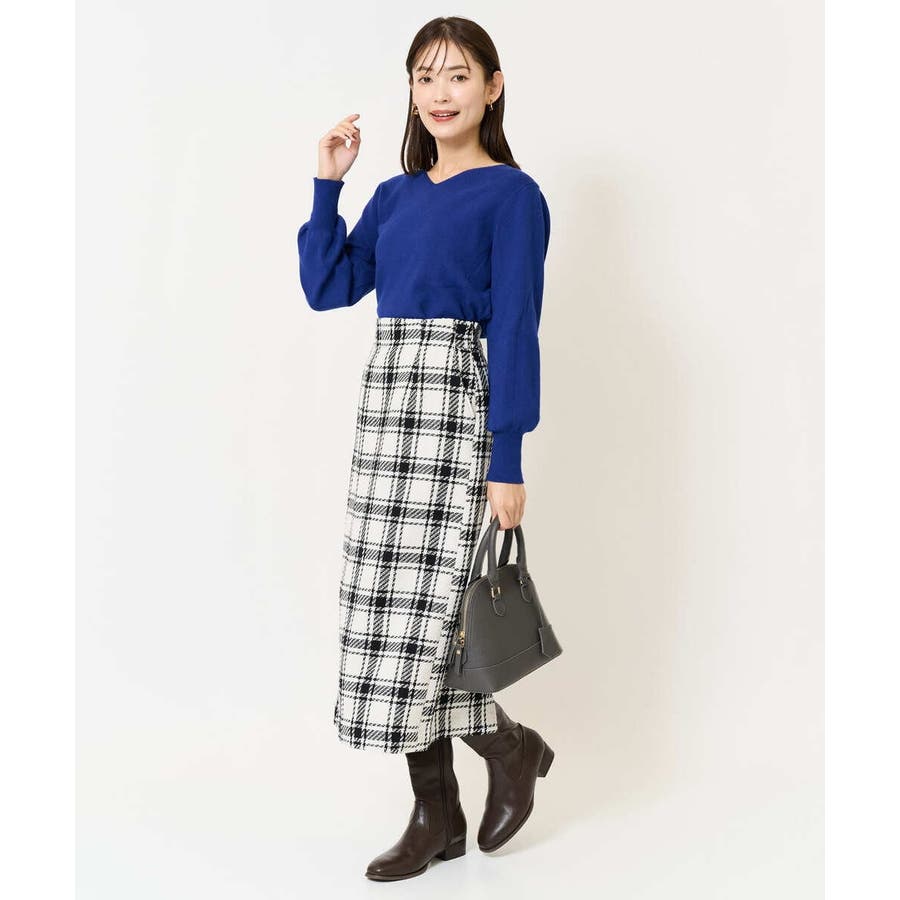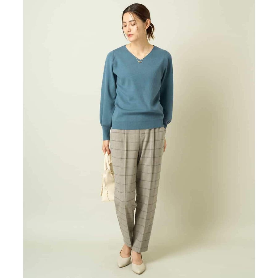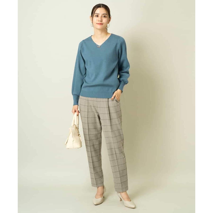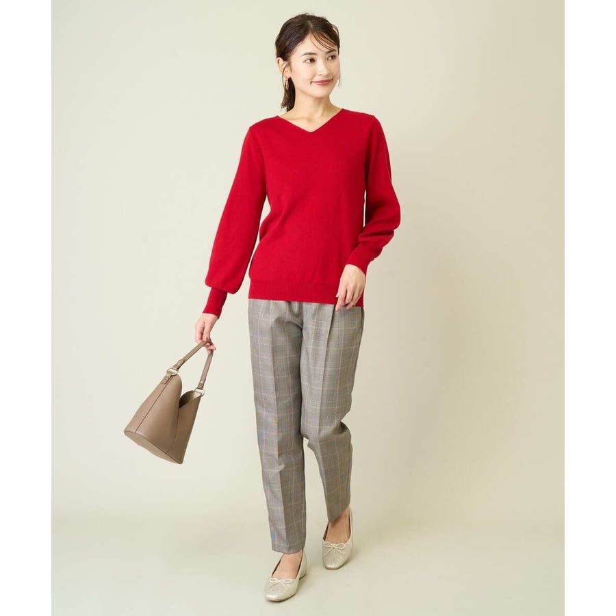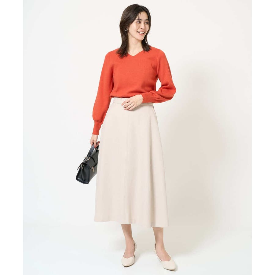 【洗える】Vネックパフスリーブニット/アンサンブル対応
