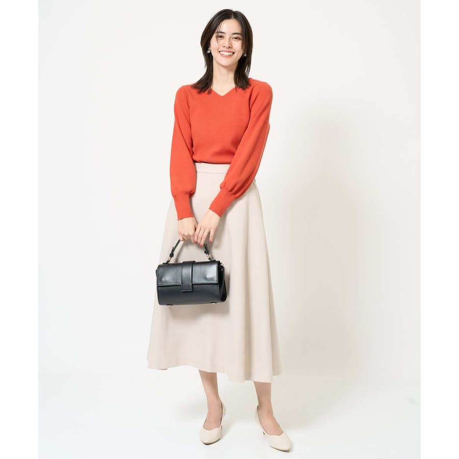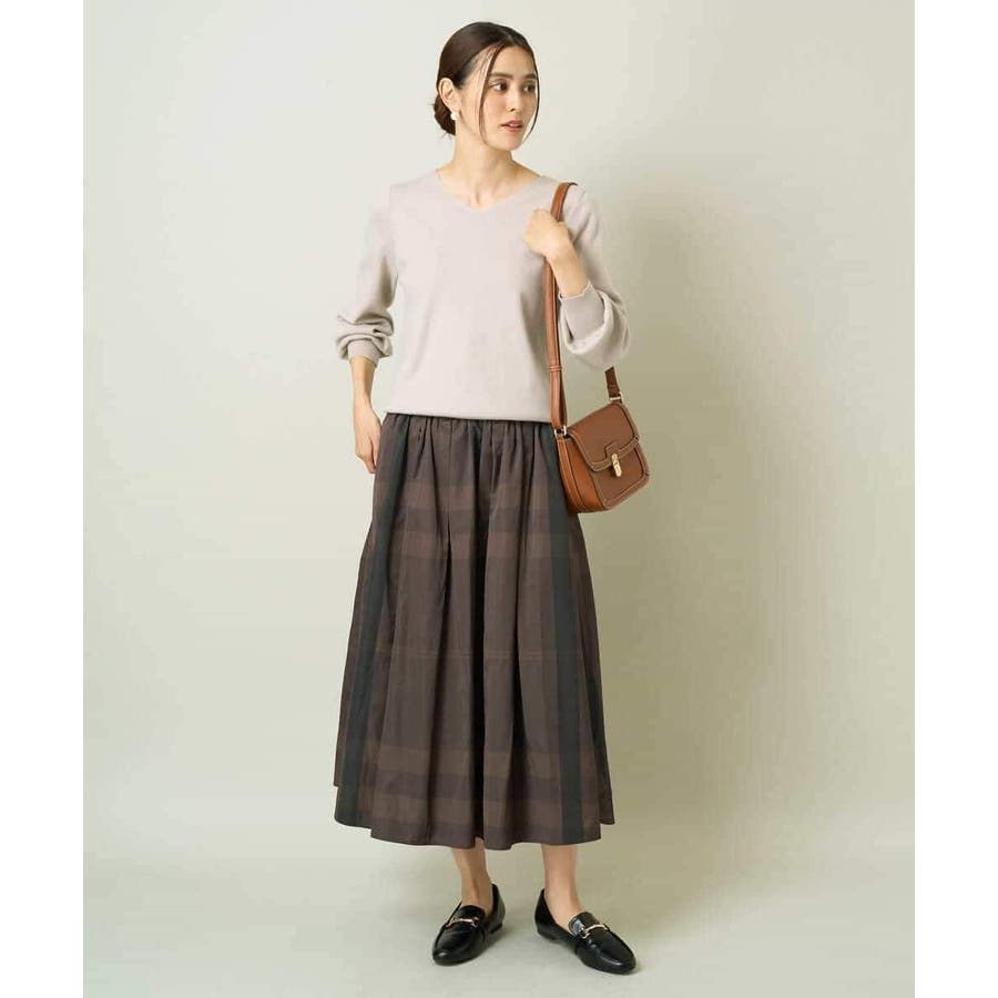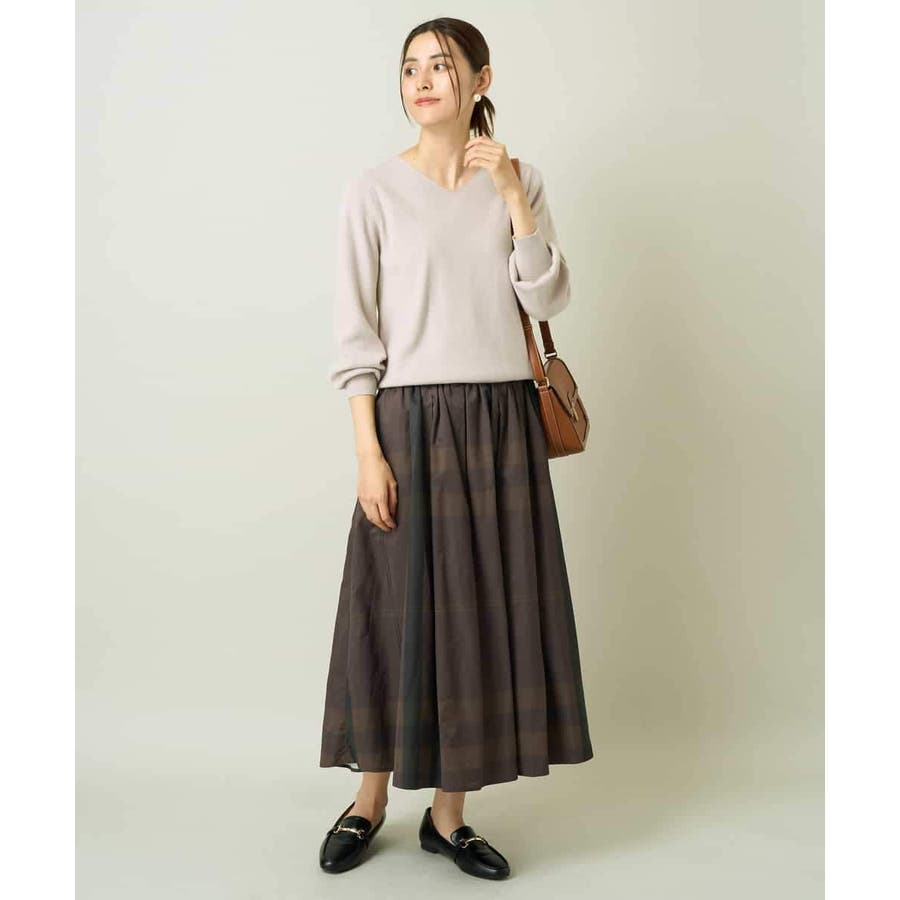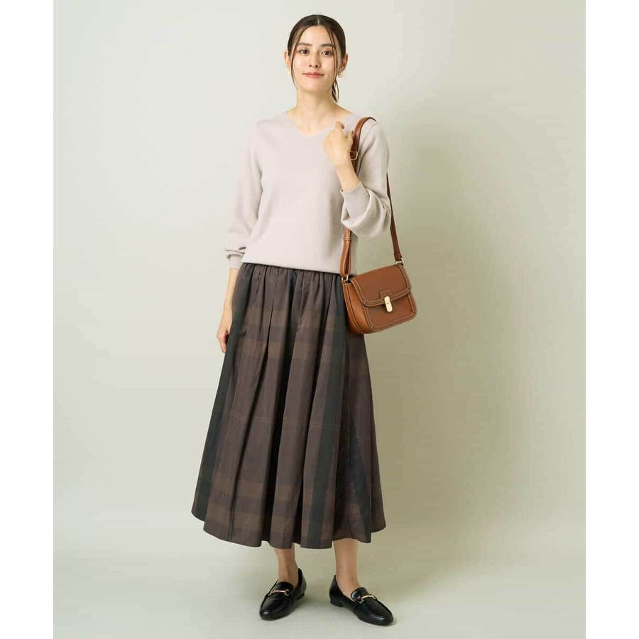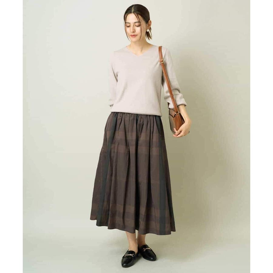 同素材カーディガンやスカートとのアンサンブルスタイルは